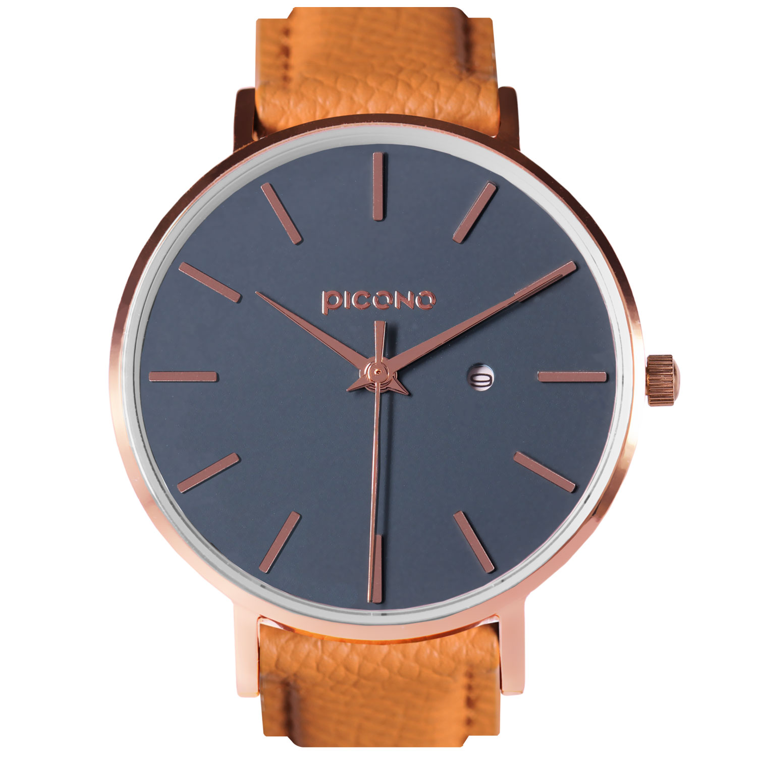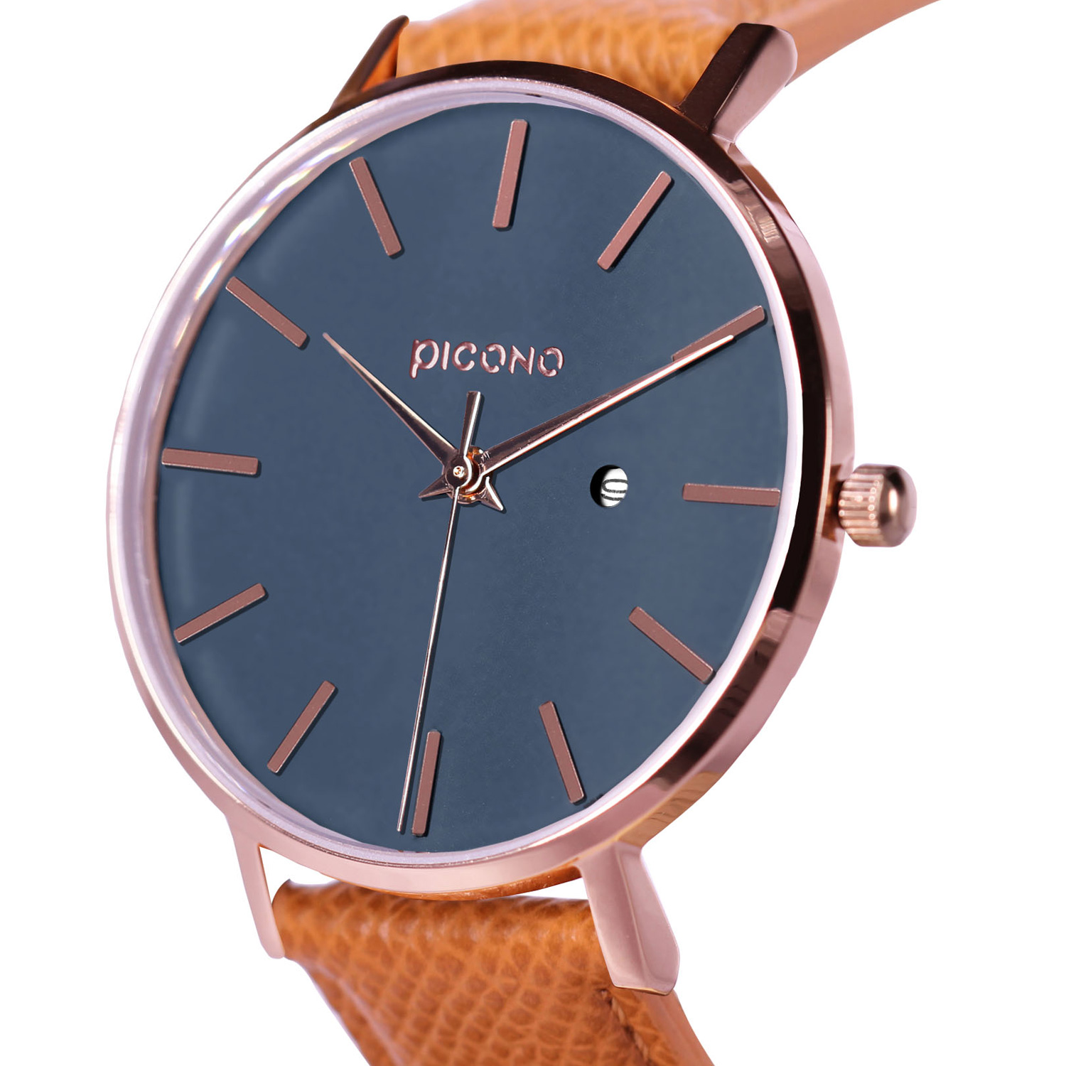 Siempre 簡約玫瑰金法國真皮錶帶對錶手錶 / SI-11001 藍色 女款