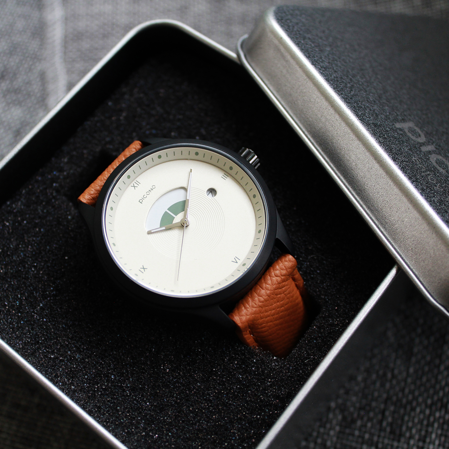 SPIRAL系列簡約圈紋法國真皮錶帶手錶/SP-12001 墨綠