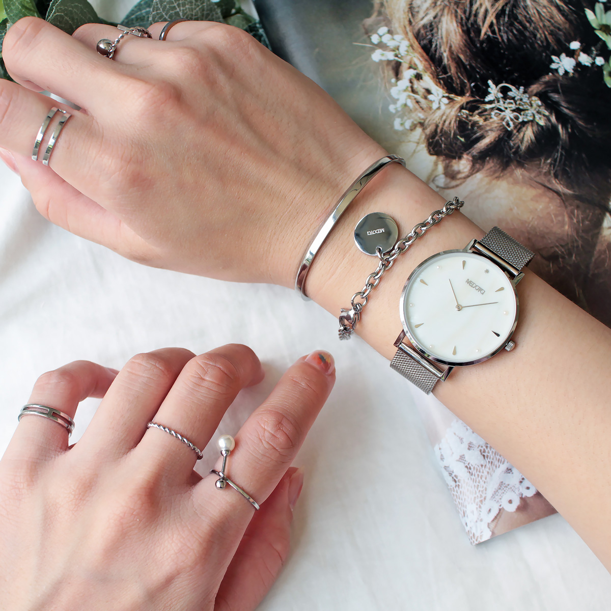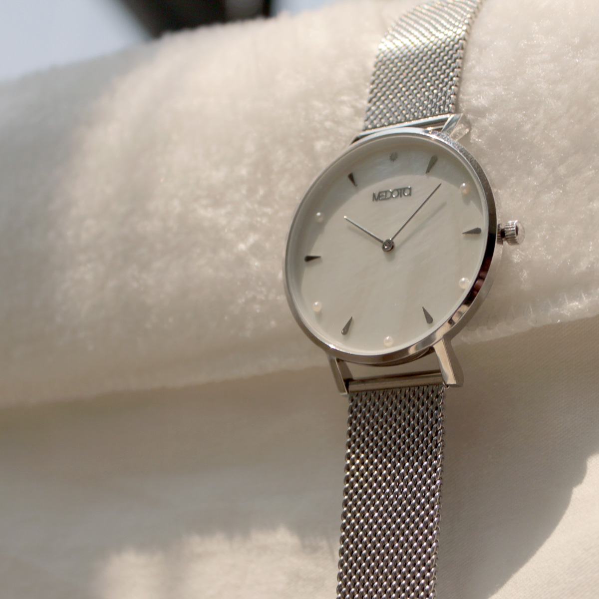 以希臘神話海洋女神名字命名的Thetis,靈感來自於浪漫的大海,將海洋中珍貴的貝殼作為錶款的主要基底,再運用美麗的珍珠點綴手錶的精緻感,錶殼與錶帶的部分則是以不鏽鋼為主。