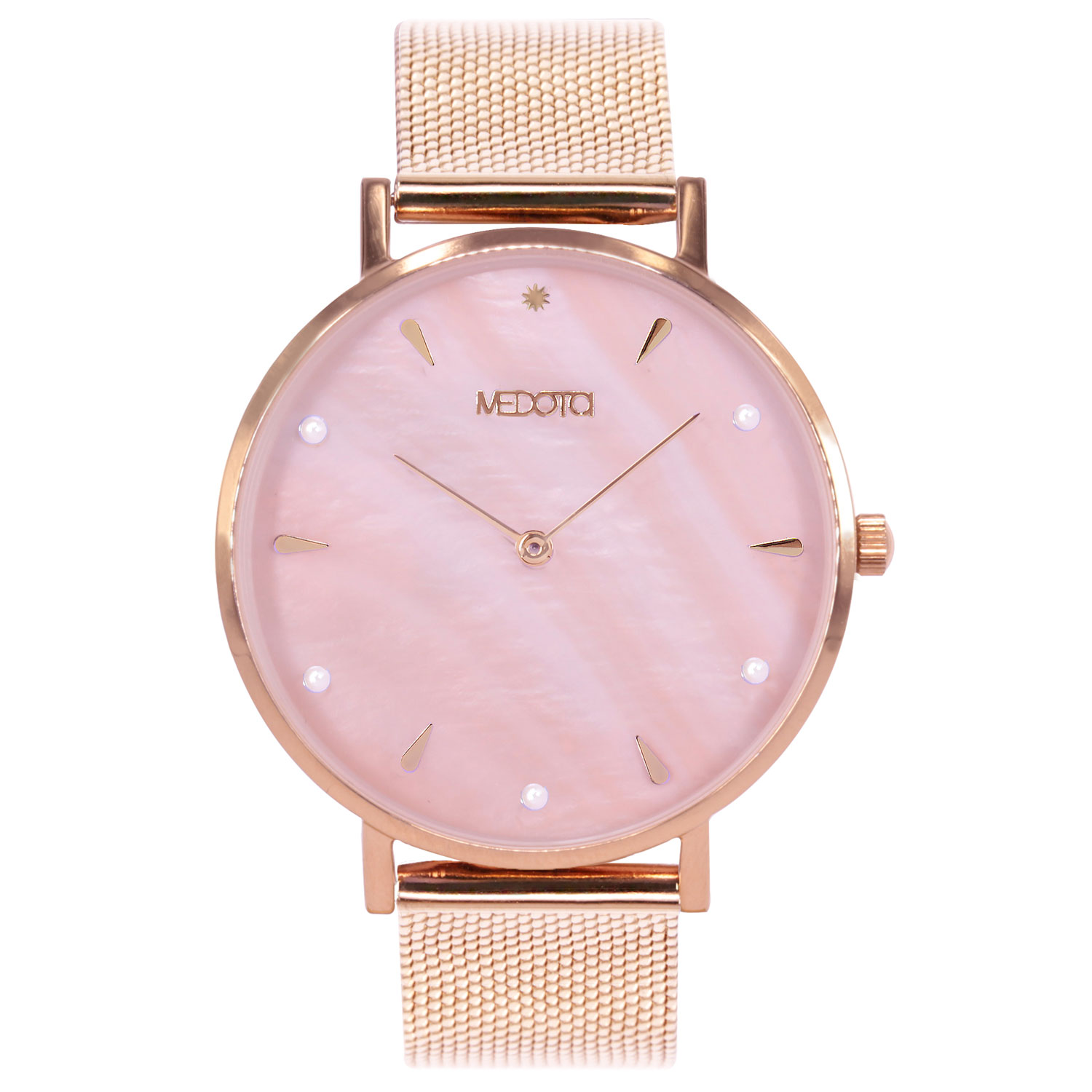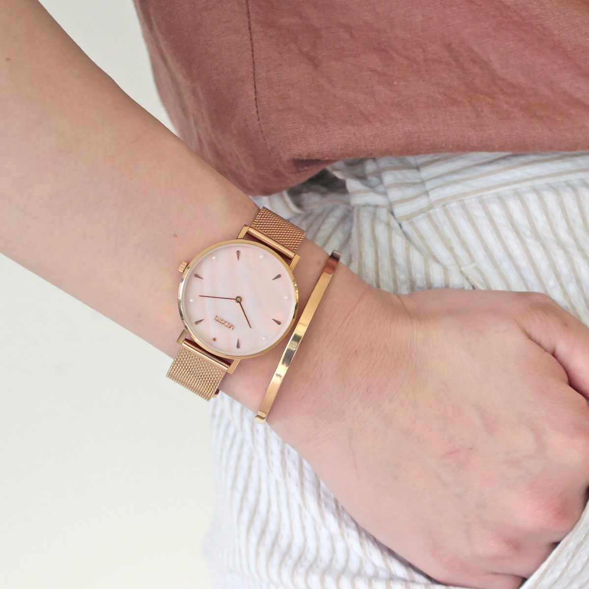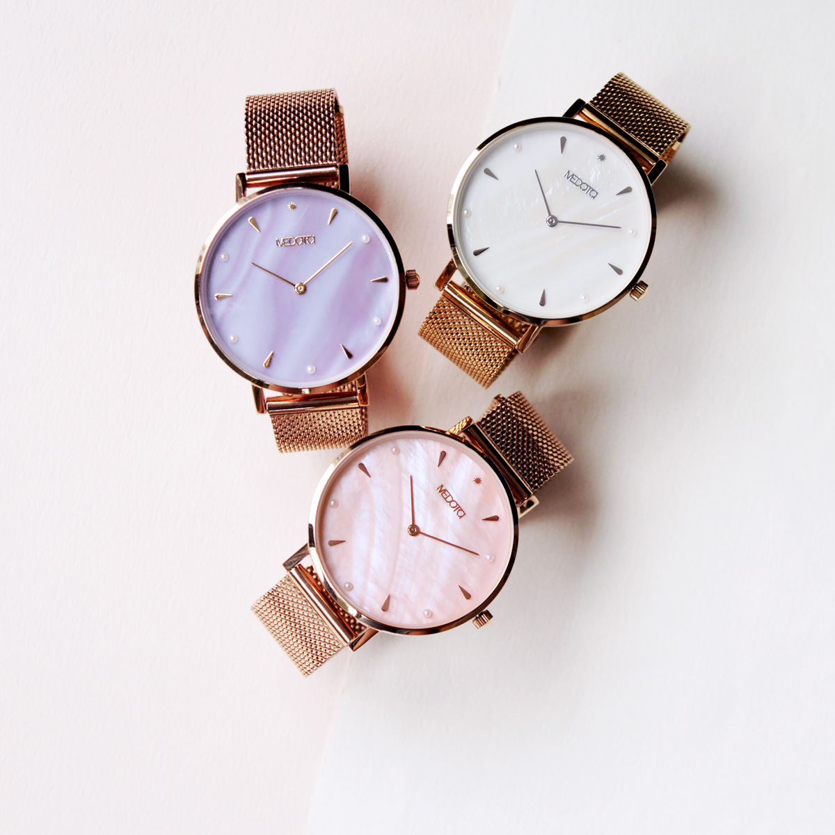 以希臘神話海洋女神名字命名的Thetis,靈感來自於浪漫的大海,將海洋中珍貴的貝殼作為錶款的主要基底,再運用美麗的珍珠點綴手錶的精緻感,錶殼與錶帶的部分則是以不鏽鋼為主。