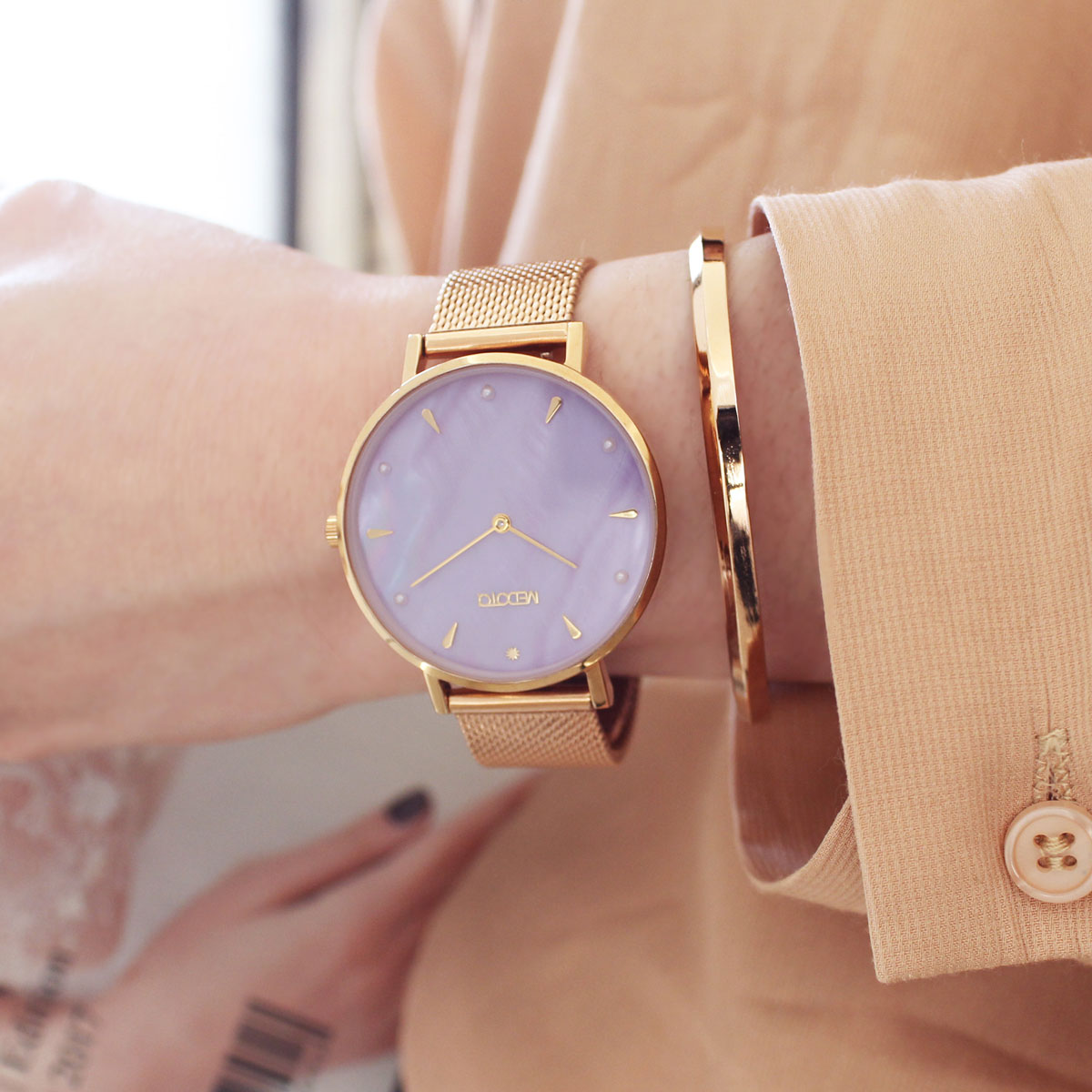 以希臘神話海洋女神名字命名的Thetis,靈感來自於浪漫的大海,將海洋中珍貴的貝殼作為錶款的主要基底,再運用美麗的珍珠點綴手錶的精緻感,錶殼與錶帶的部分則是以不鏽鋼為主。