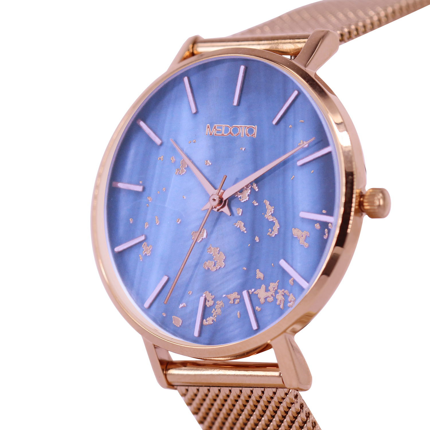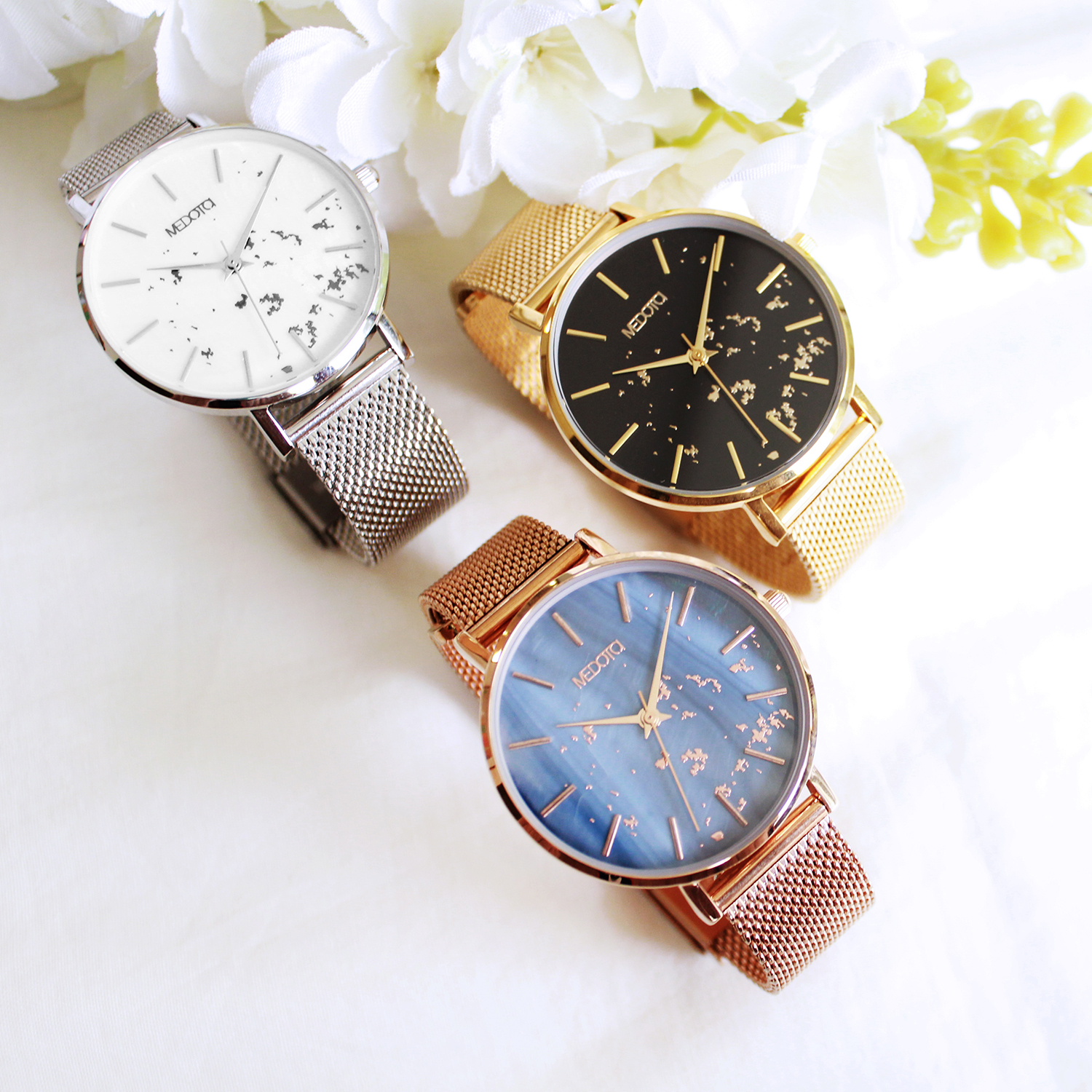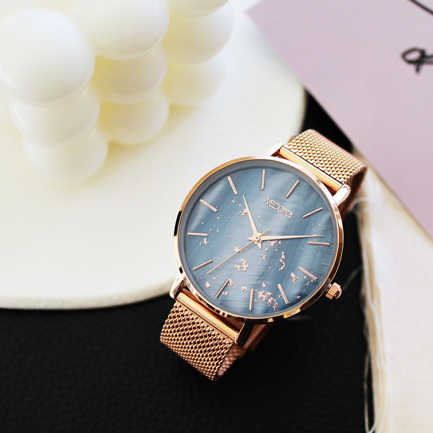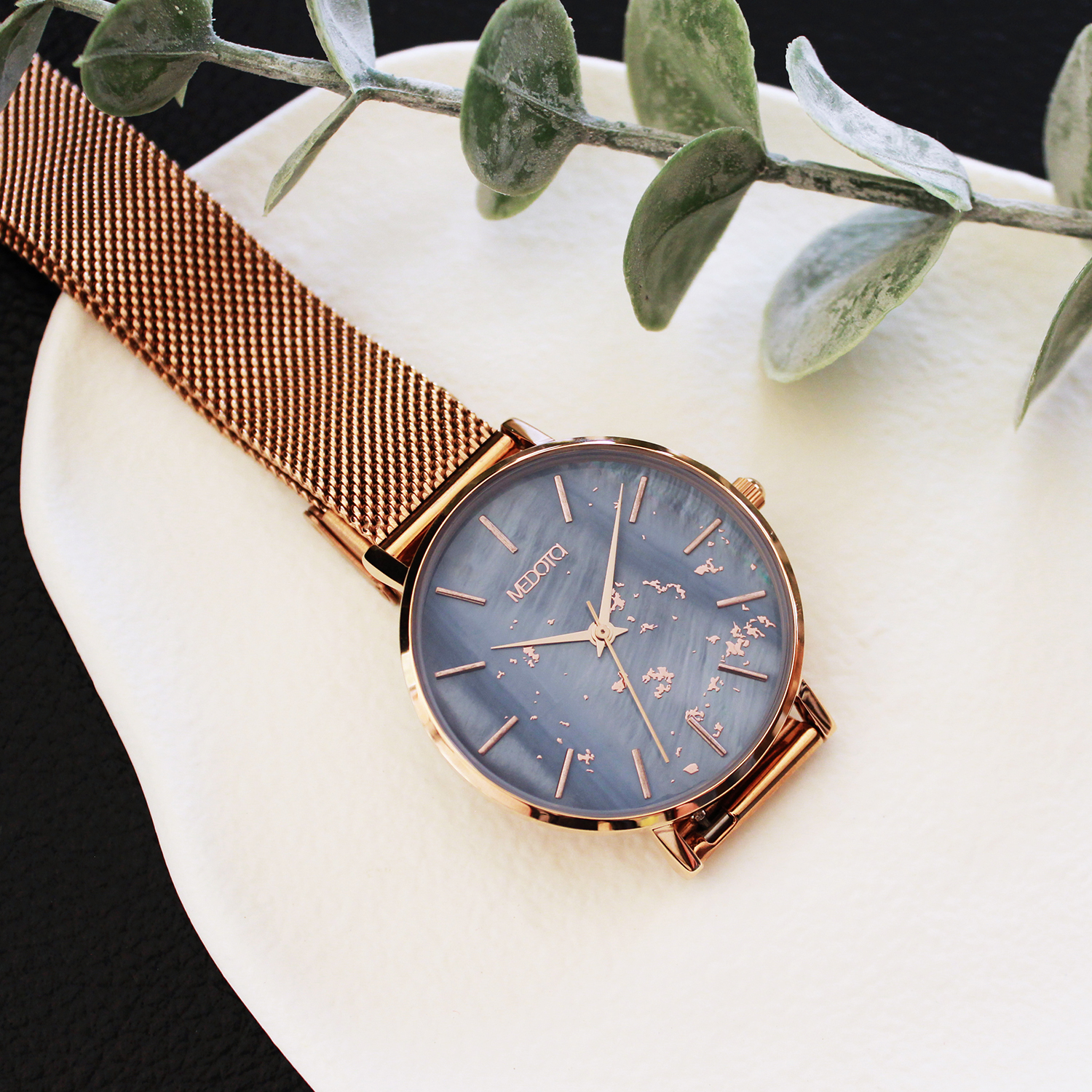 TWINKIE 星點貝殼面簡約米蘭錶帶手錶 / TE-12502 玫瑰金色