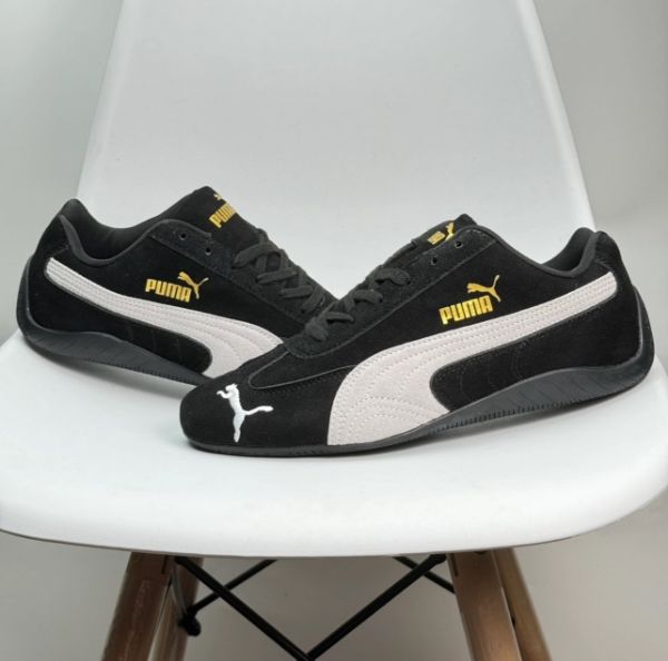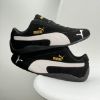 鞋子整體以黑色為主色調,側面白色經典PUMA標誌搭配,金色logo點綴,顏值在線 鞋身是絨面革材質,摸起來很有質感,看起來高級感滿滿