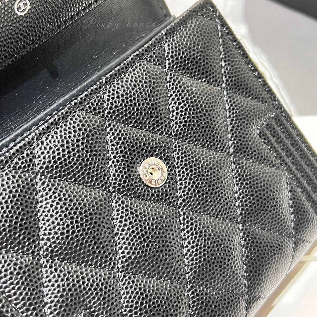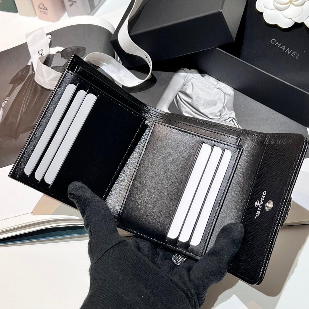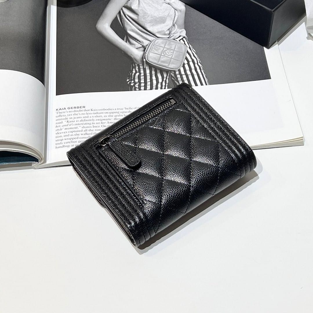 Chanel boy 荔枝牛皮黑復古銀扣3折短夾