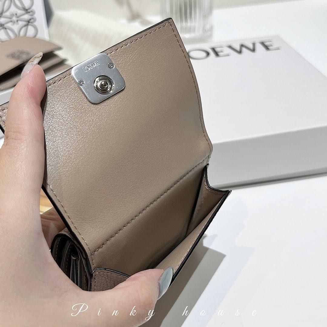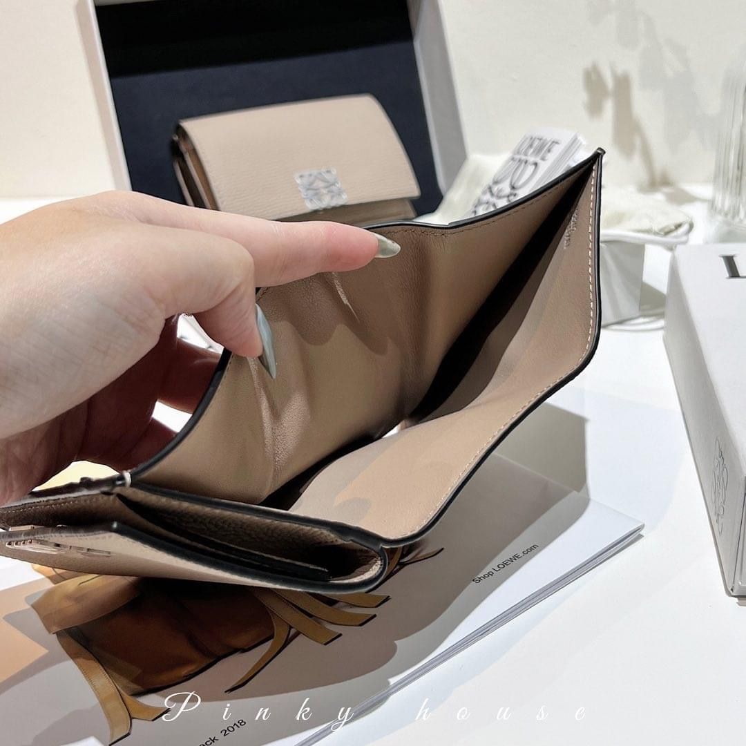 Loewe 牛皮沙色3折短夾