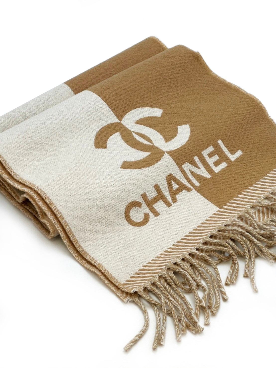 CHANEL 24A半色羊毛圍巾 - 奶茶象牙白
