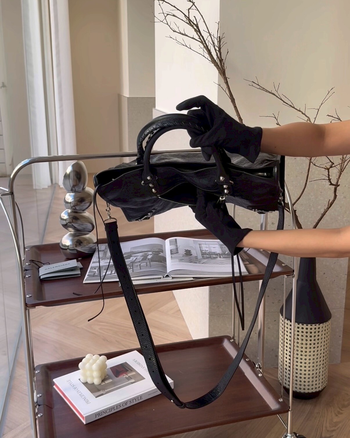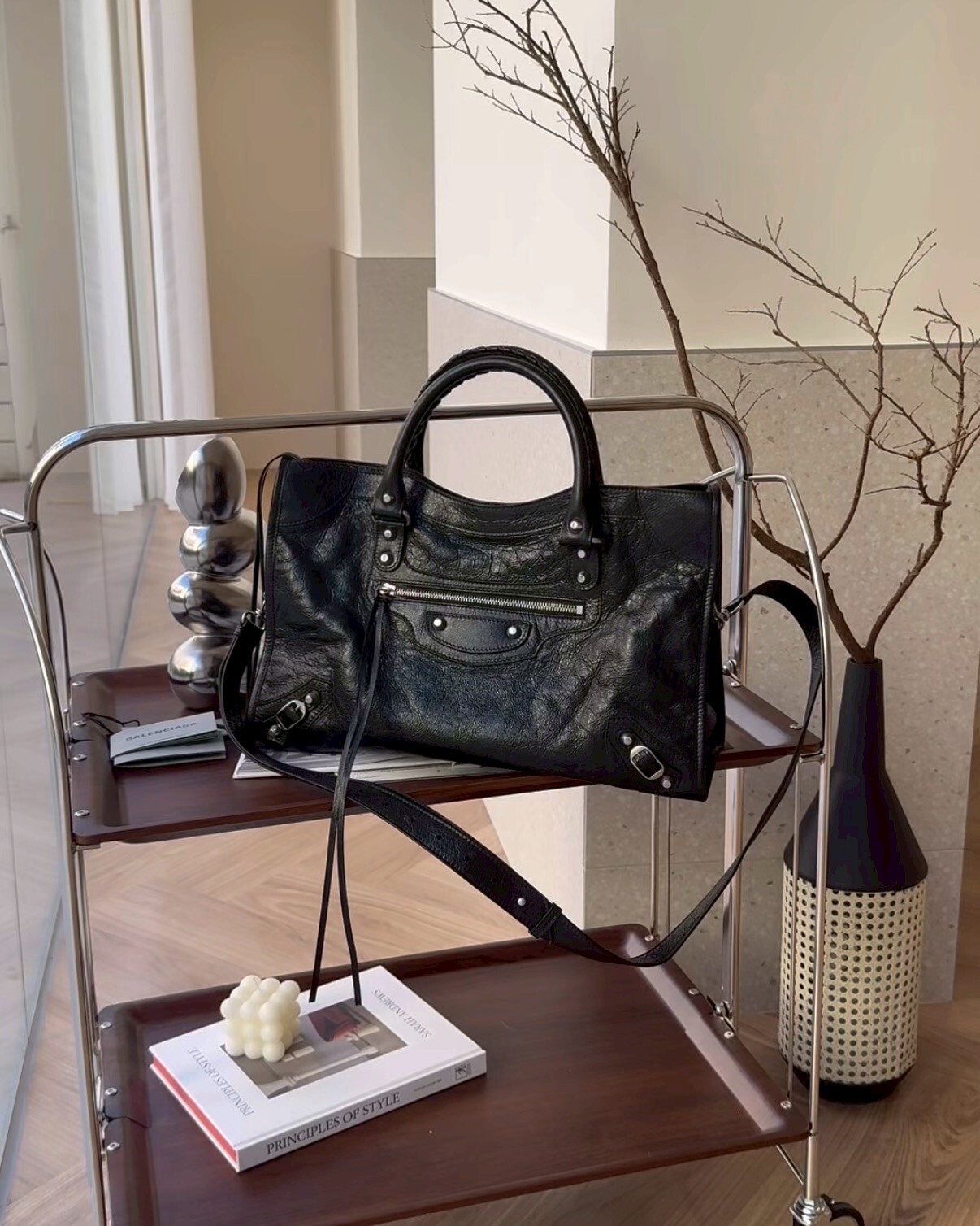 【BALENCIAGA】機車包中號 黑銀