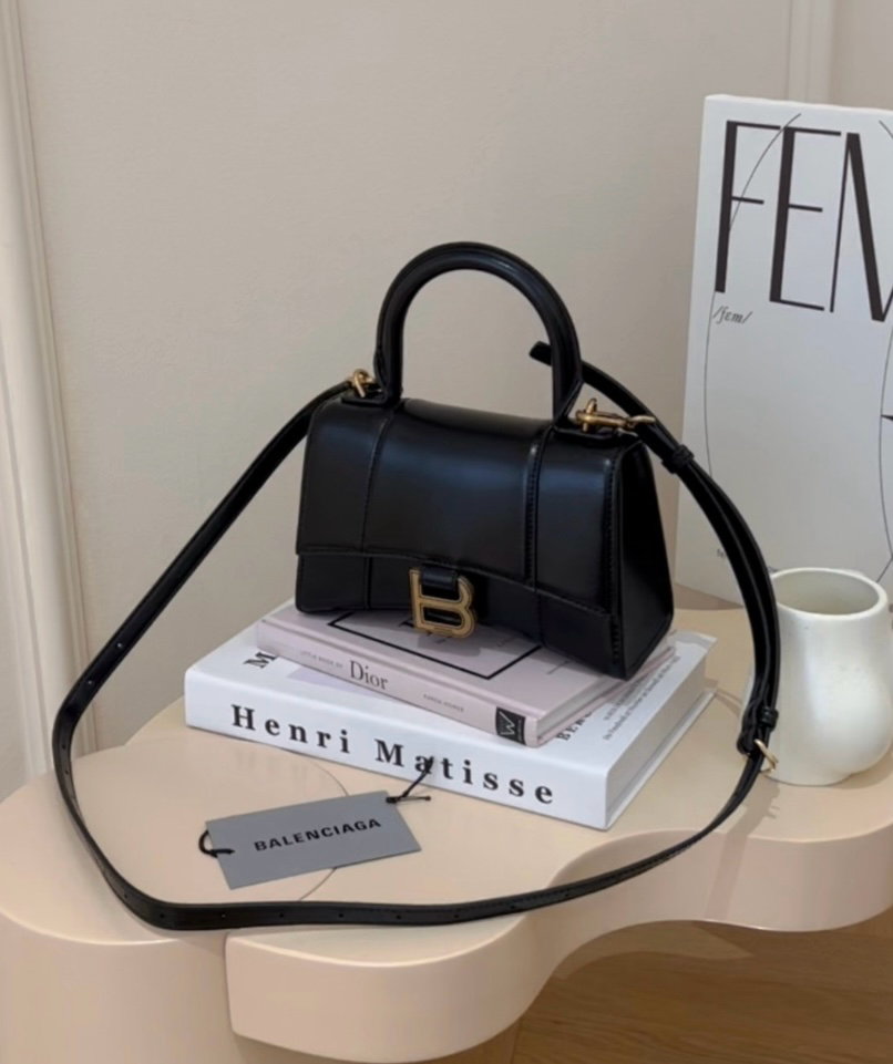 【BALENCIAGA】滑面款沙漏包XS號 黑金