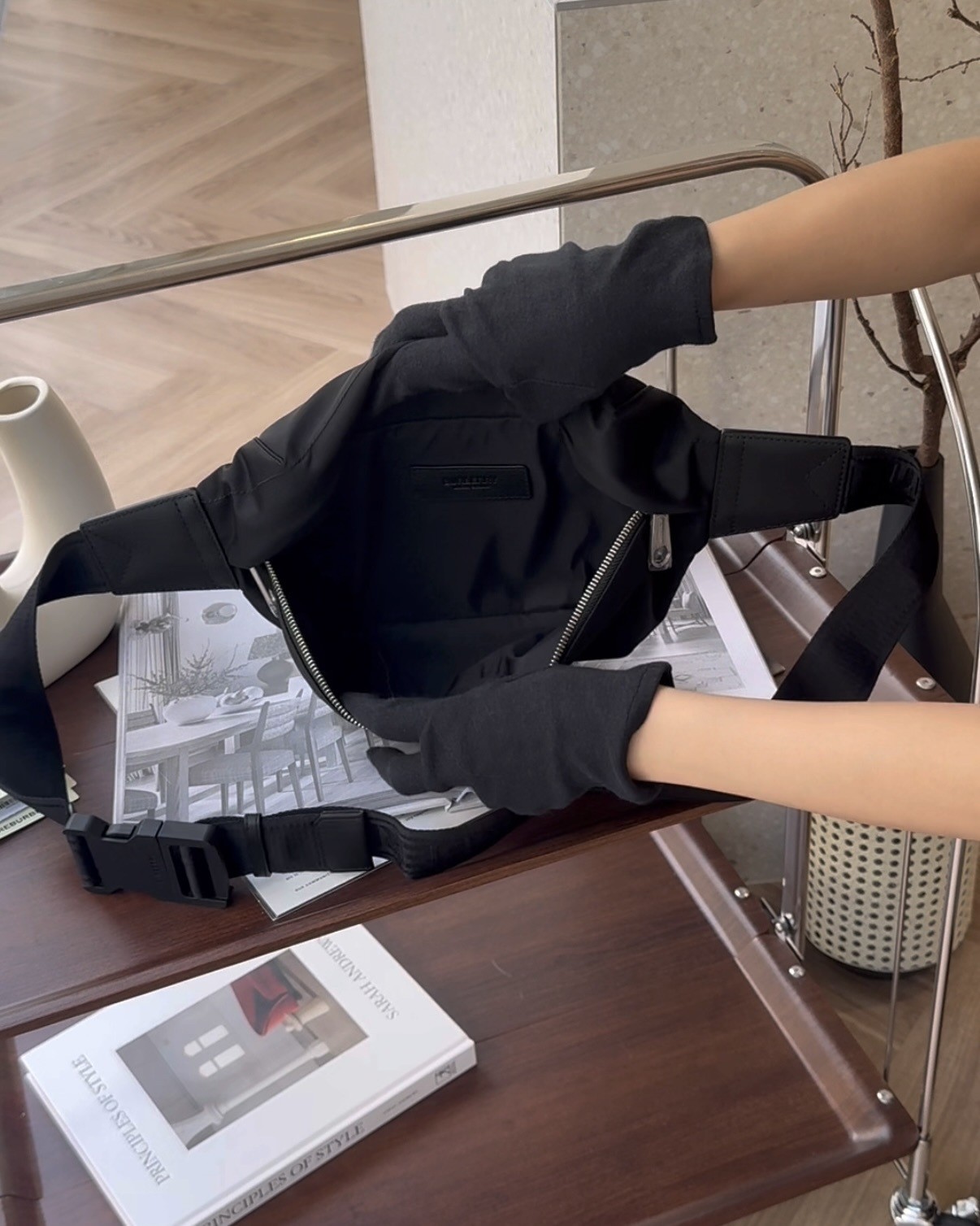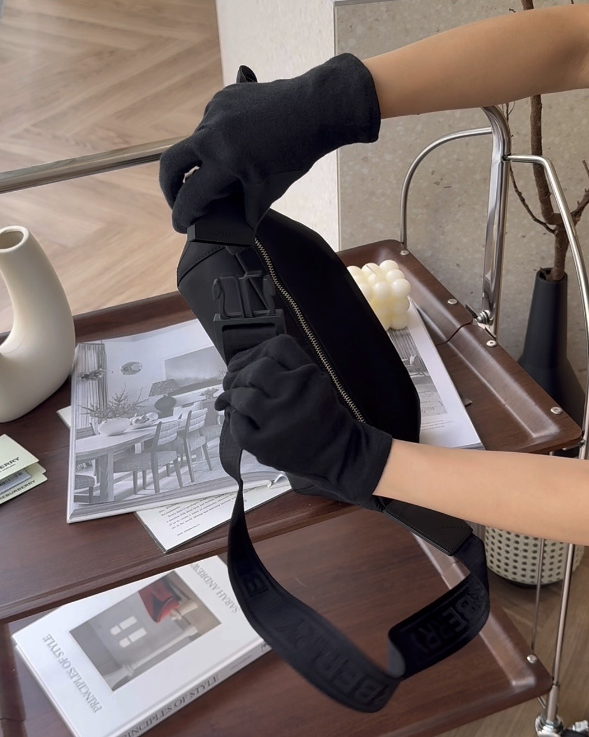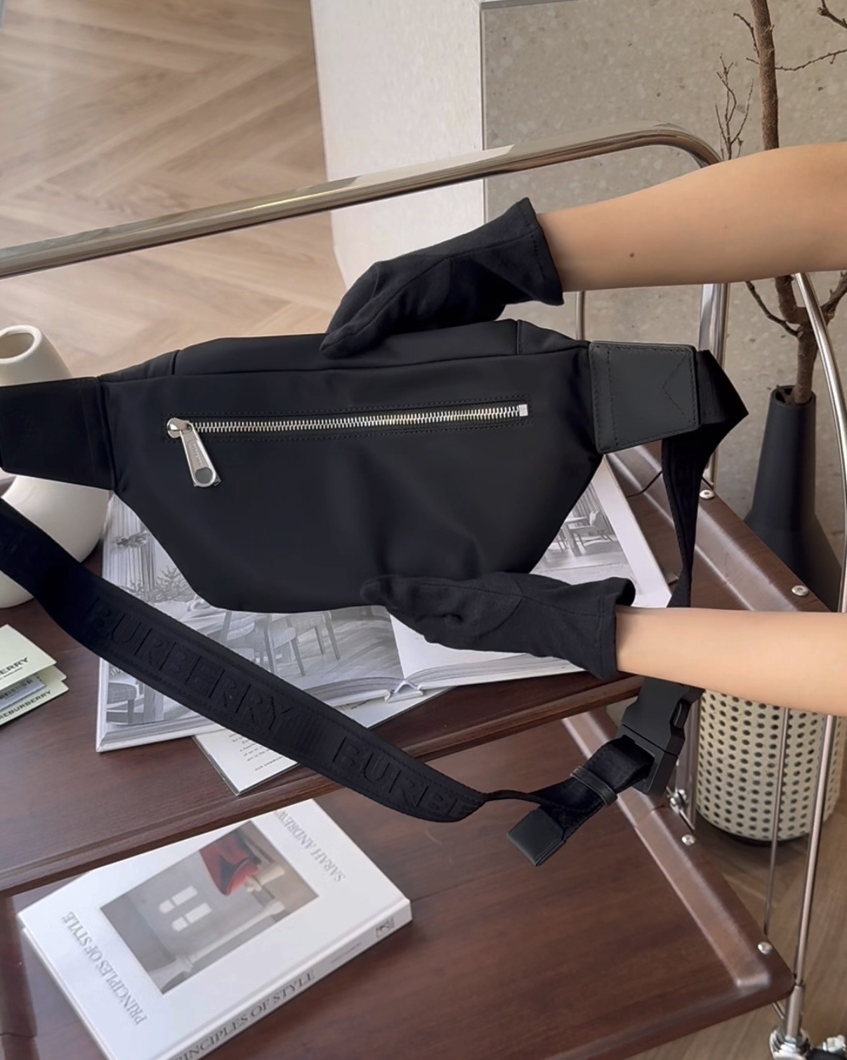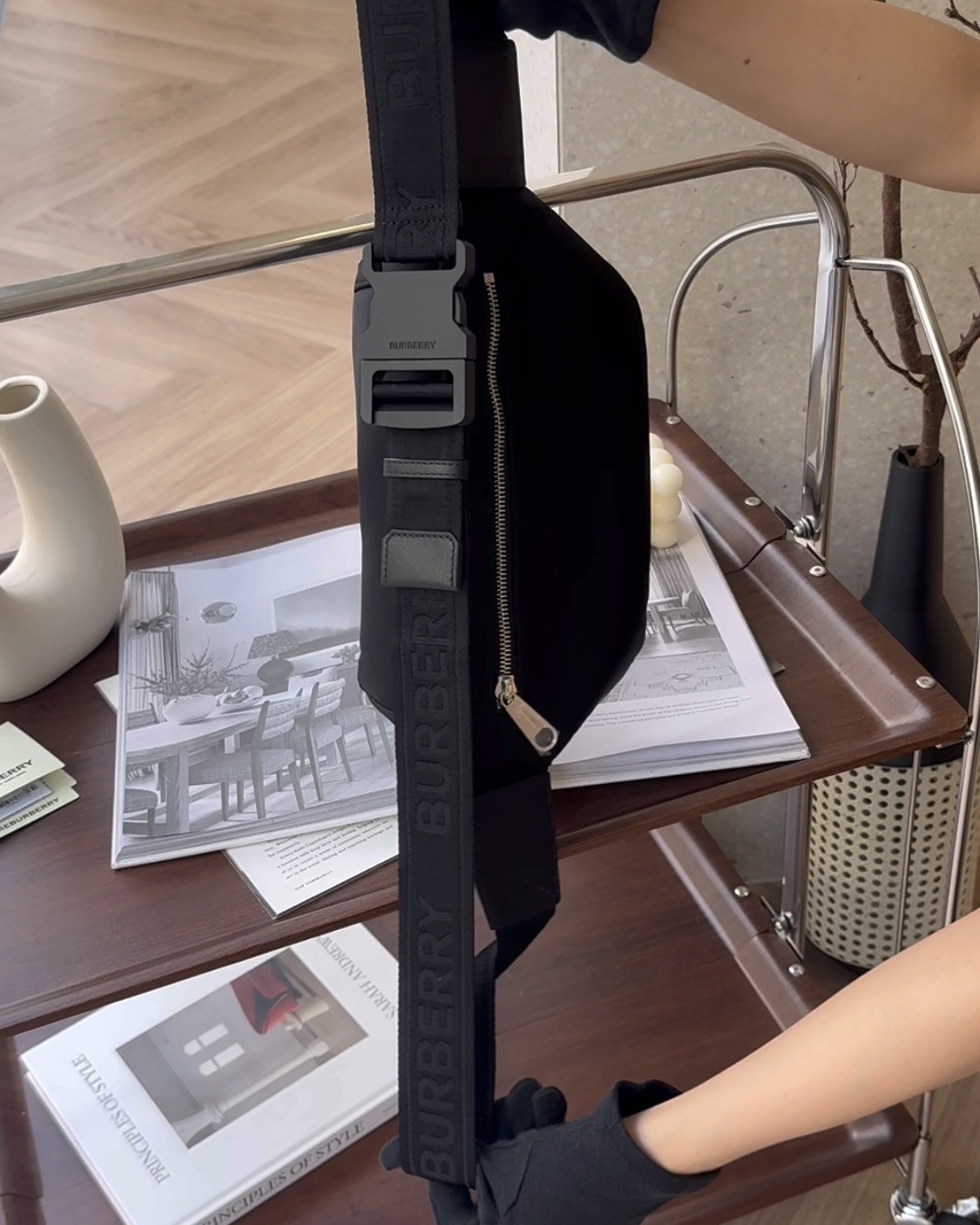 【BURBERRY】印花LOGO尼龍腰包 黑色