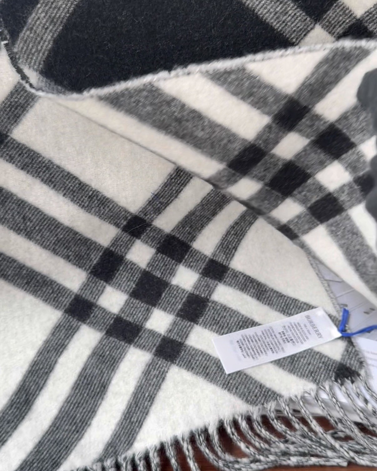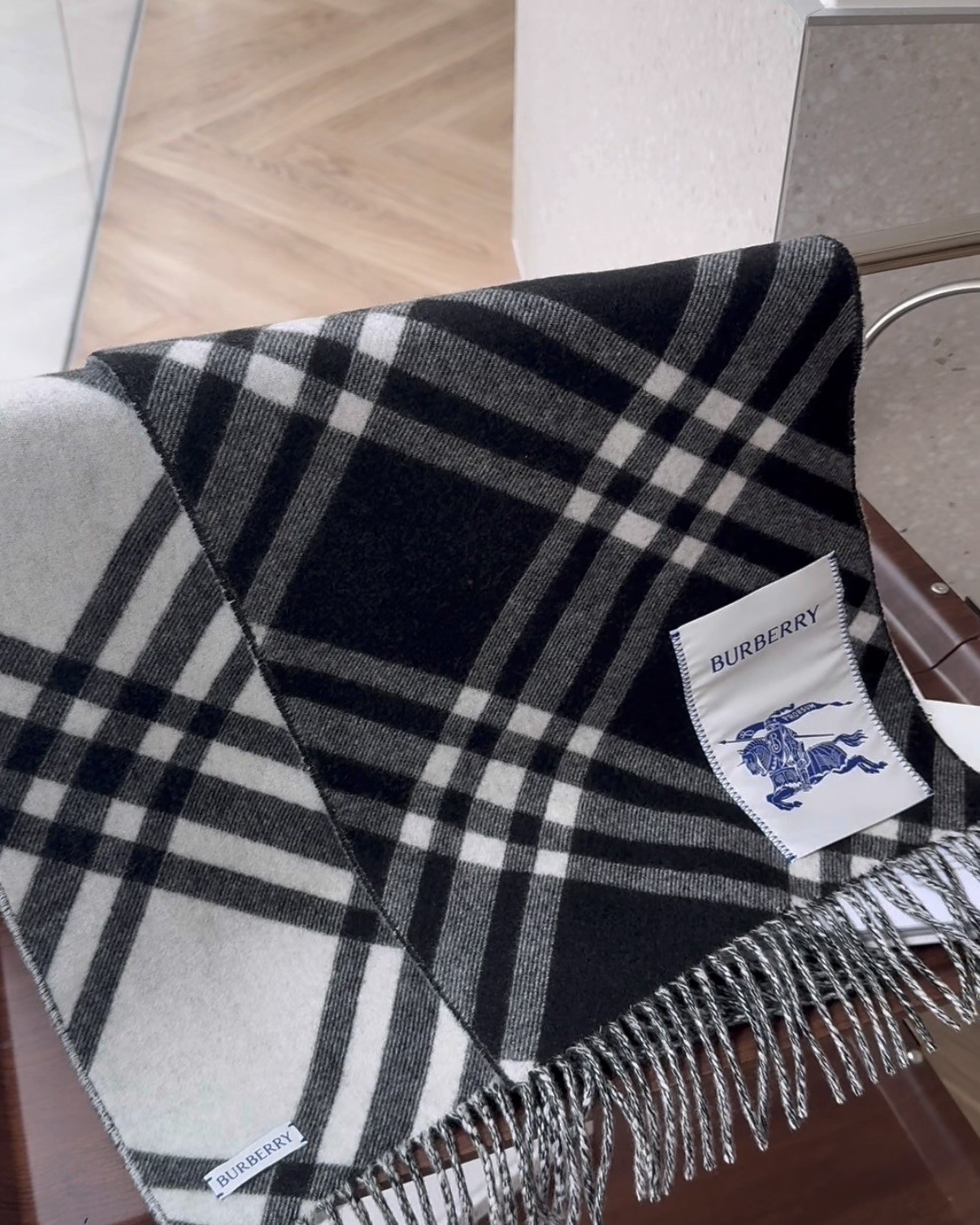 【BURBERRY】格紋羊絨圍巾 黑白色