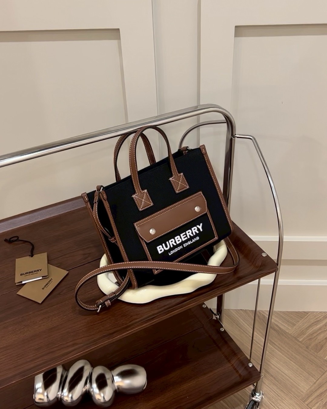 【BURBERRY】FREYA 芙蕾雅迷你托特包 黑棕色