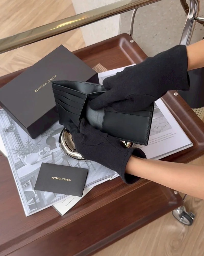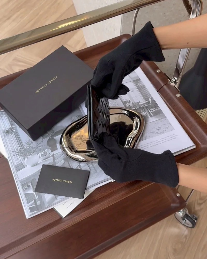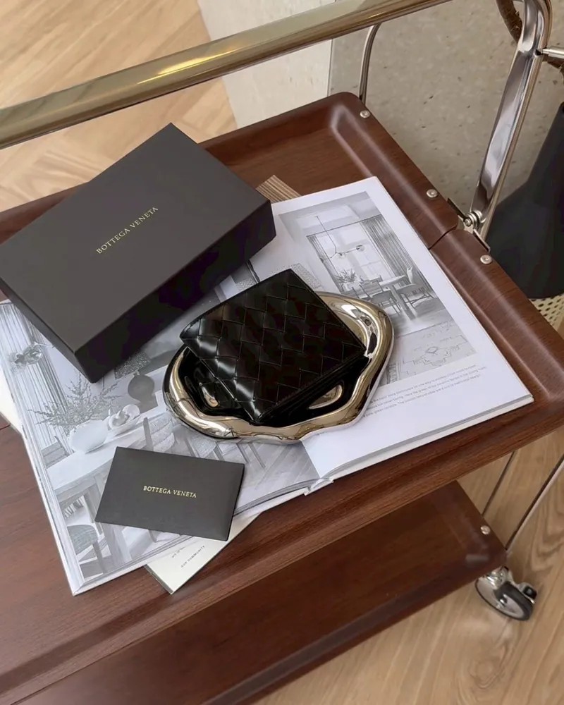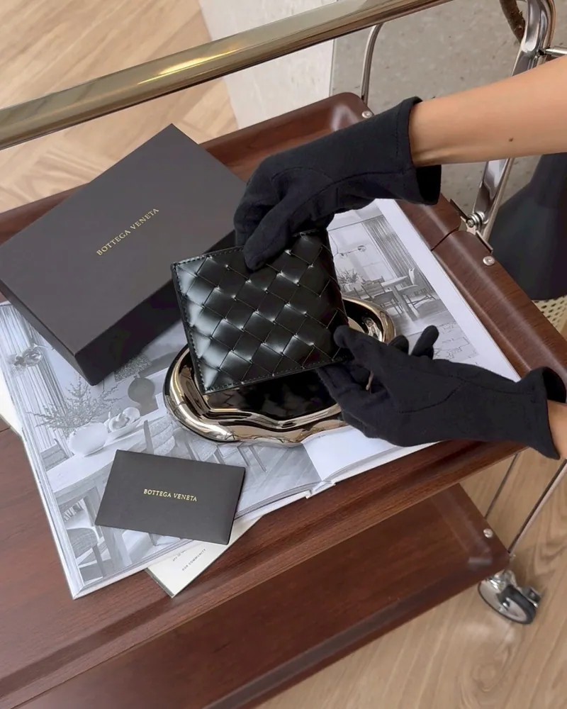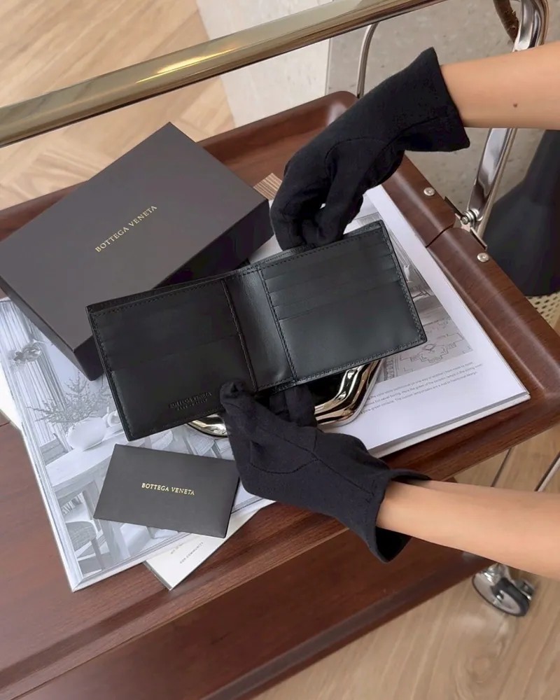 【BV】油蠟編織內八卡雙折短夾 黑色