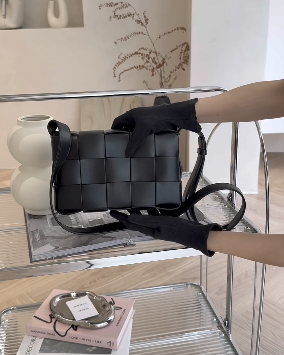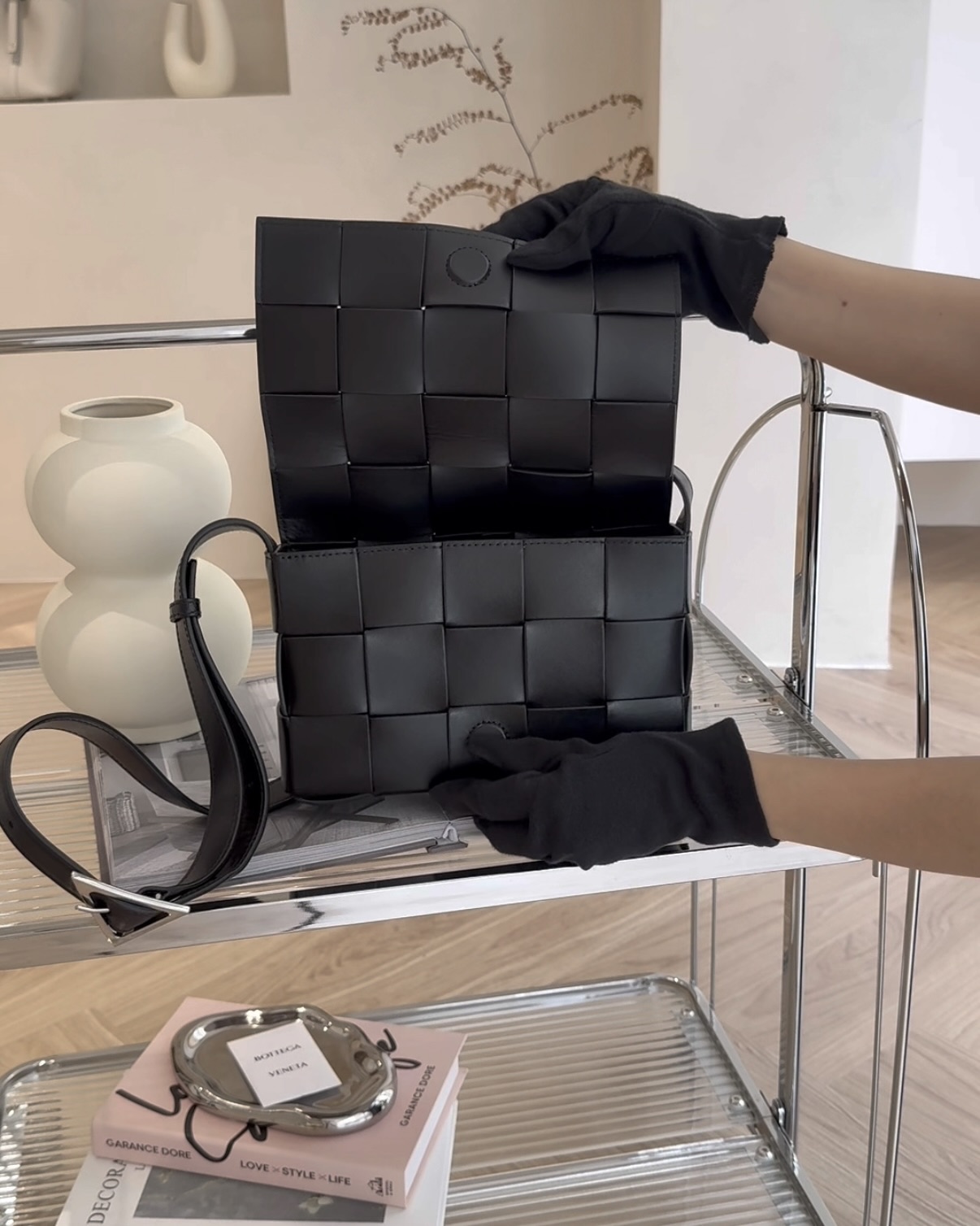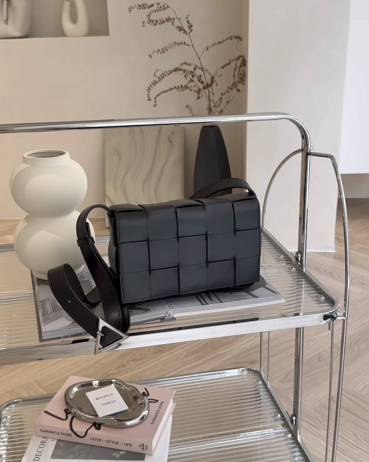 【BV】15格編織牛皮卡帶包 黑色