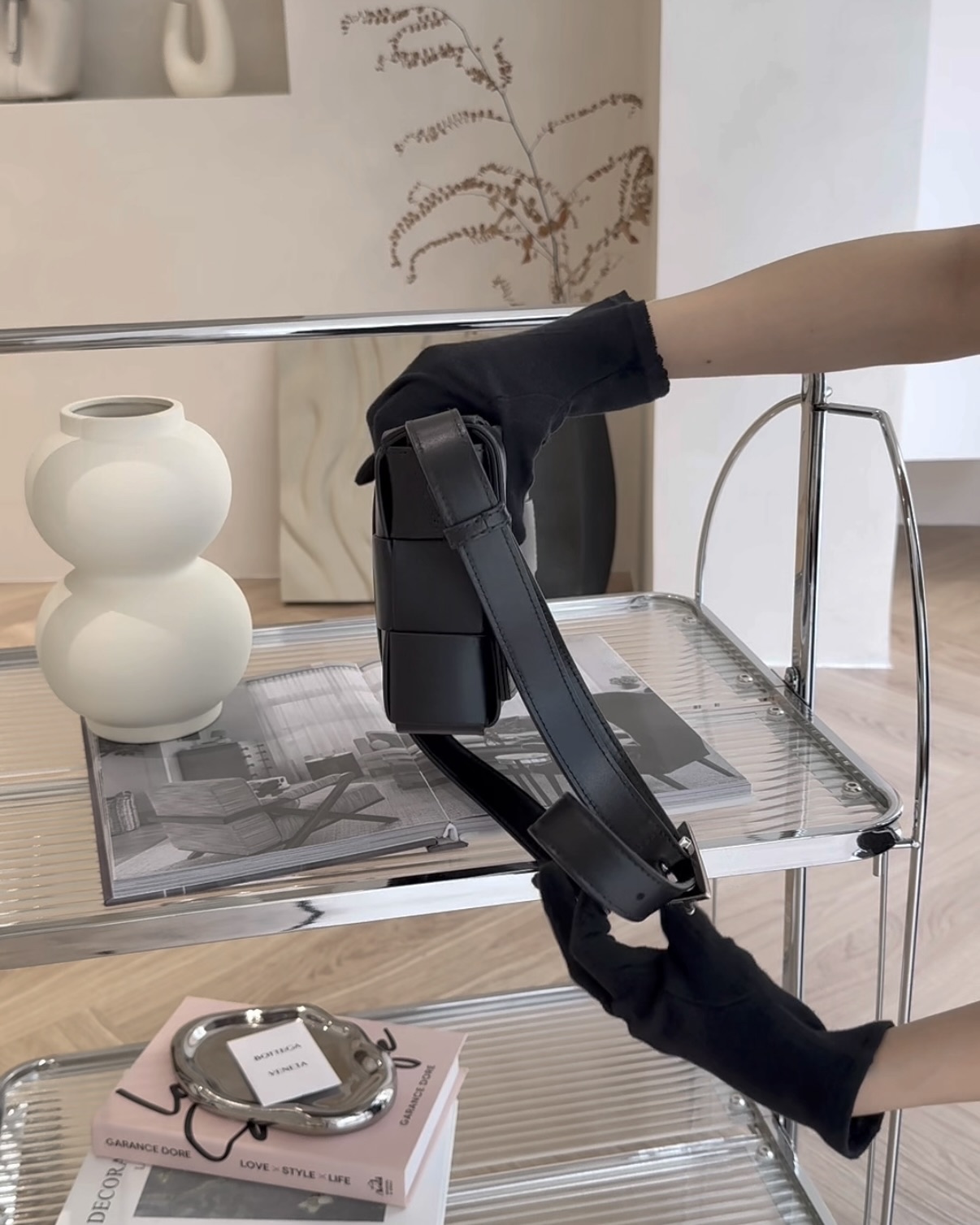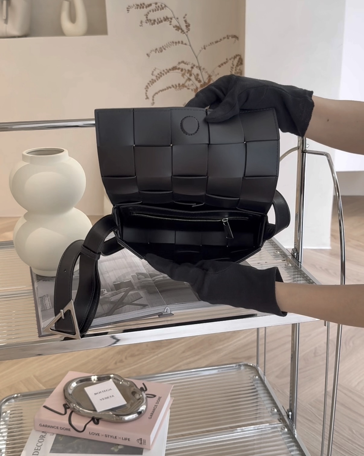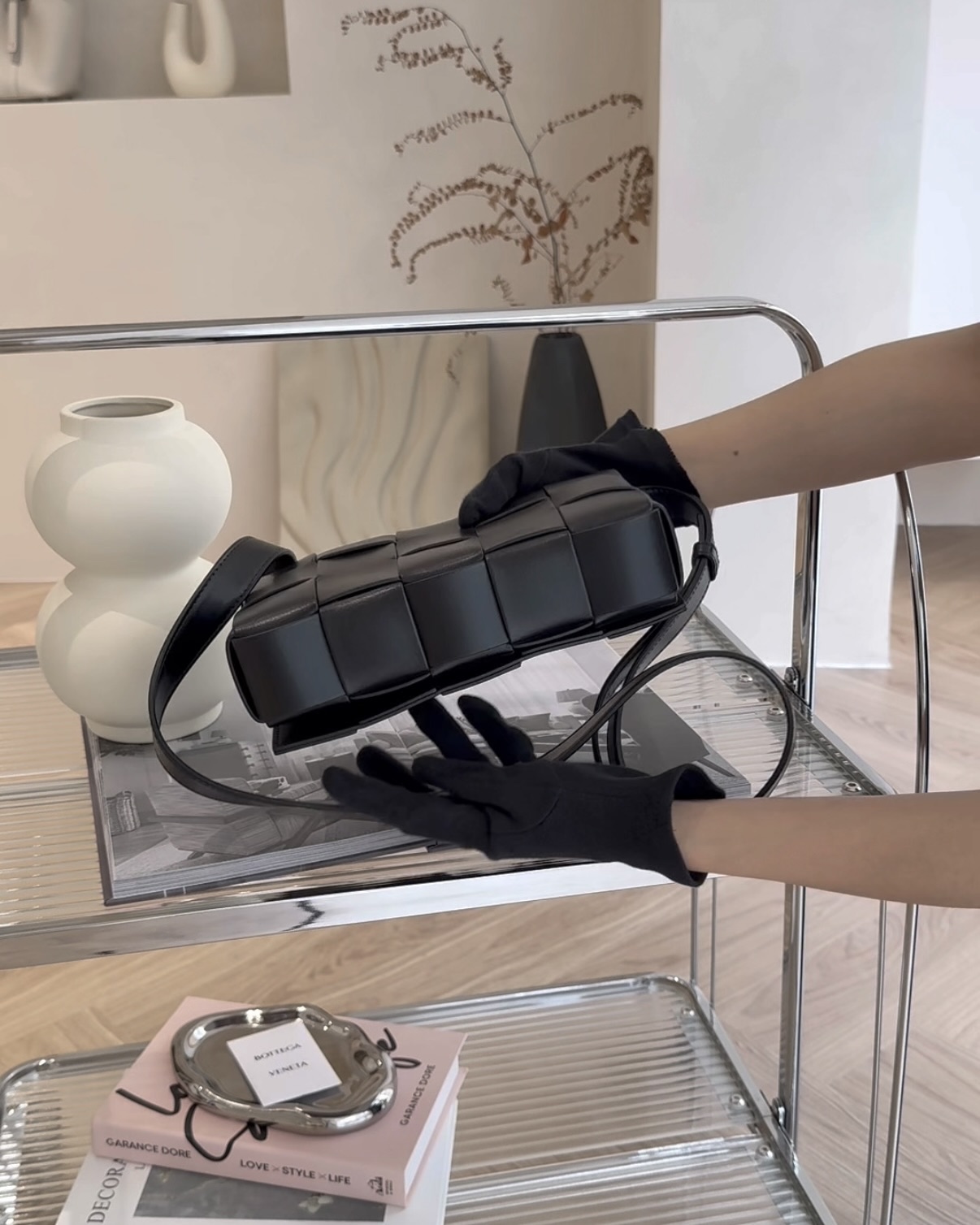 【BV】15格編織牛皮卡帶包 黑色
