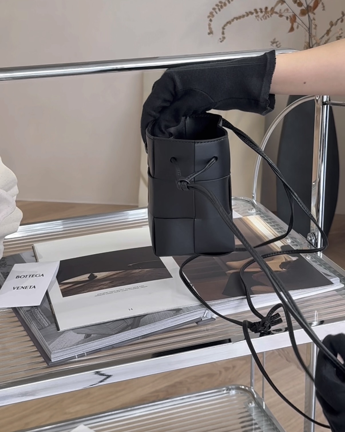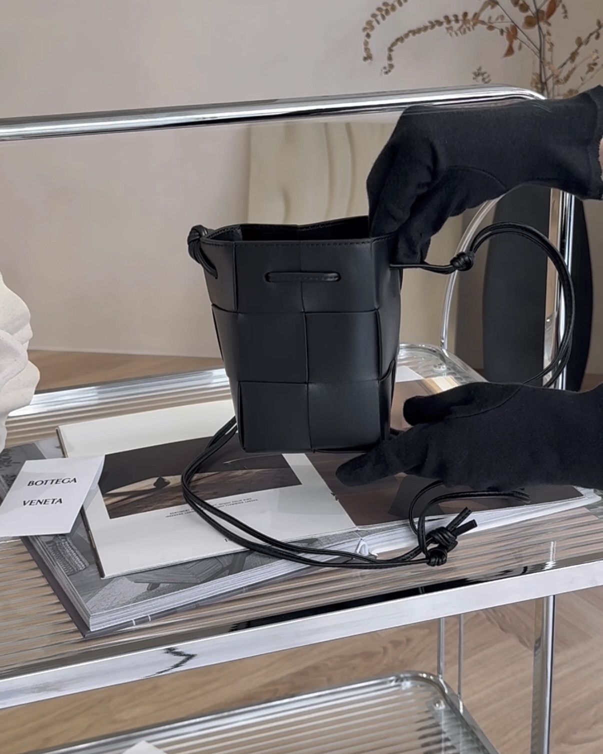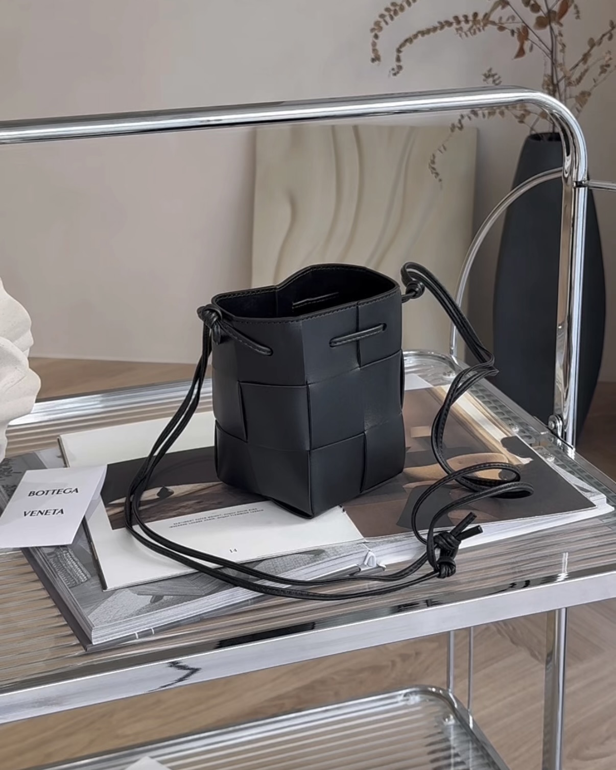 【BV】6格羊皮霧面水桶包 黑色