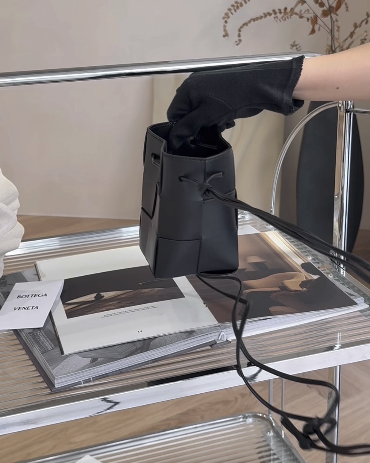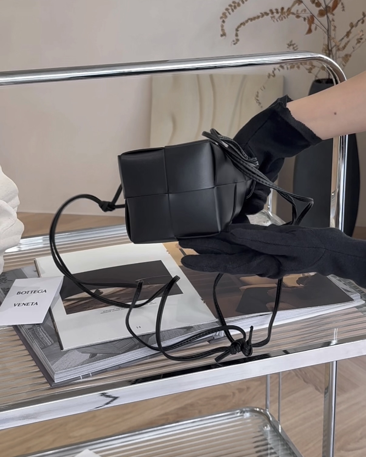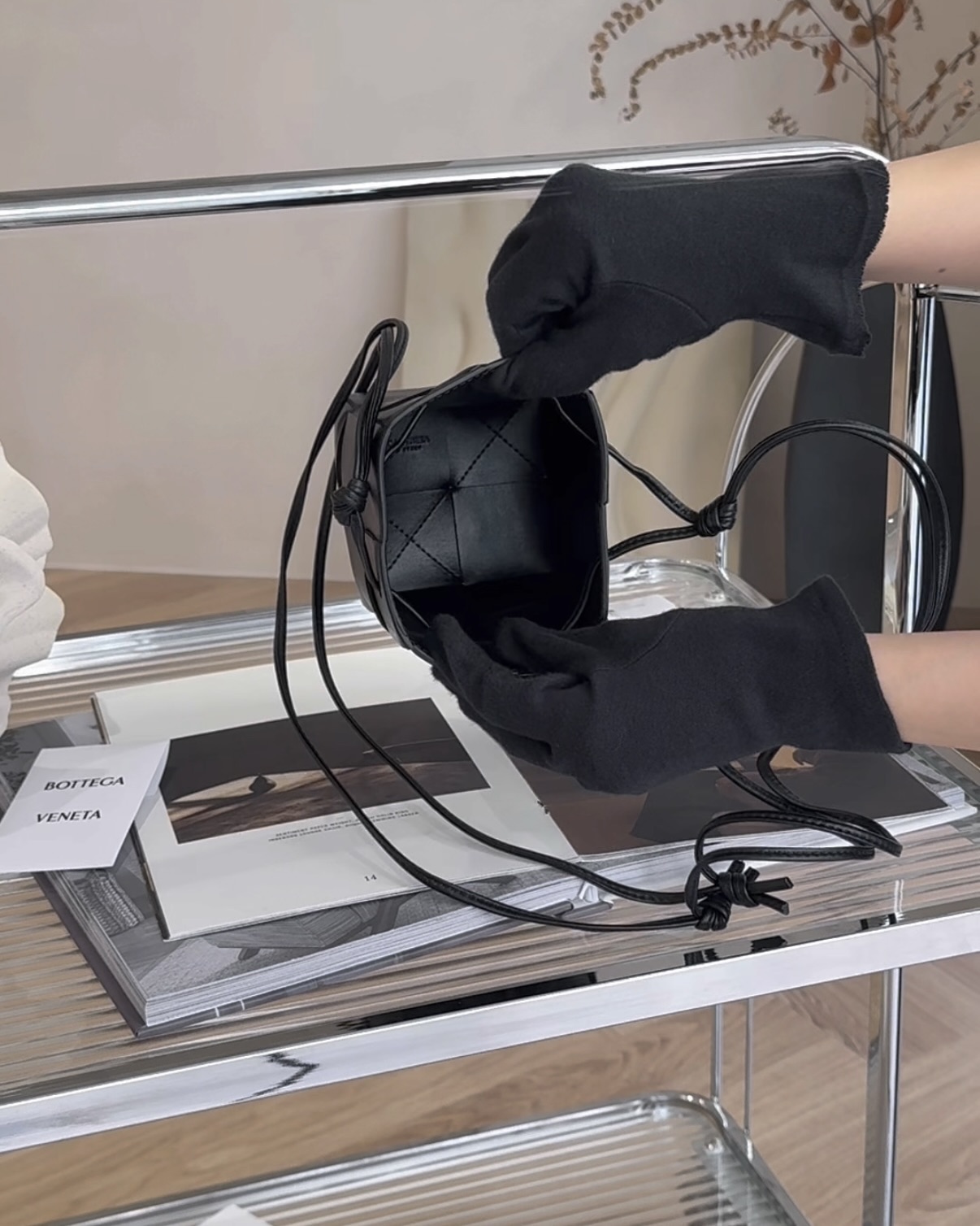 【BV】6格羊皮霧面水桶包 黑色
