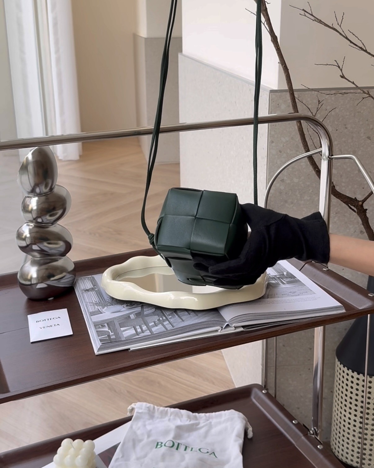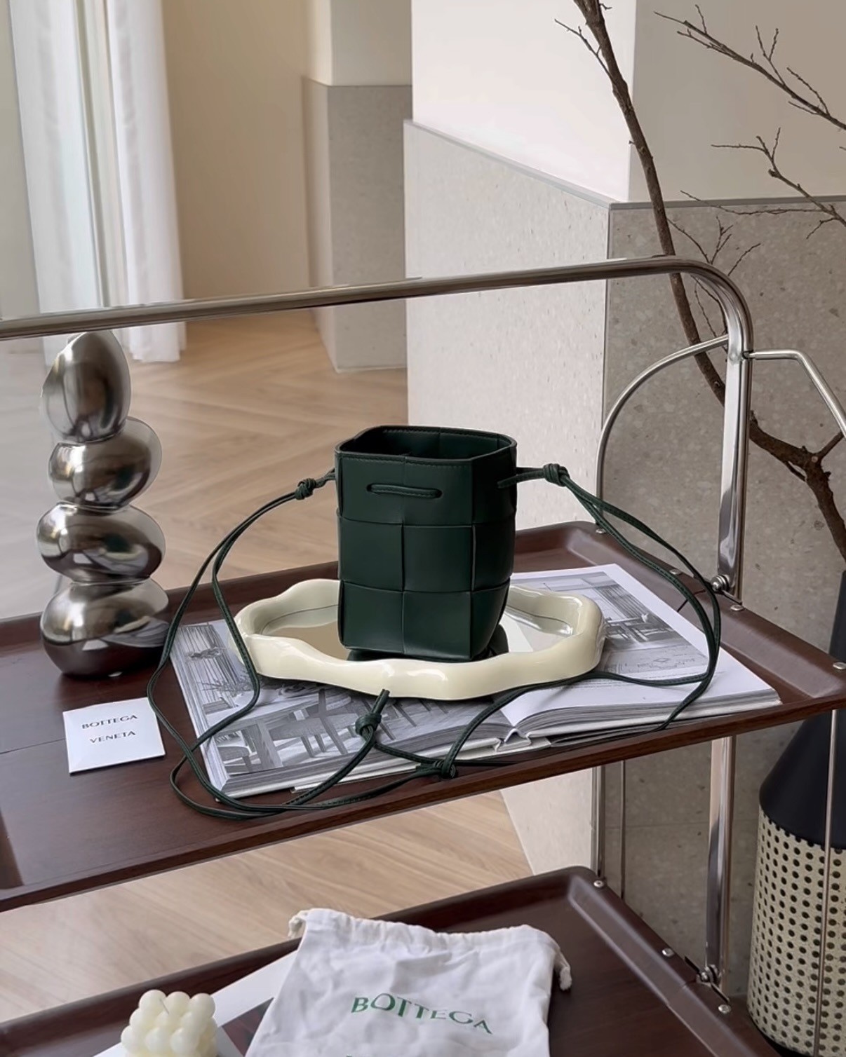 【BV】6格羊皮霧面迷你卡帶包 雨林綠