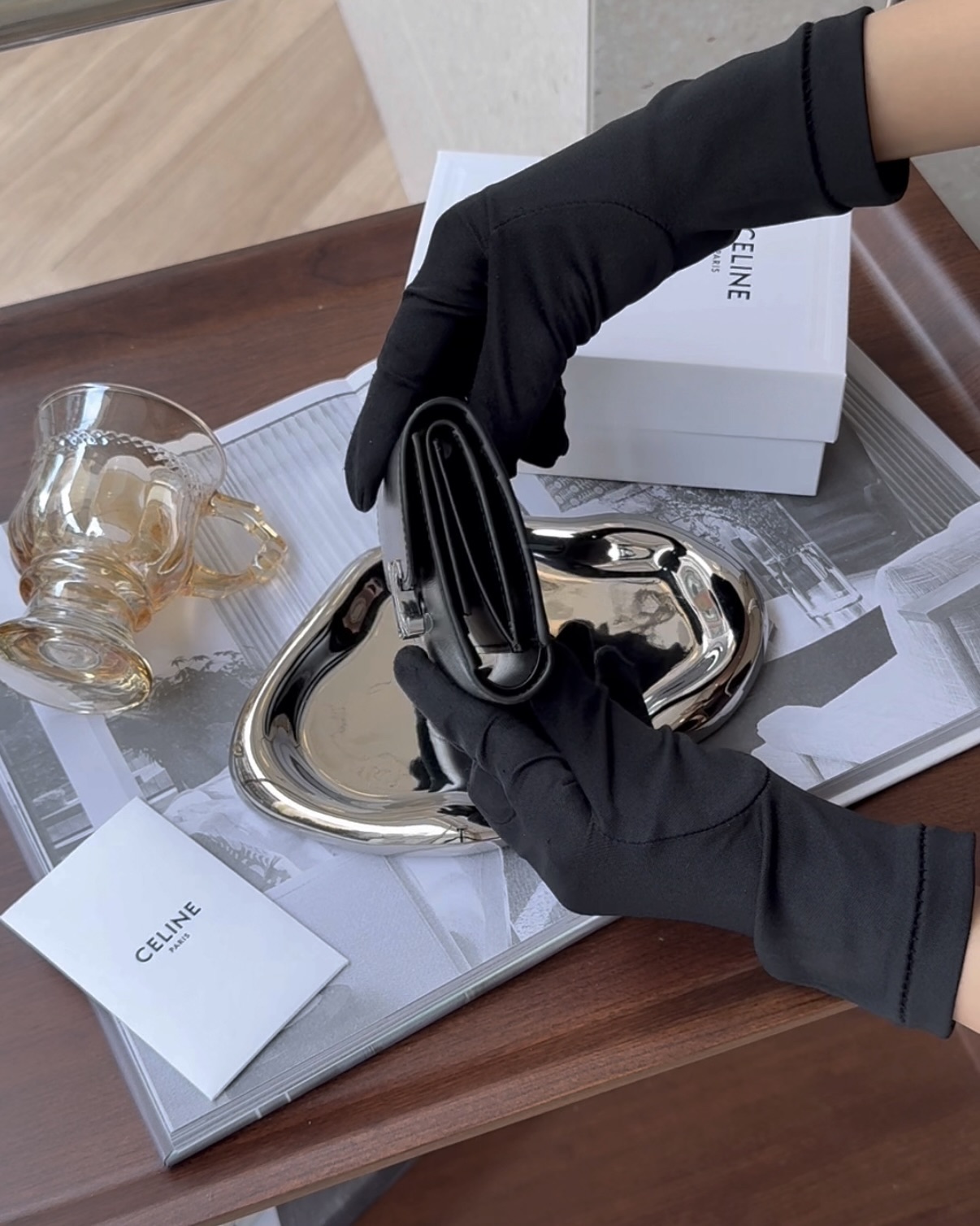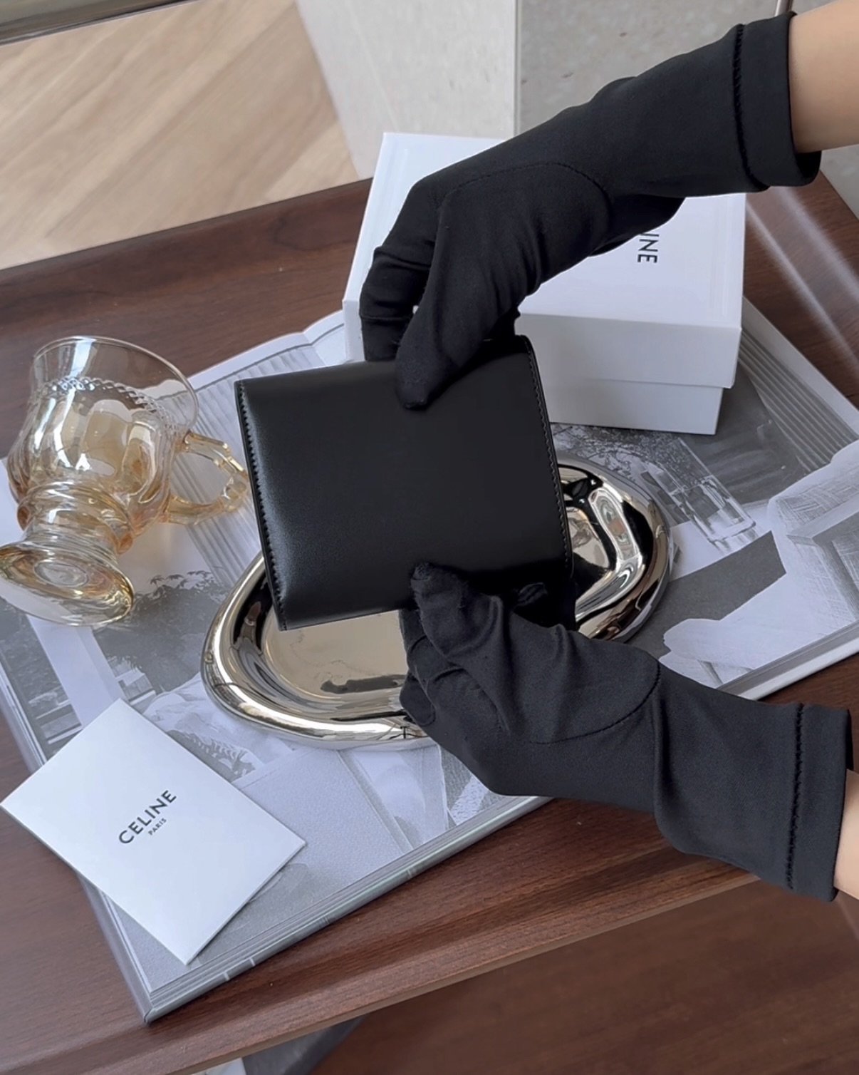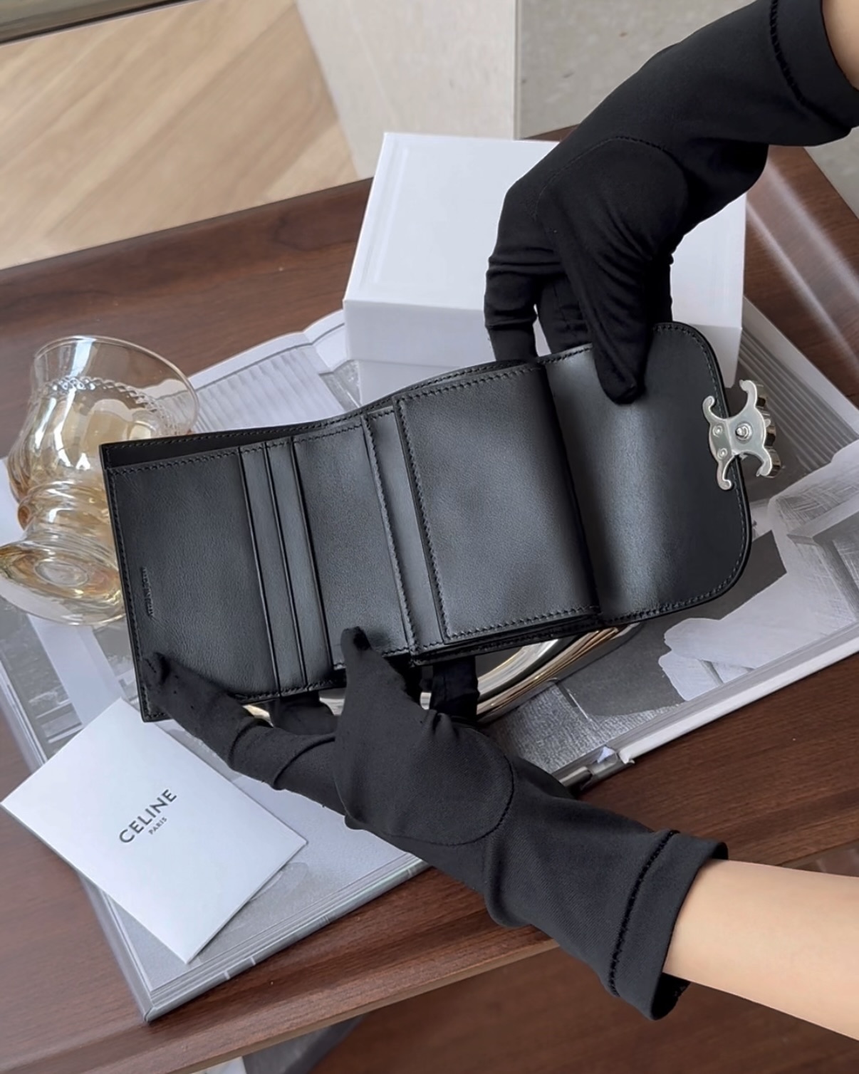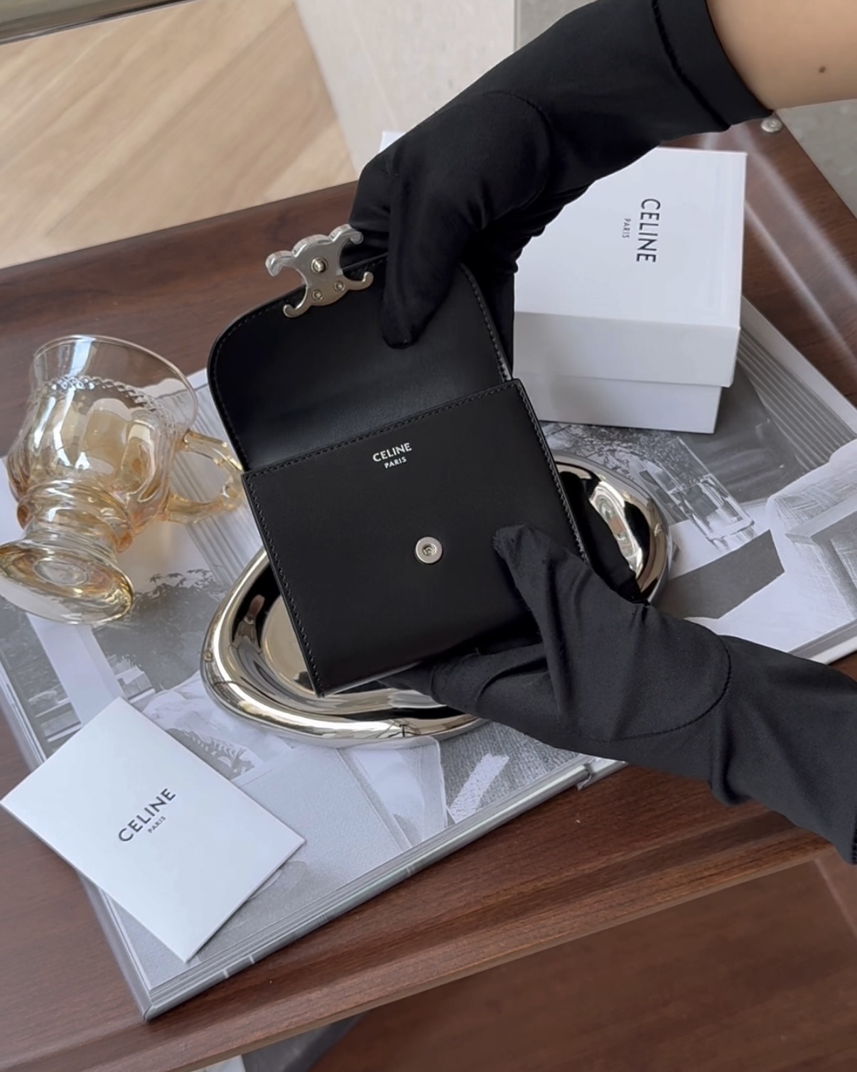 【CELINE】凱旋門三折短夾 黑銀