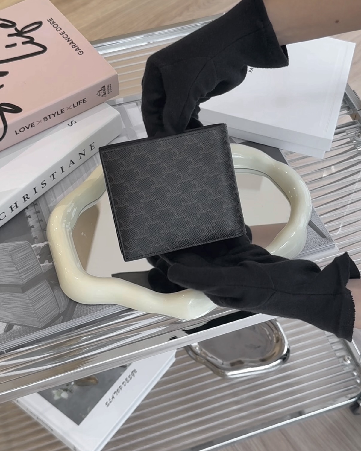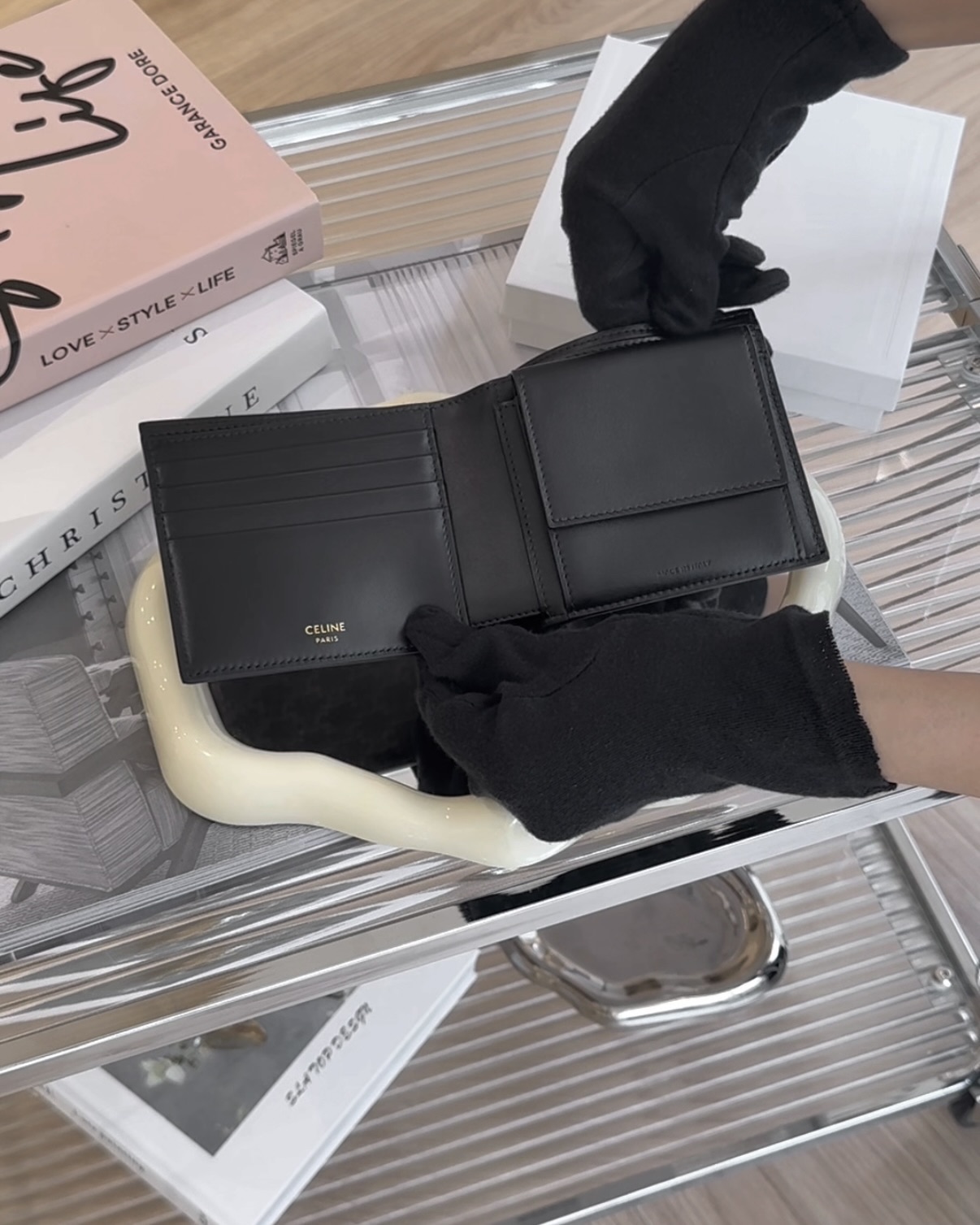 【CELINE】凱旋門內零錢袋雙折短夾 深老花