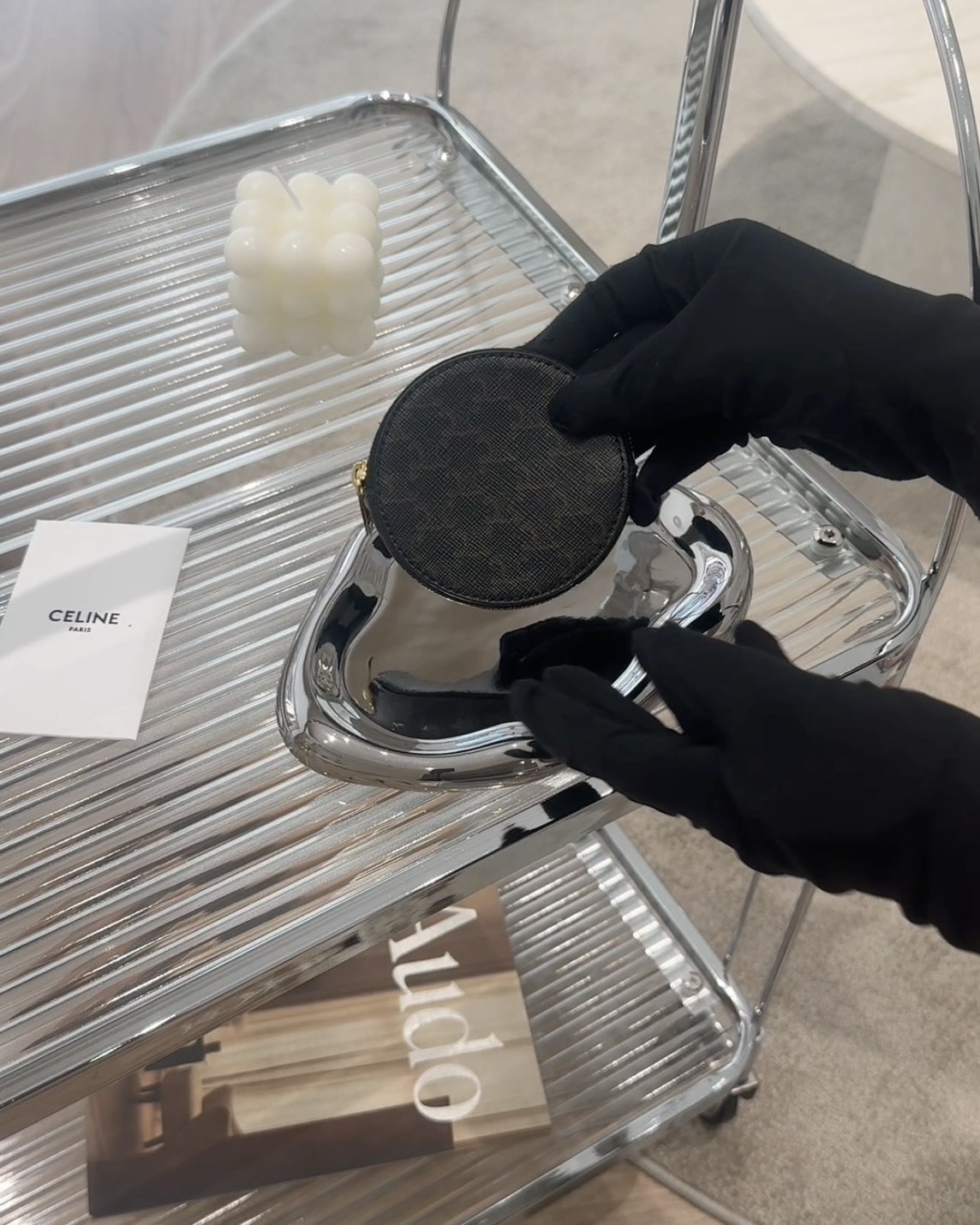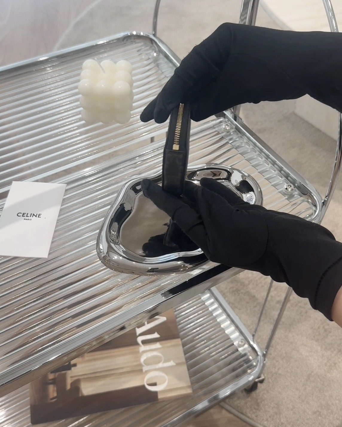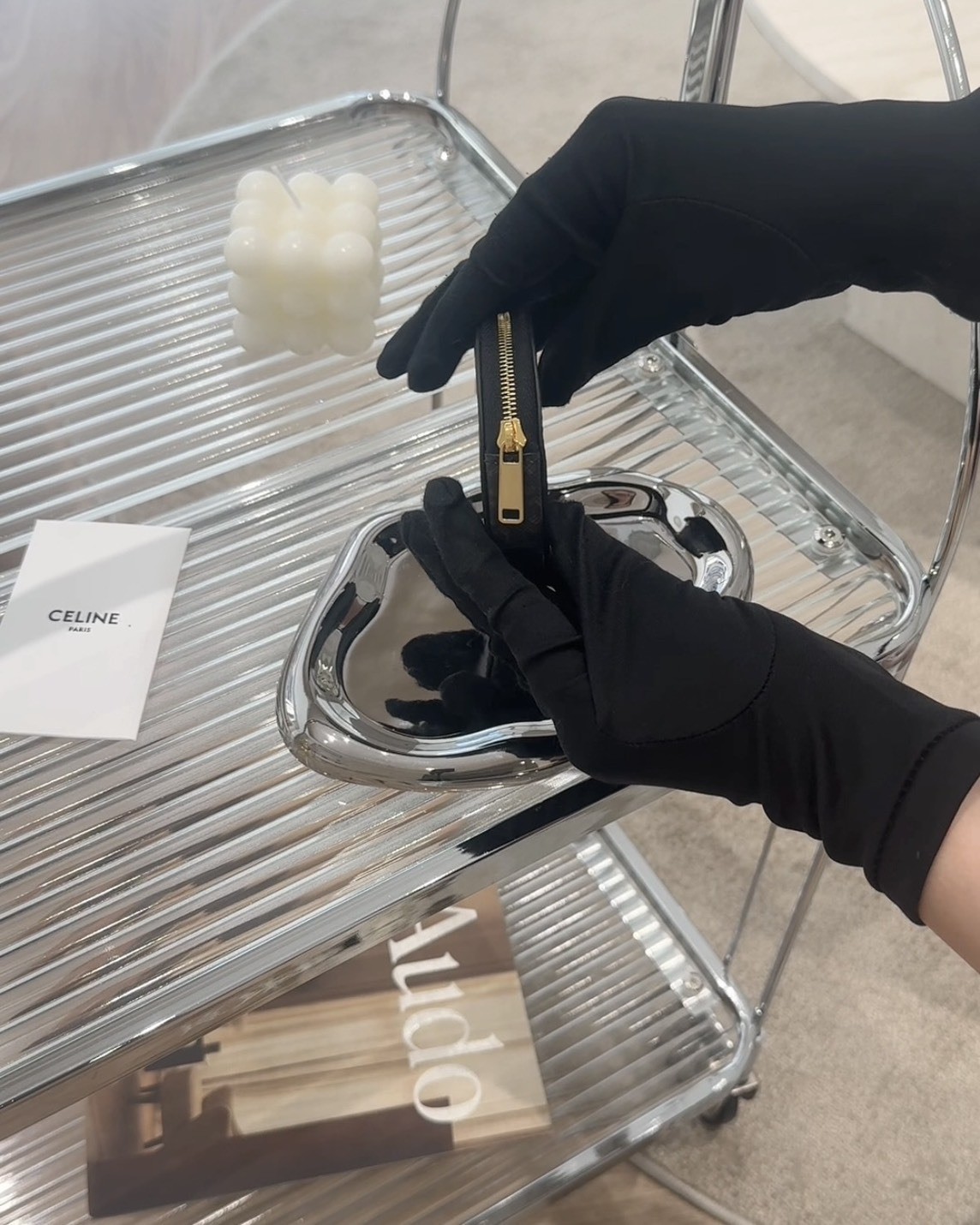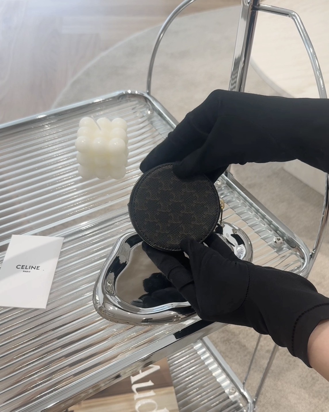 【CELINE】凱旋門印花零錢包 黑老花