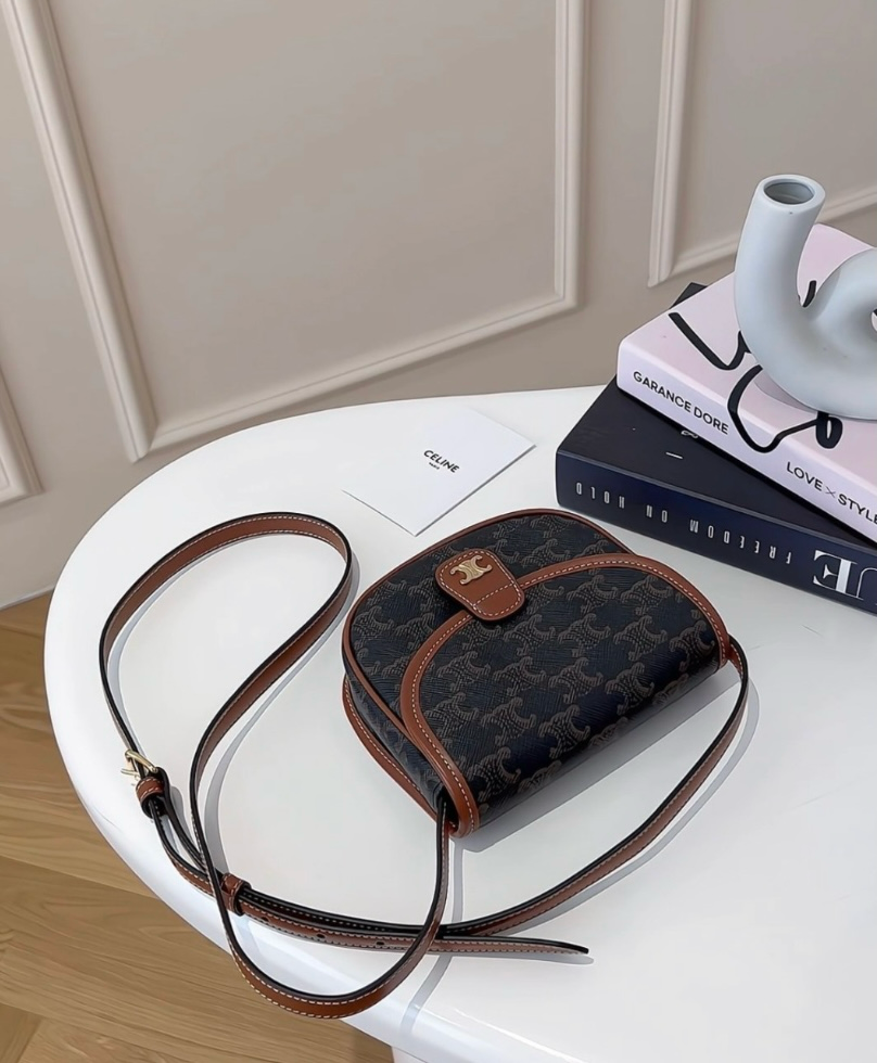 【CELINE】凱旋門迷你小馬鞍 深老花
