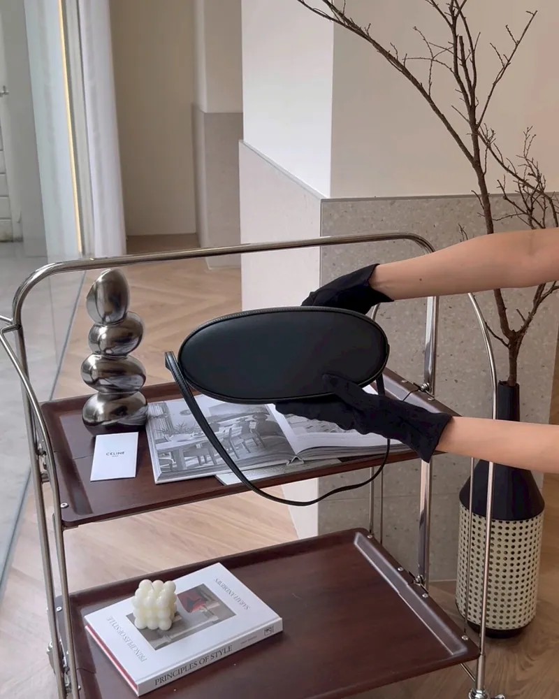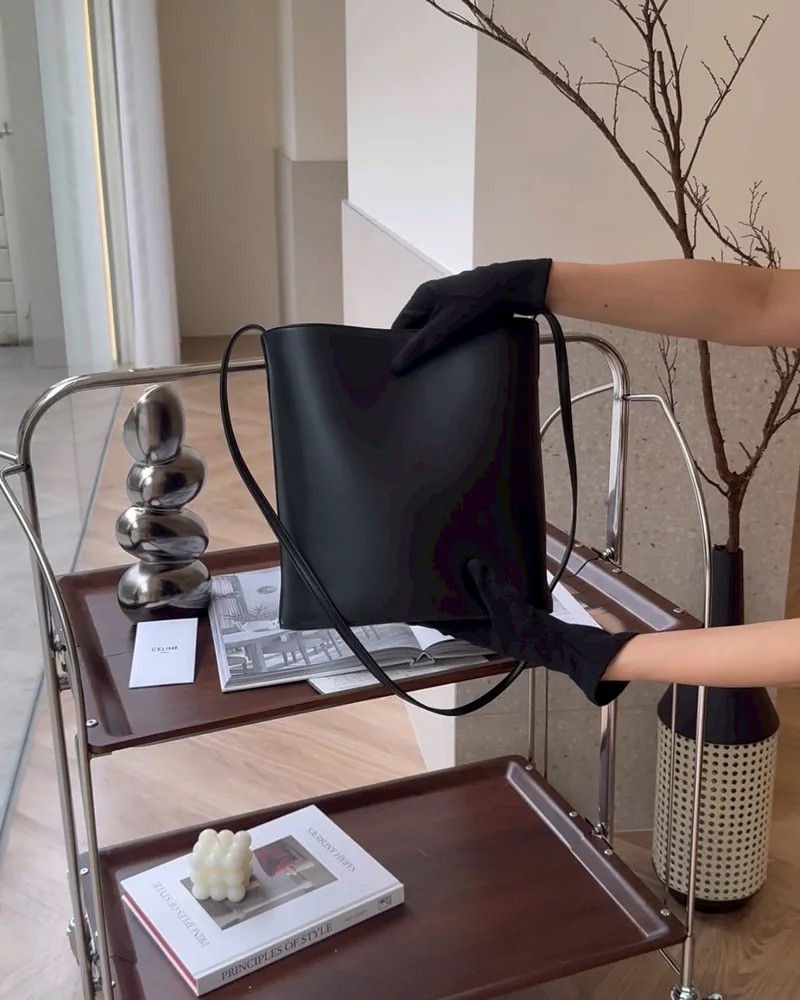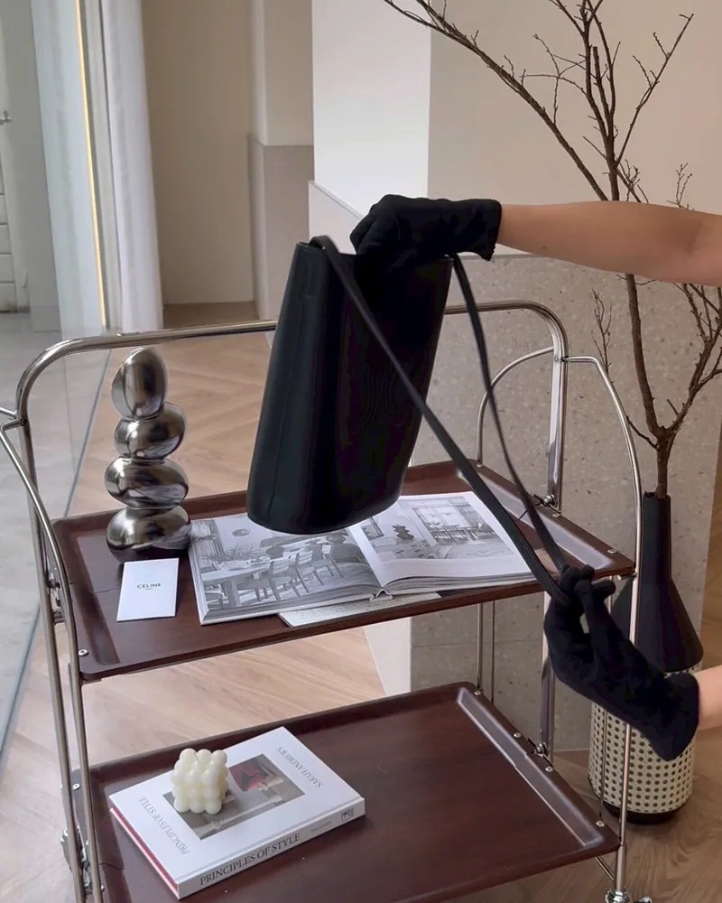 【CELINE】小牛皮革LOGO水桶包 黑色