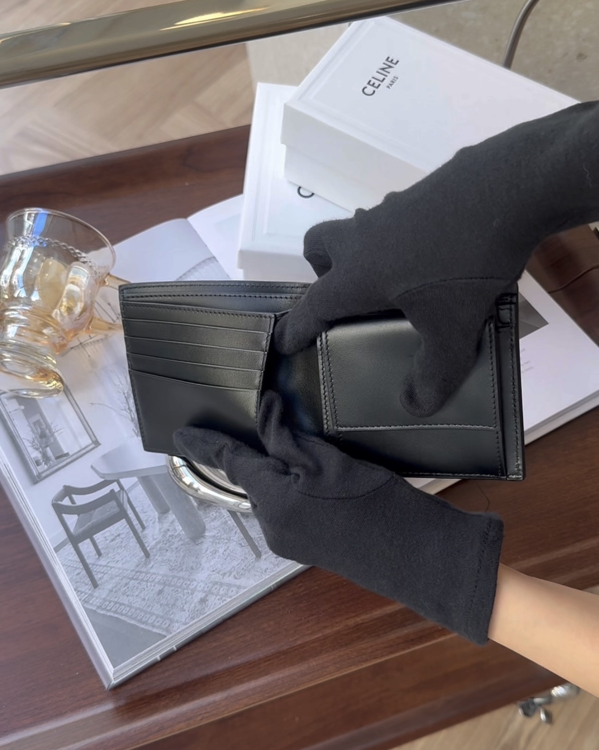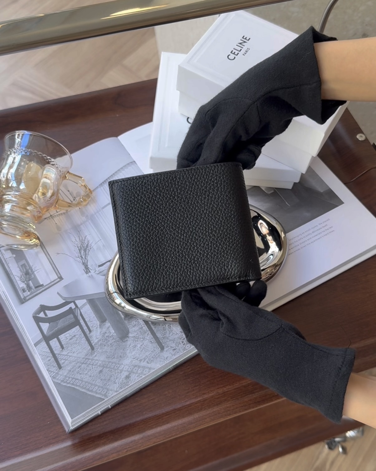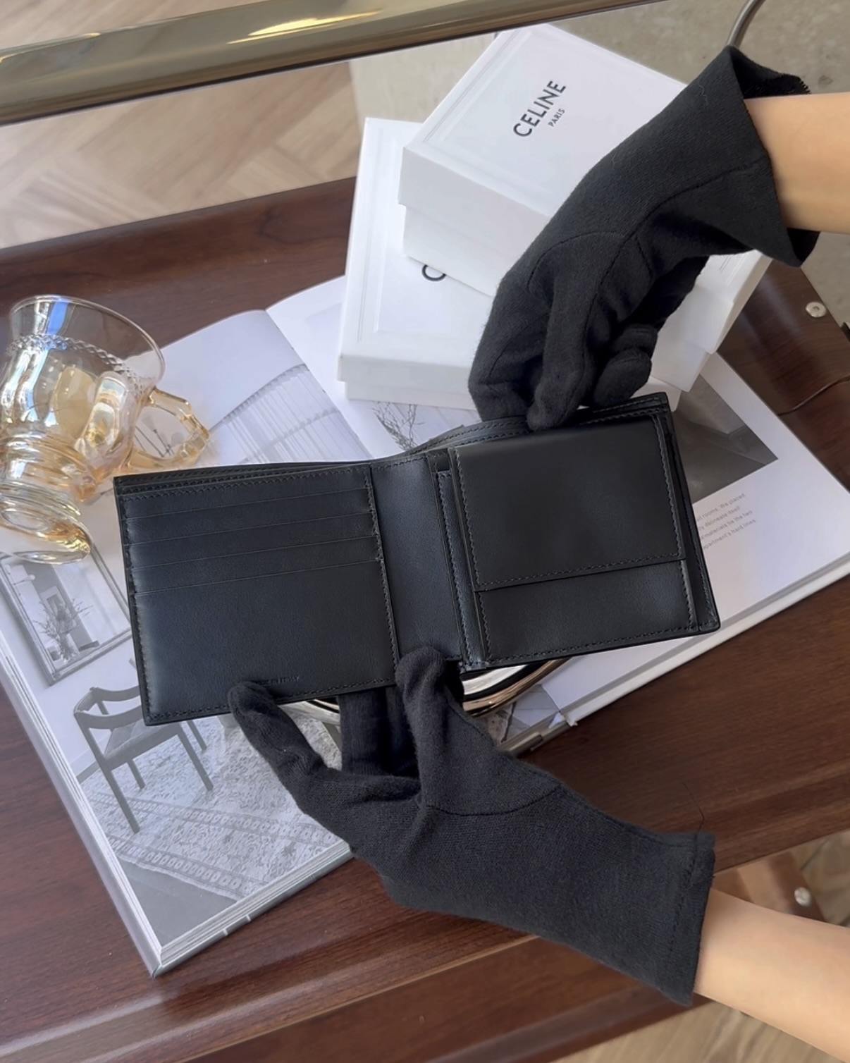【CELINE】粒面牛皮內零錢袋雙折短夾 黑色