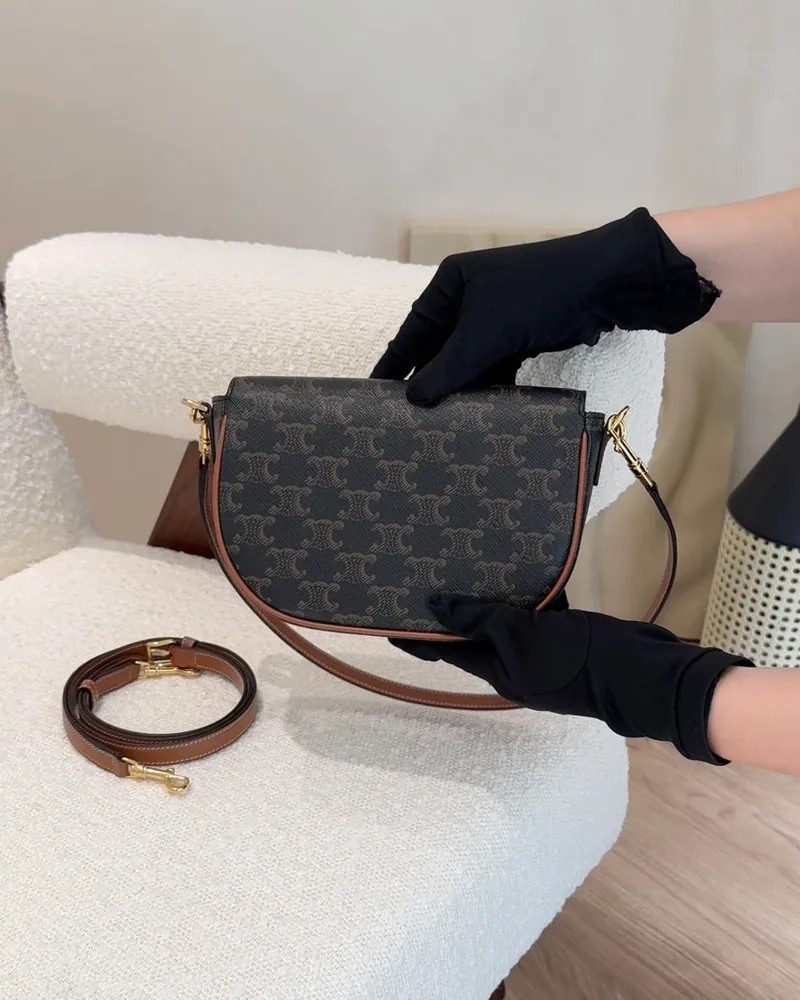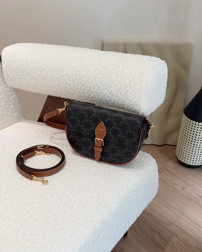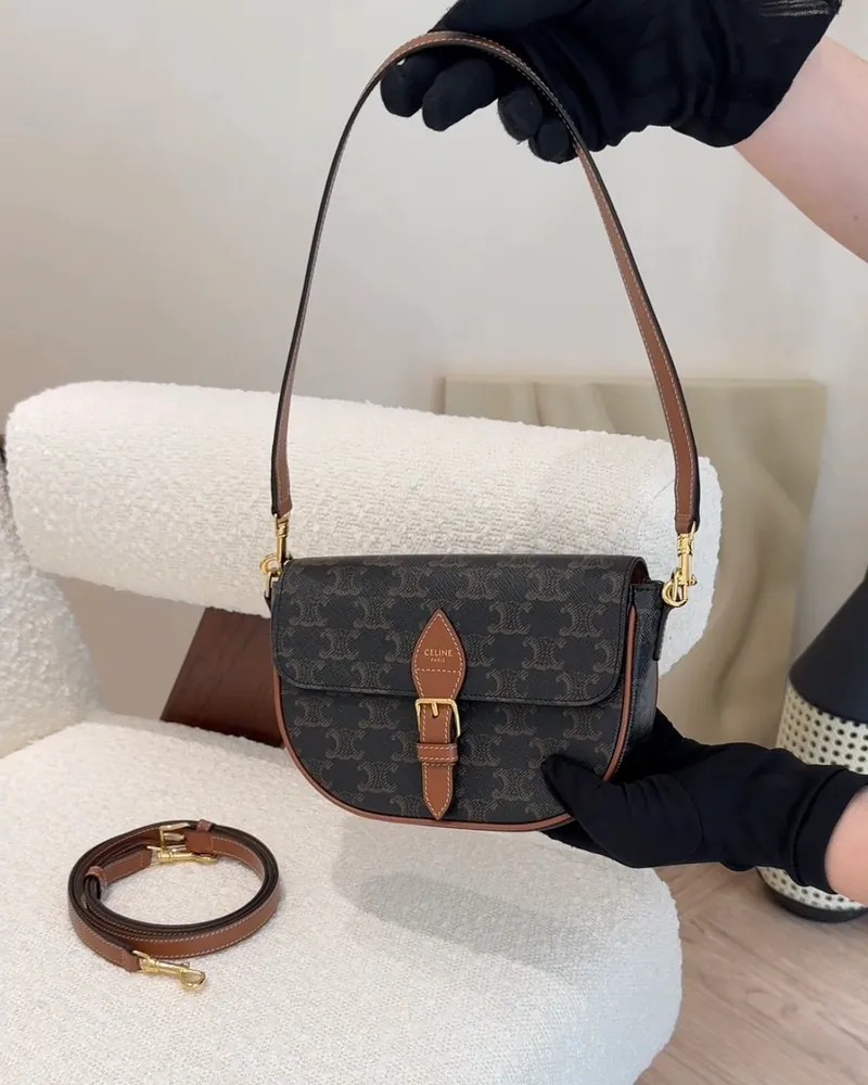 【CELINE】FOLCO 馬鞍腋下包 深老花