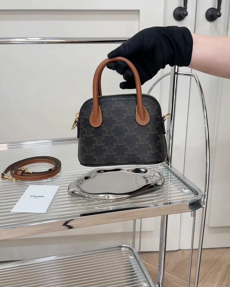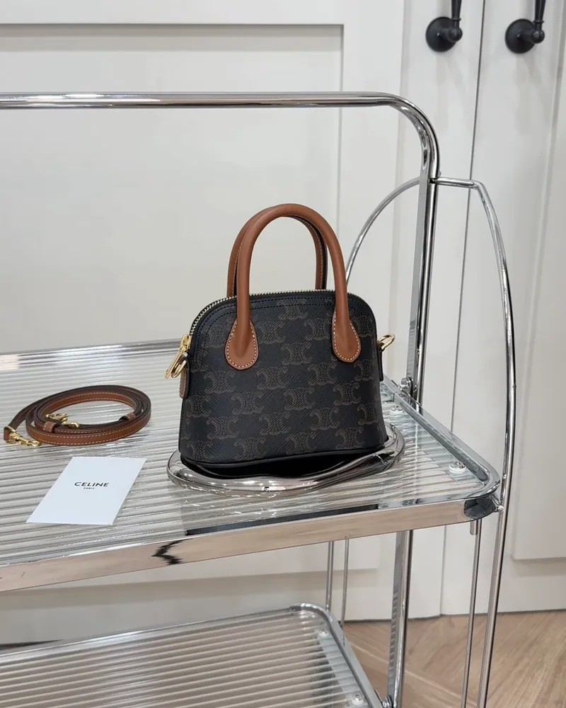 【CELINE】HONORINE 迷你貝殼包 深老花