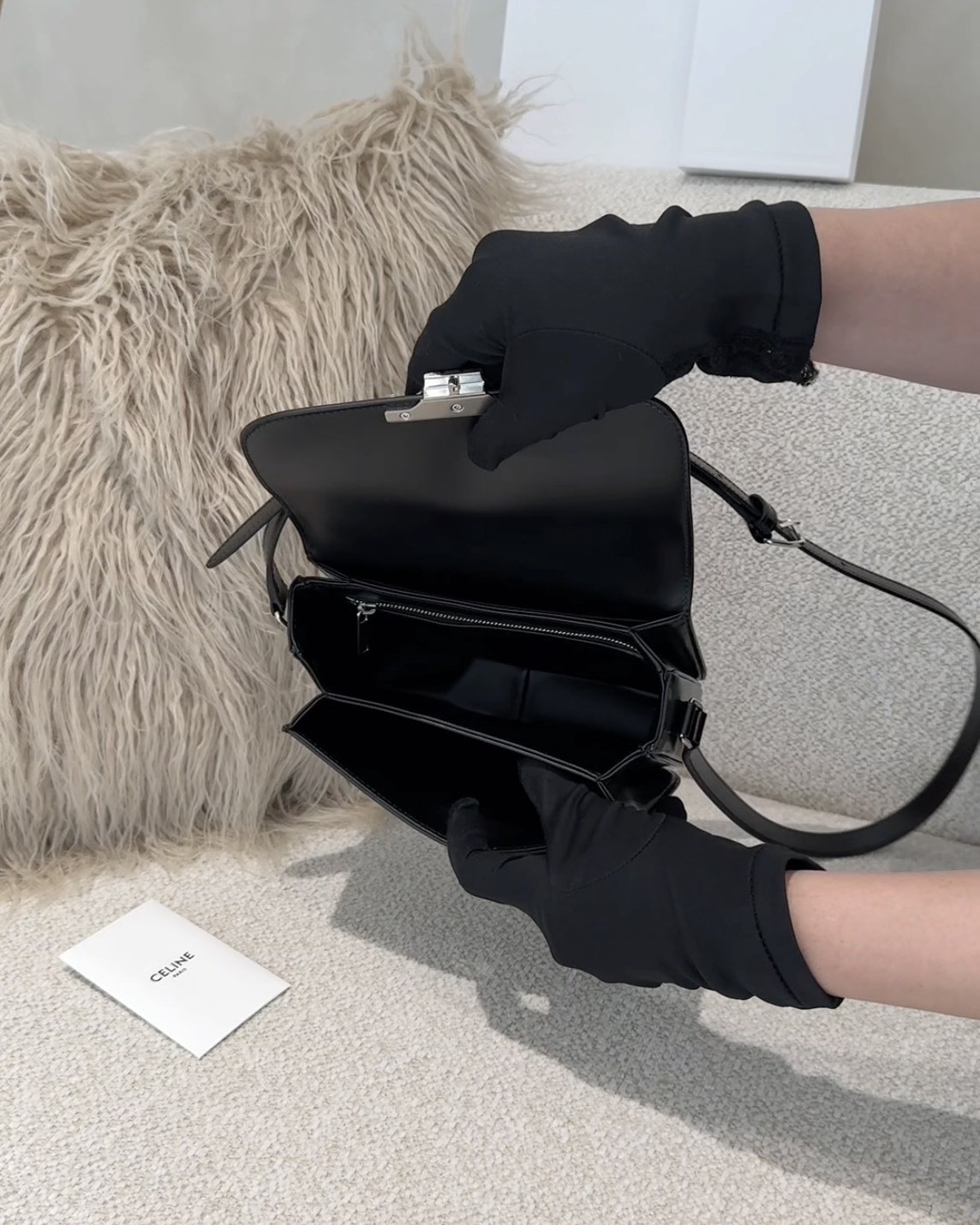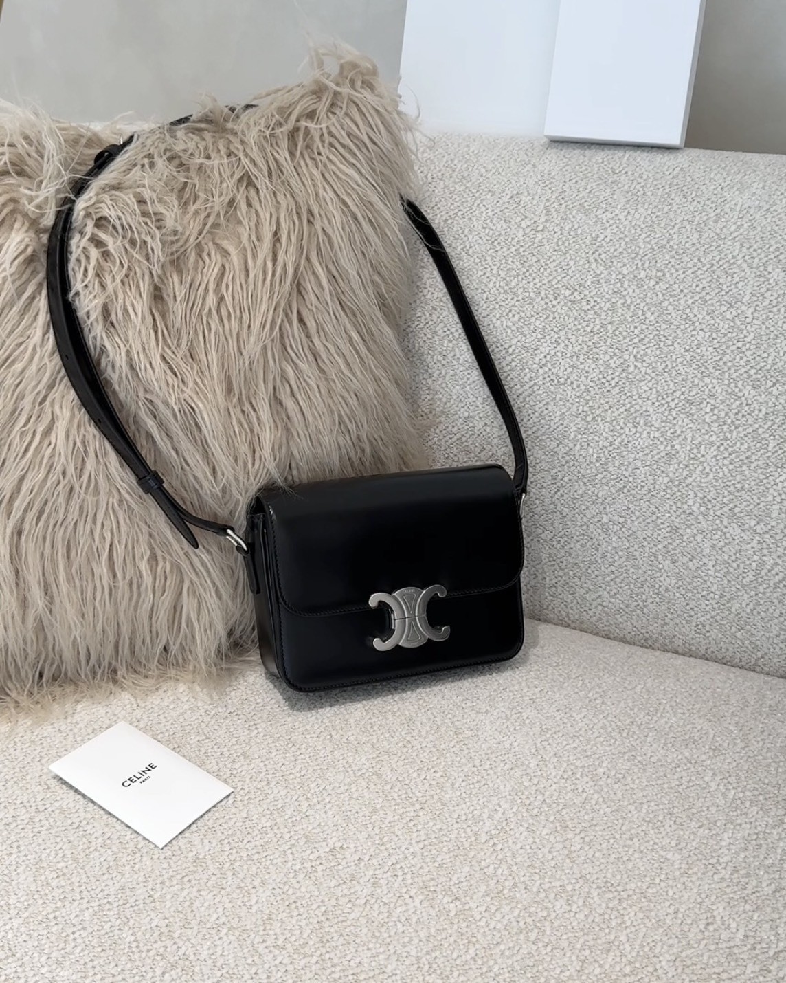 【CELINE】TEEN 凱旋門斜跨包 黑銀
