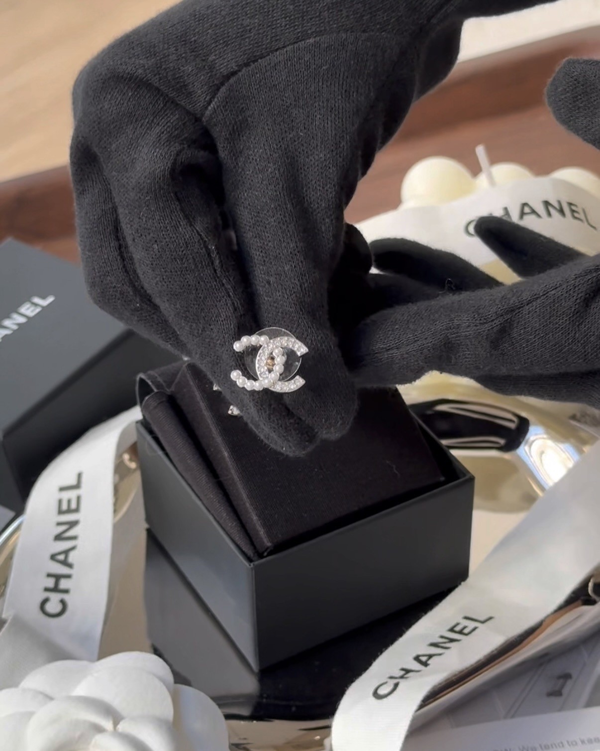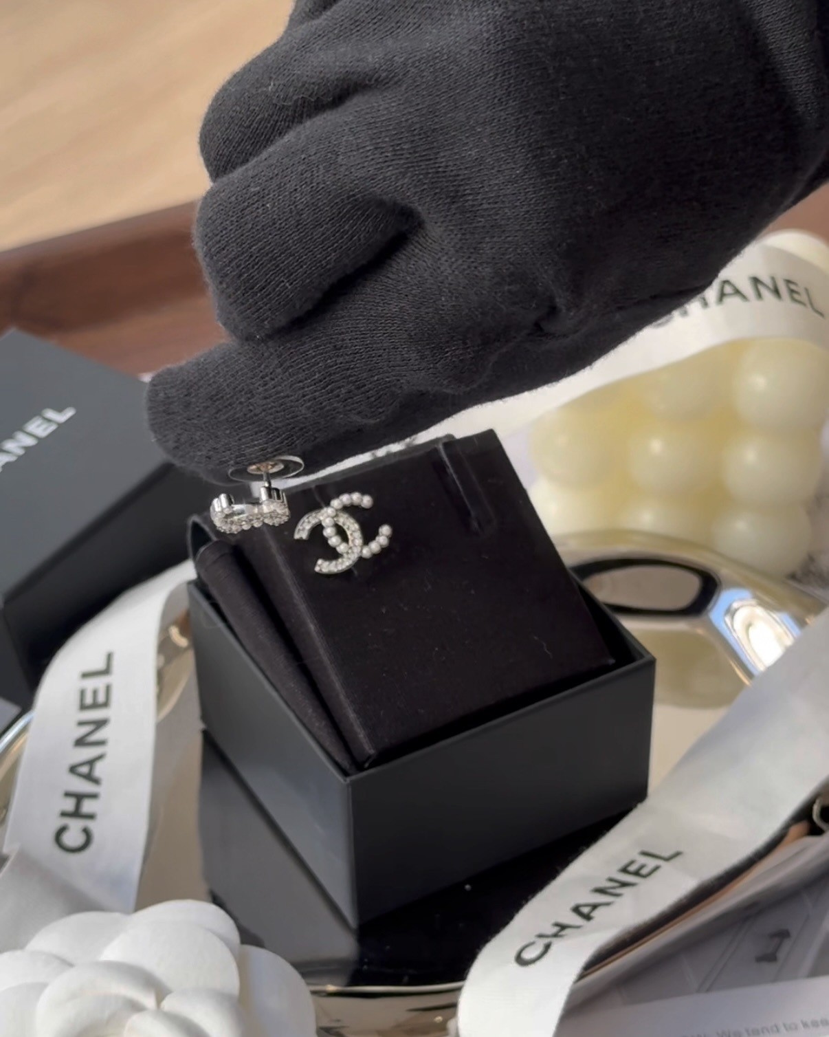 【CHANEL】半鑽半珍珠雙C耳環