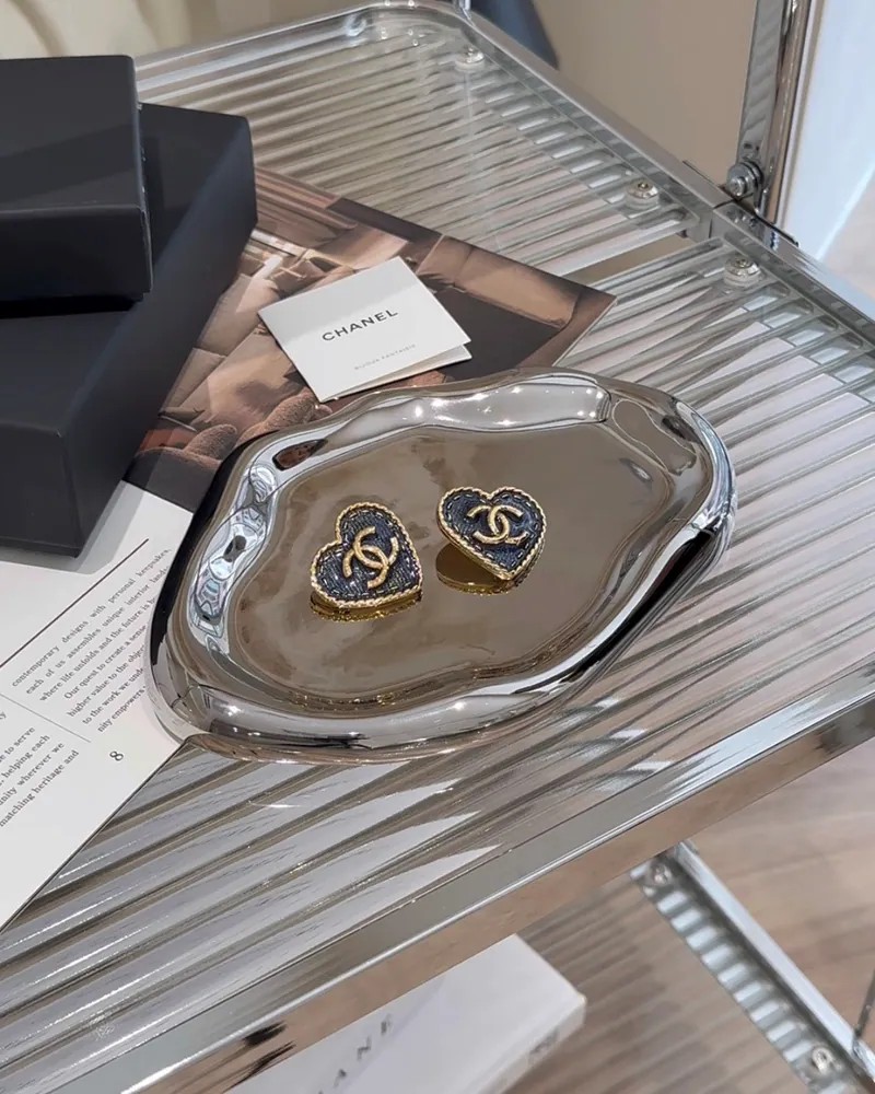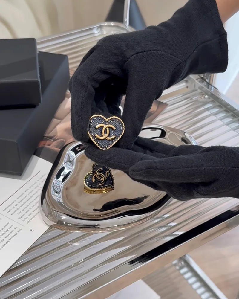 【CHANEL】大愛心耳夾 牛仔藍色
