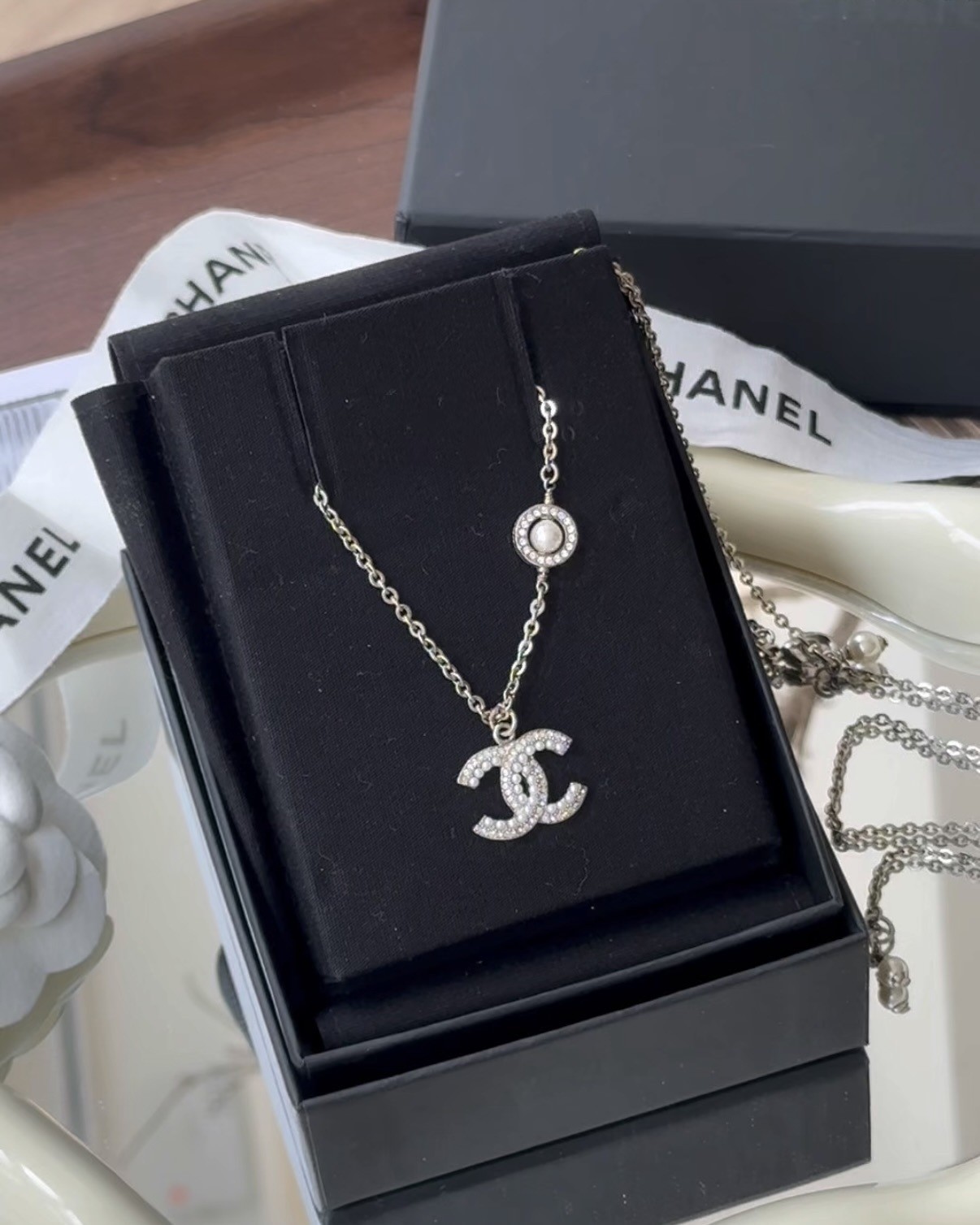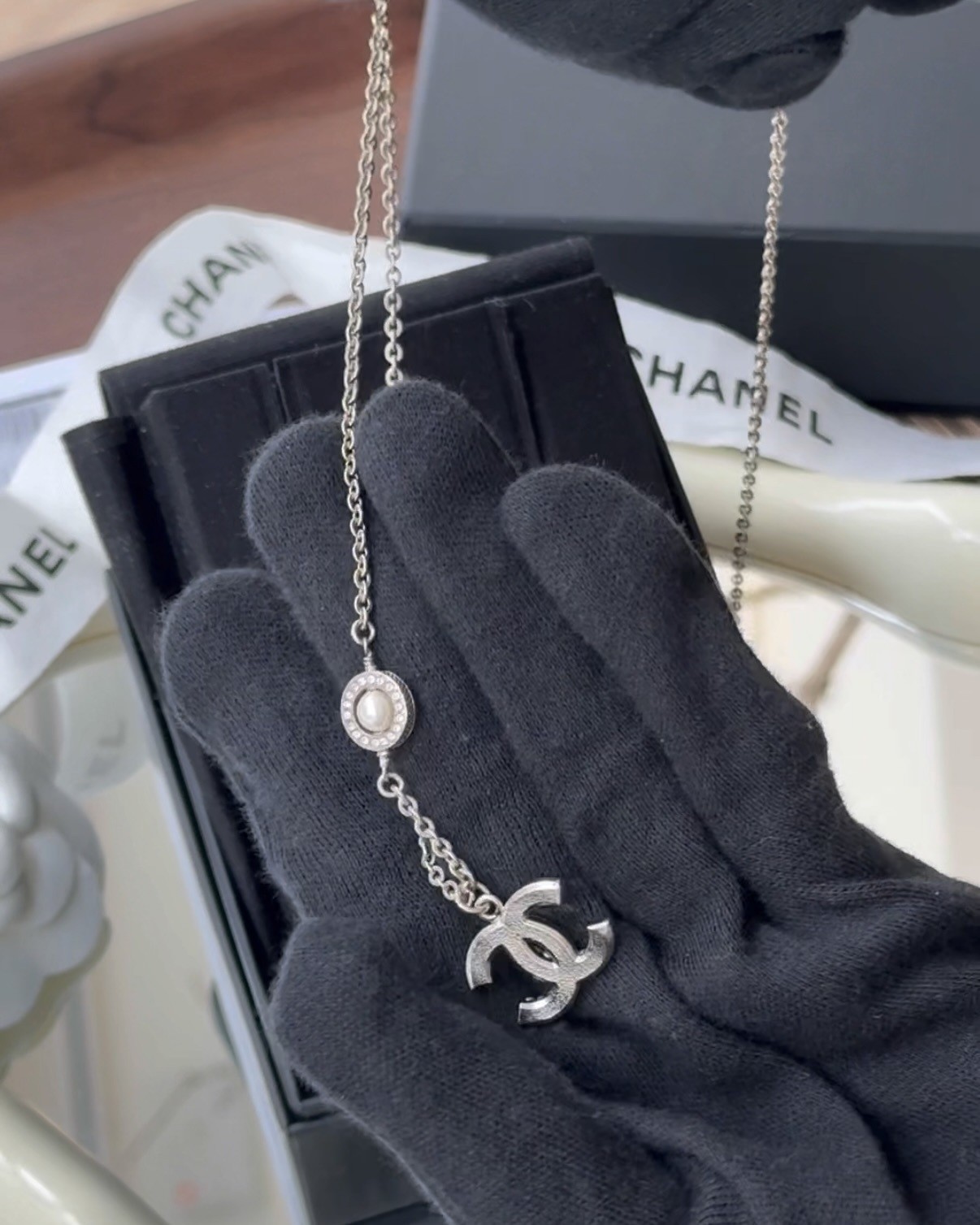 【CHANEL】珍珠水鑽項鏈 (可調整兩段式)