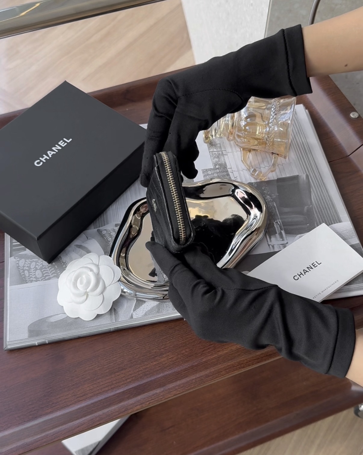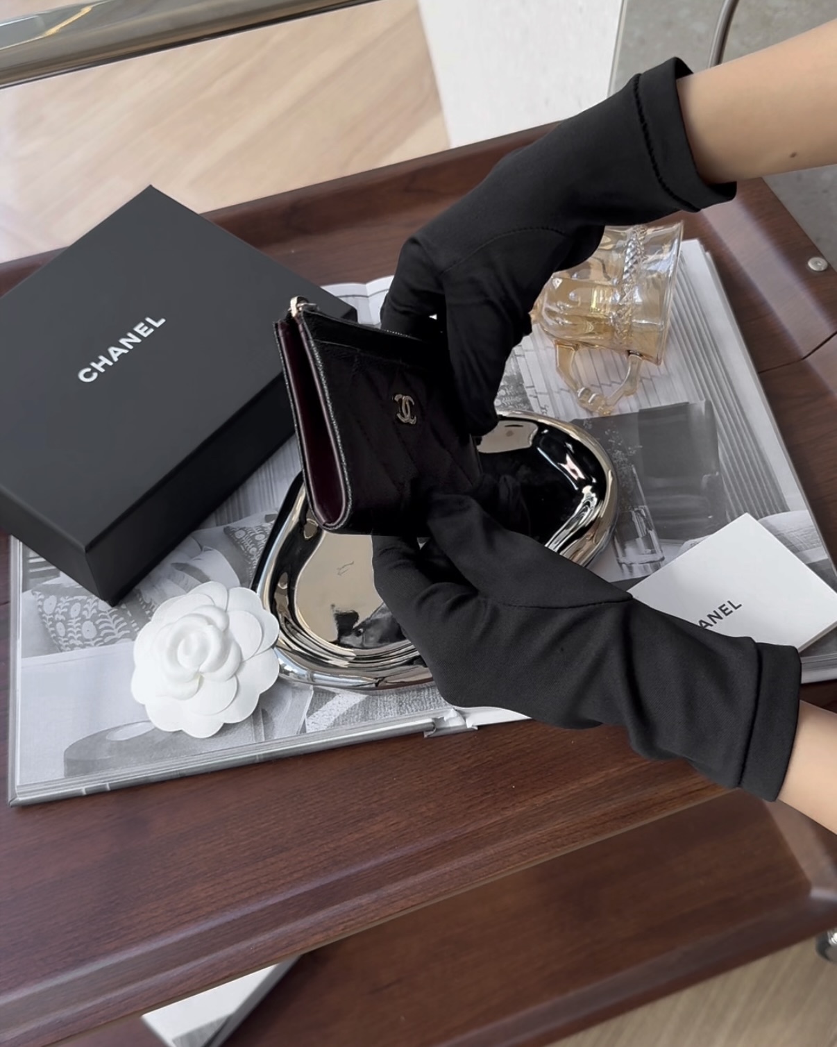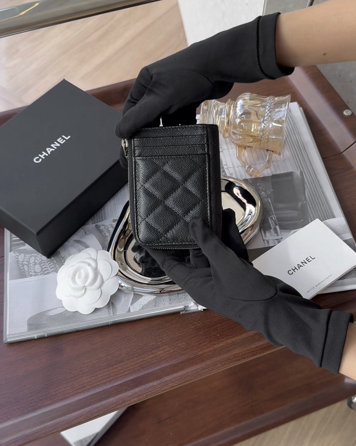 【CHANEL】荔枝L型零錢卡包 短款 黑色