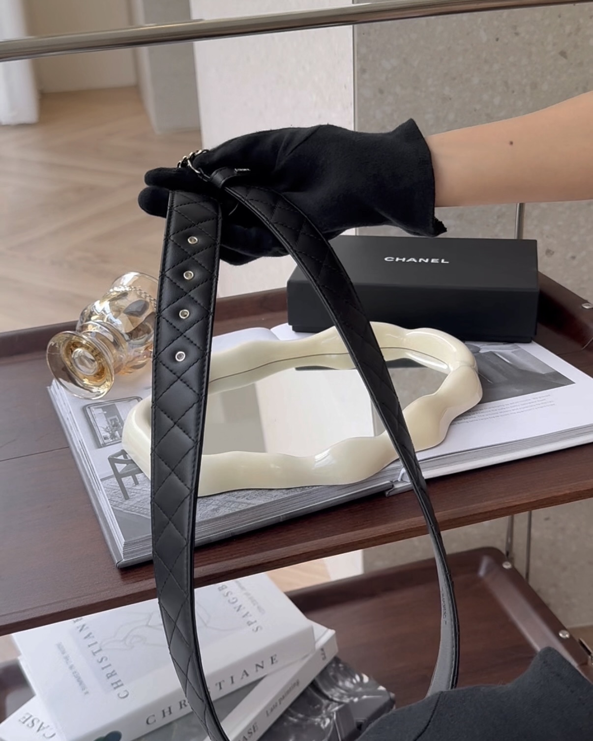 【CHANEL】菱格皮穿鍊皮帶 黑色