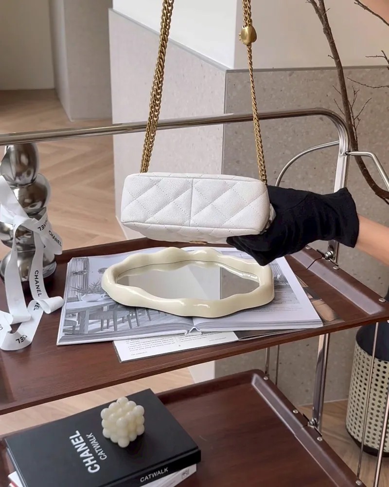 【CHANEL】金球MINI HOBO 白色