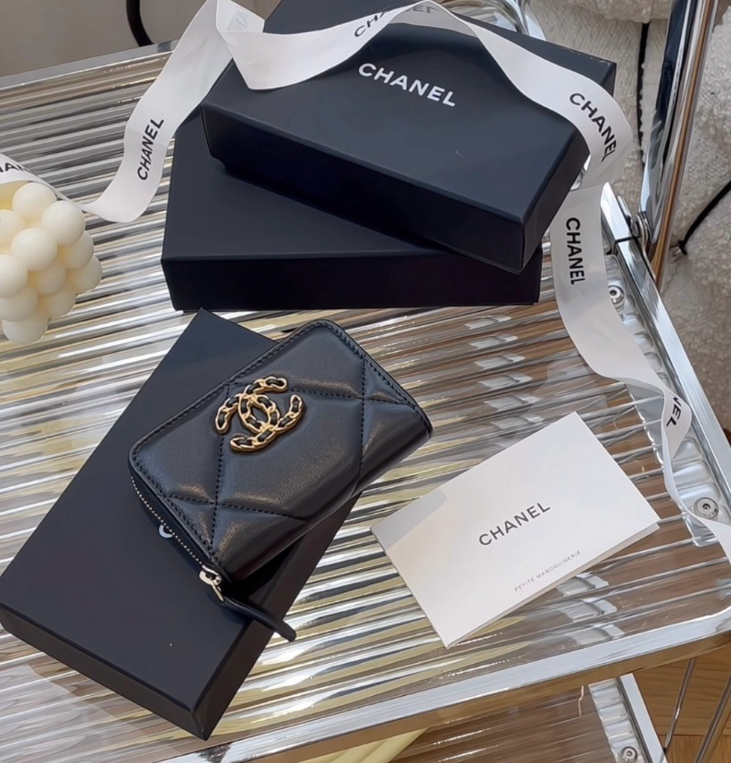 【CHANEL】19拉鍊內三層零錢卡包 黑色