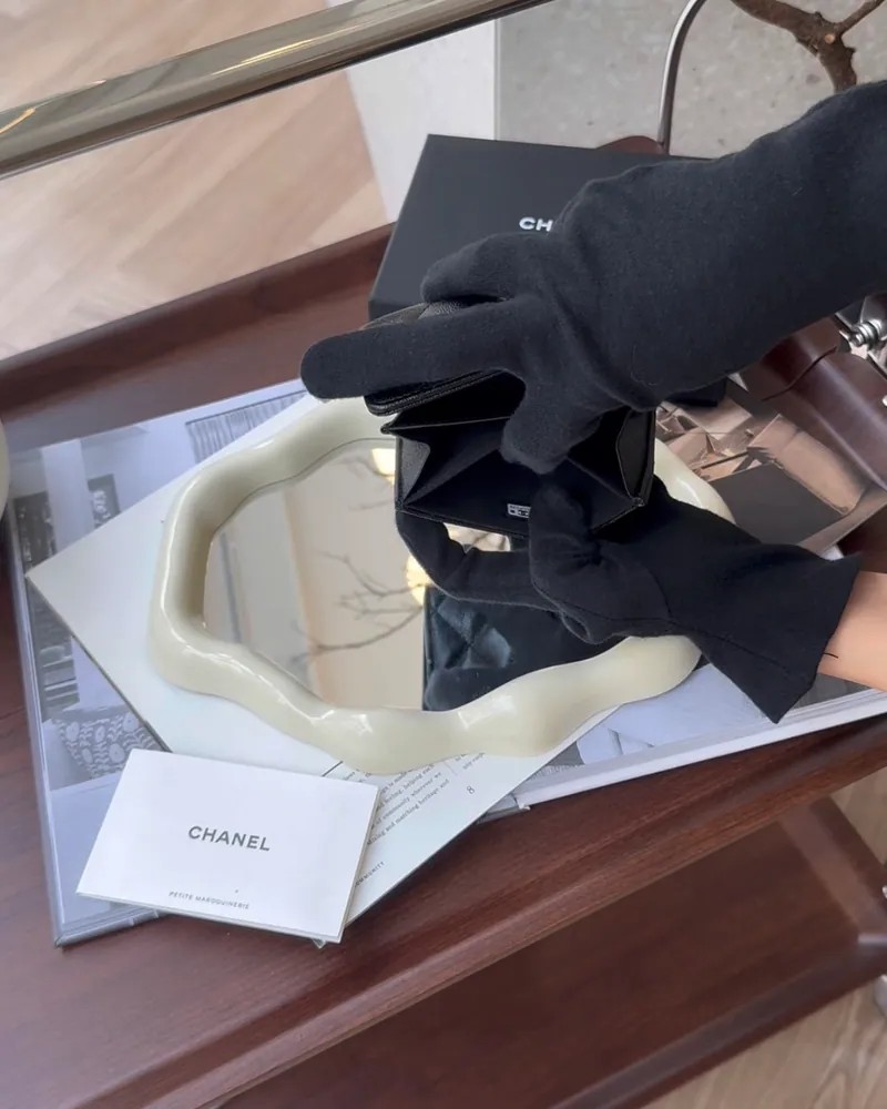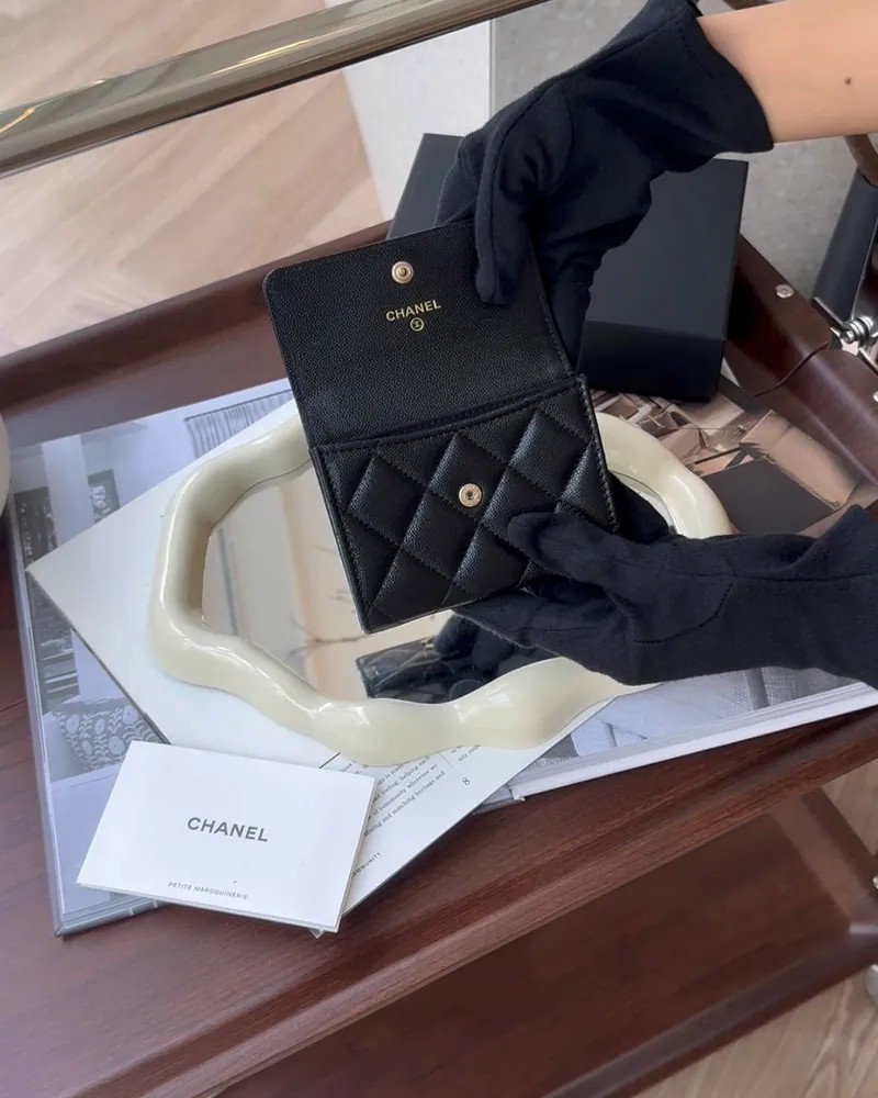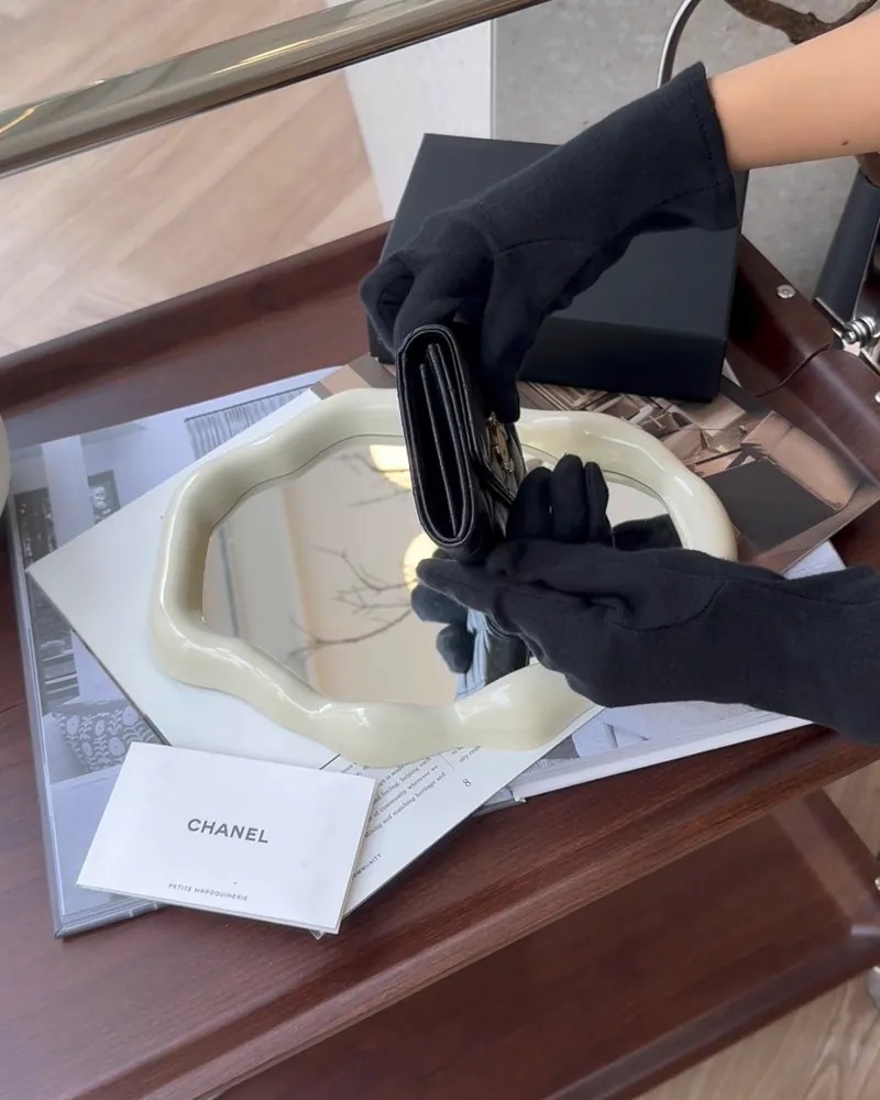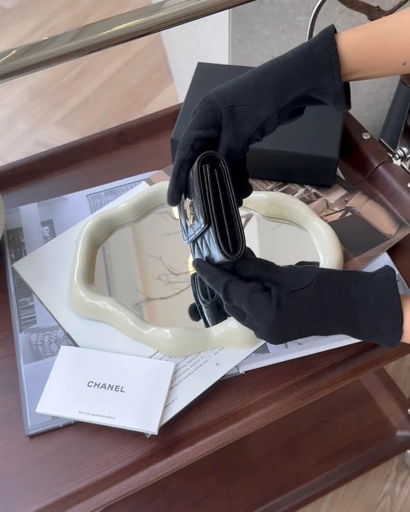 【CHANEL】22B 荔枝雙層卡包 黑金