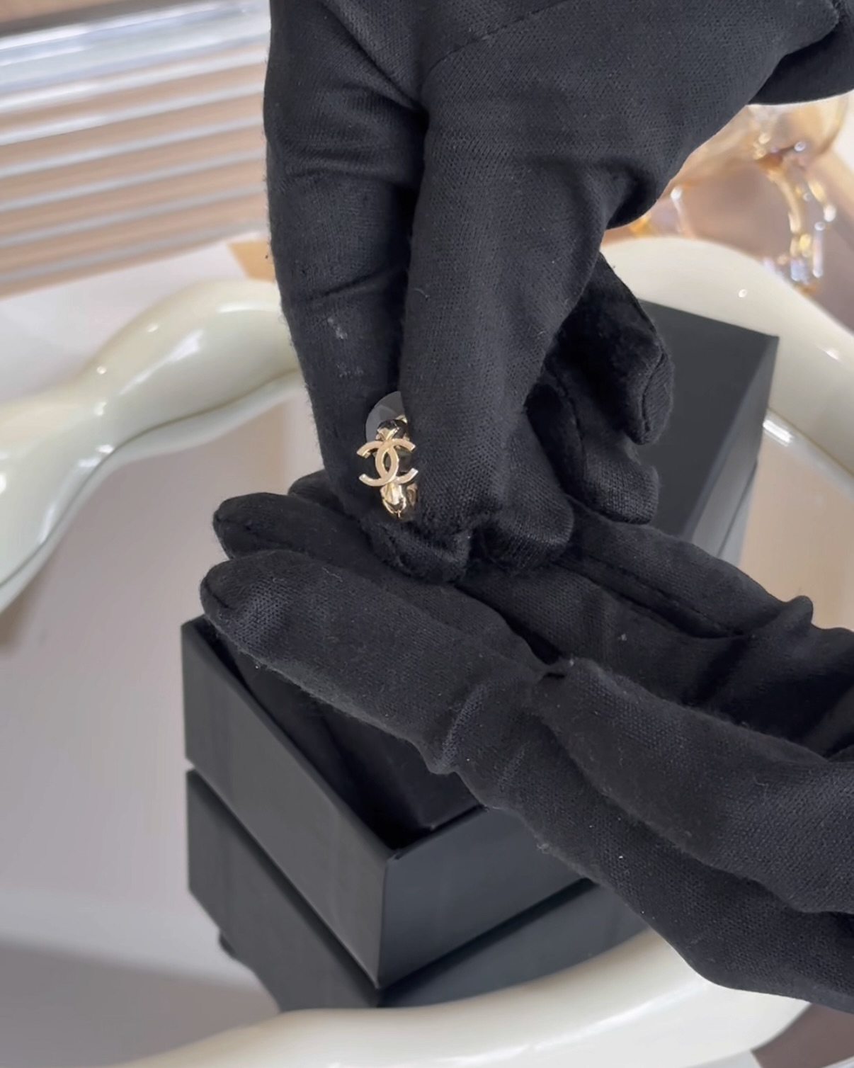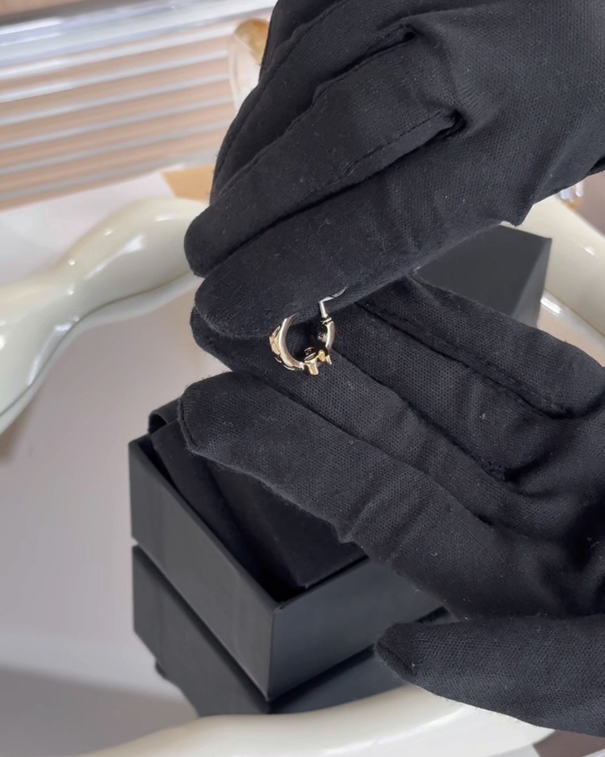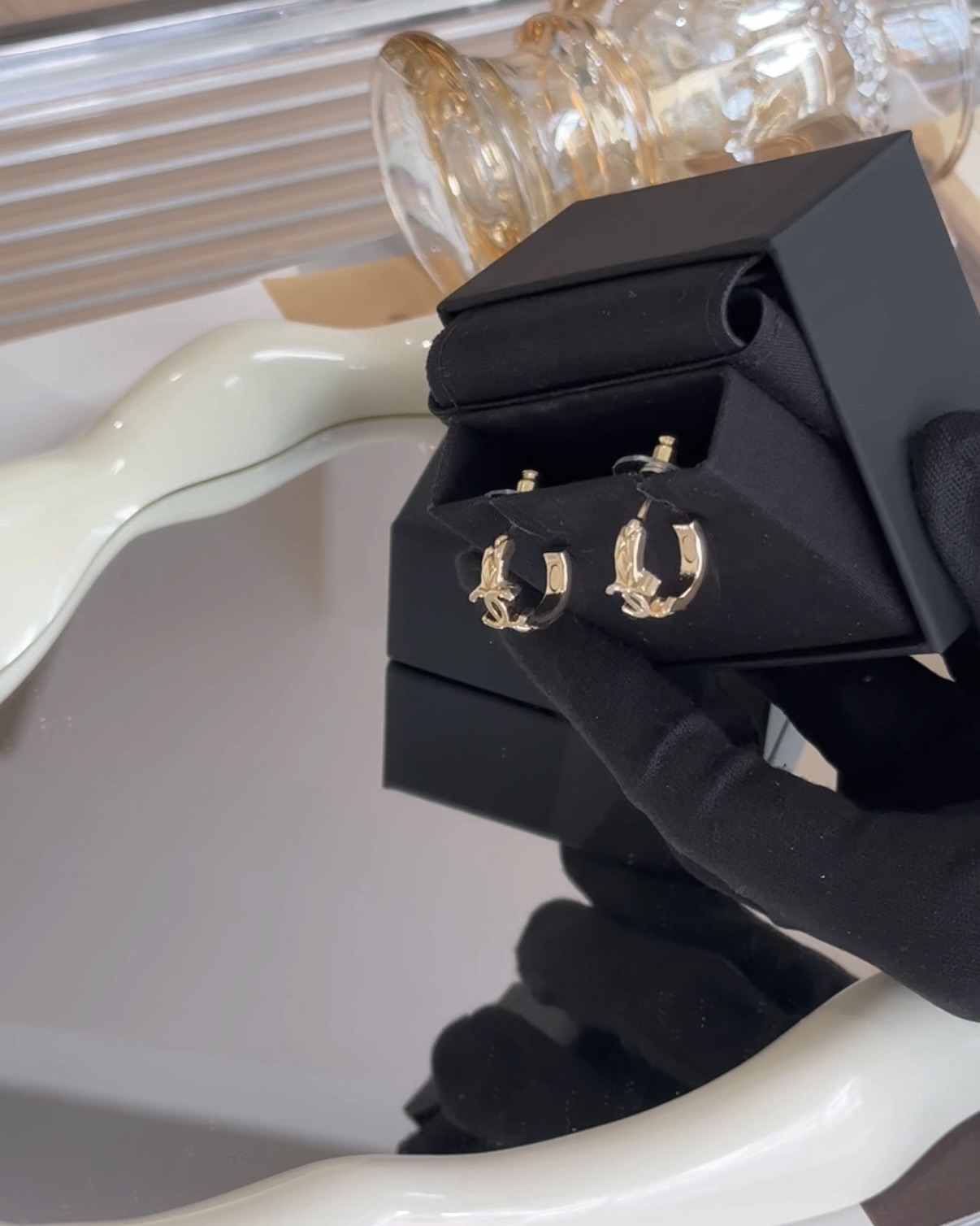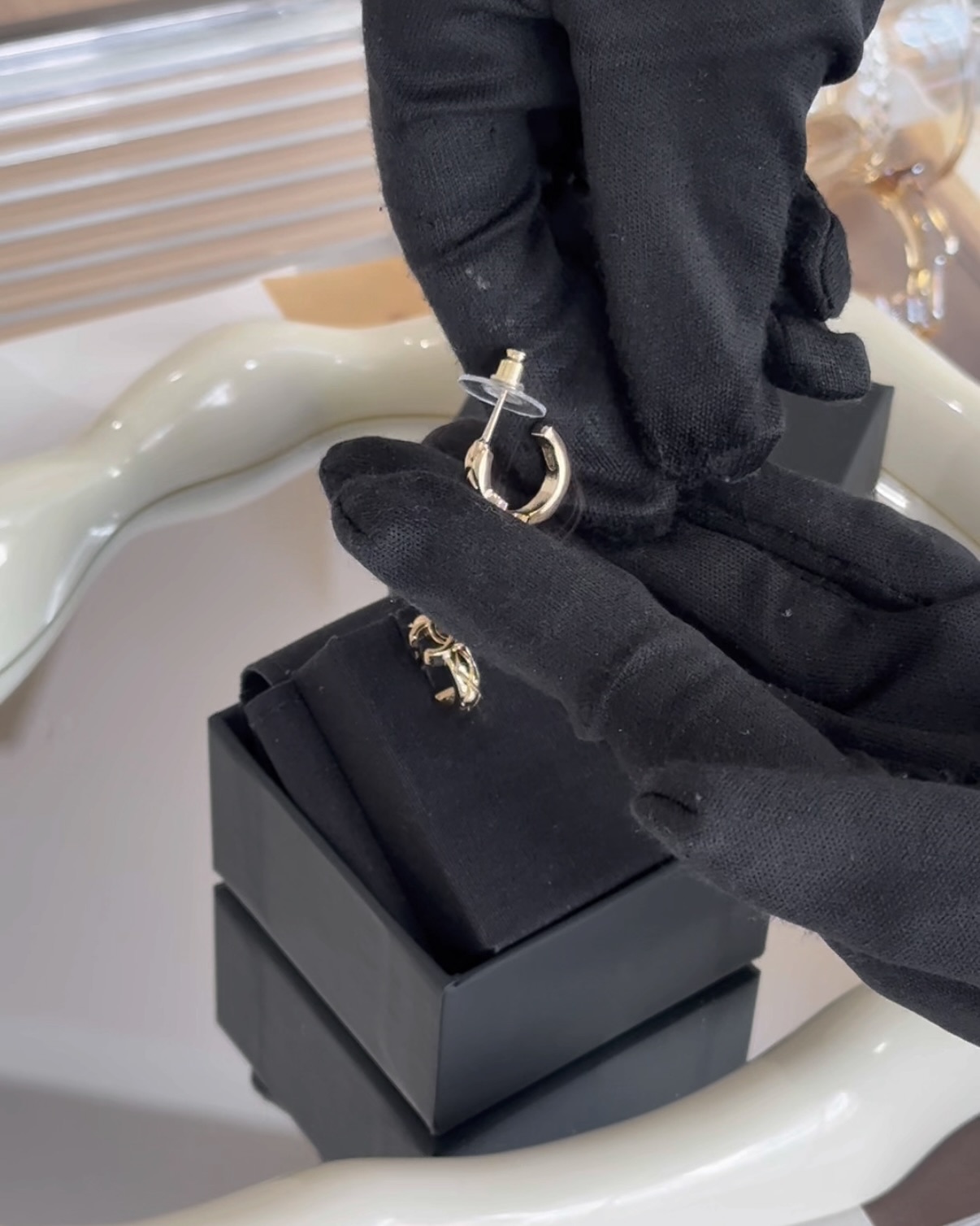 【CHANEL】26P 菱格紋小LOGO耳環 金色