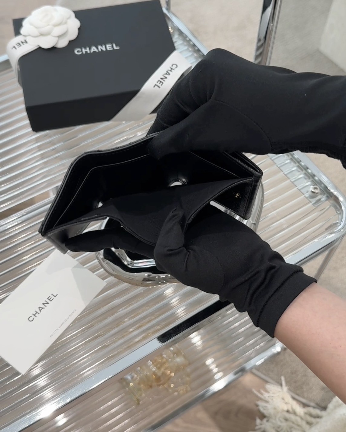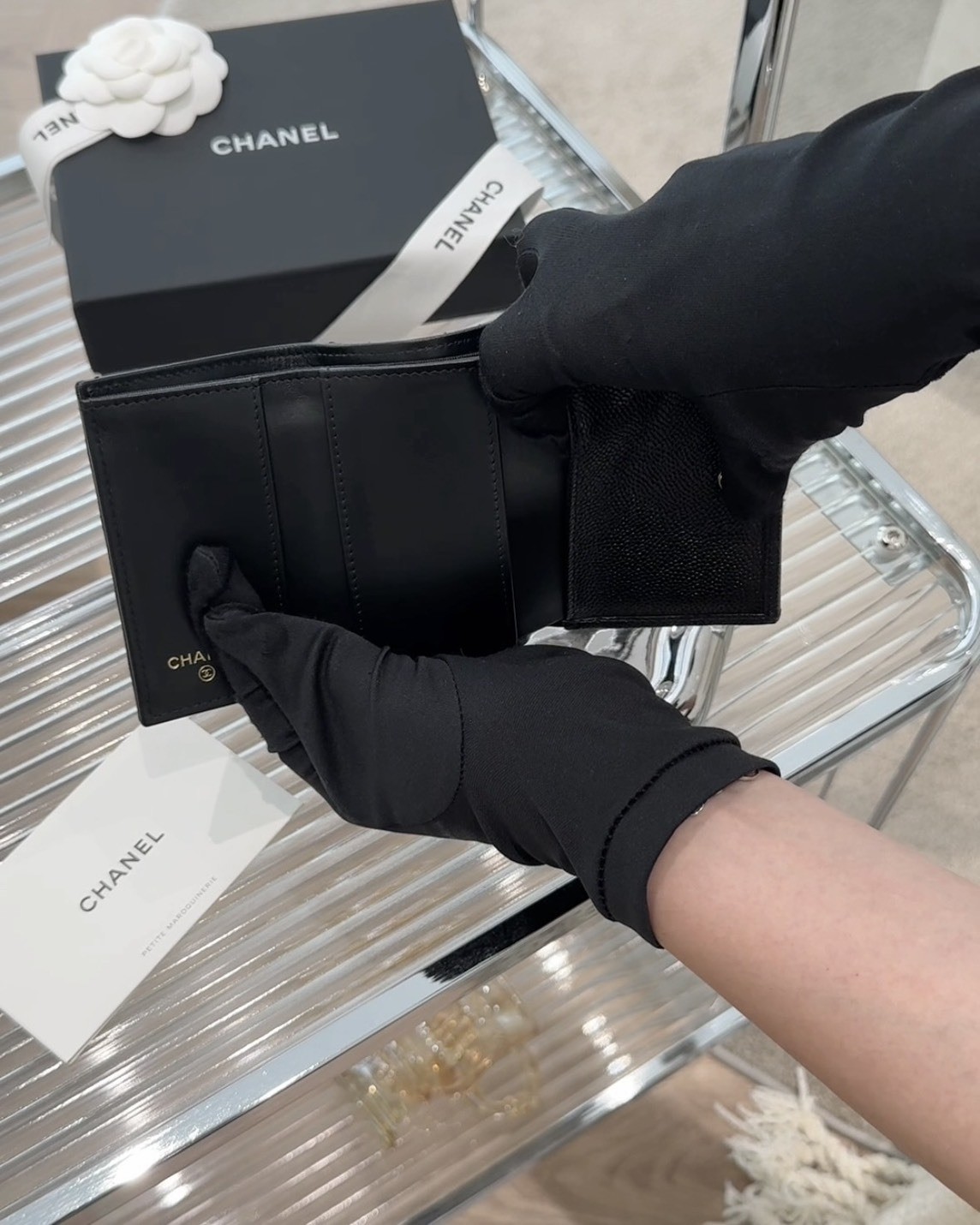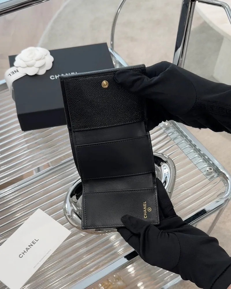 【CHANEL】BOY 荔枝迷你三折短夾 黑金