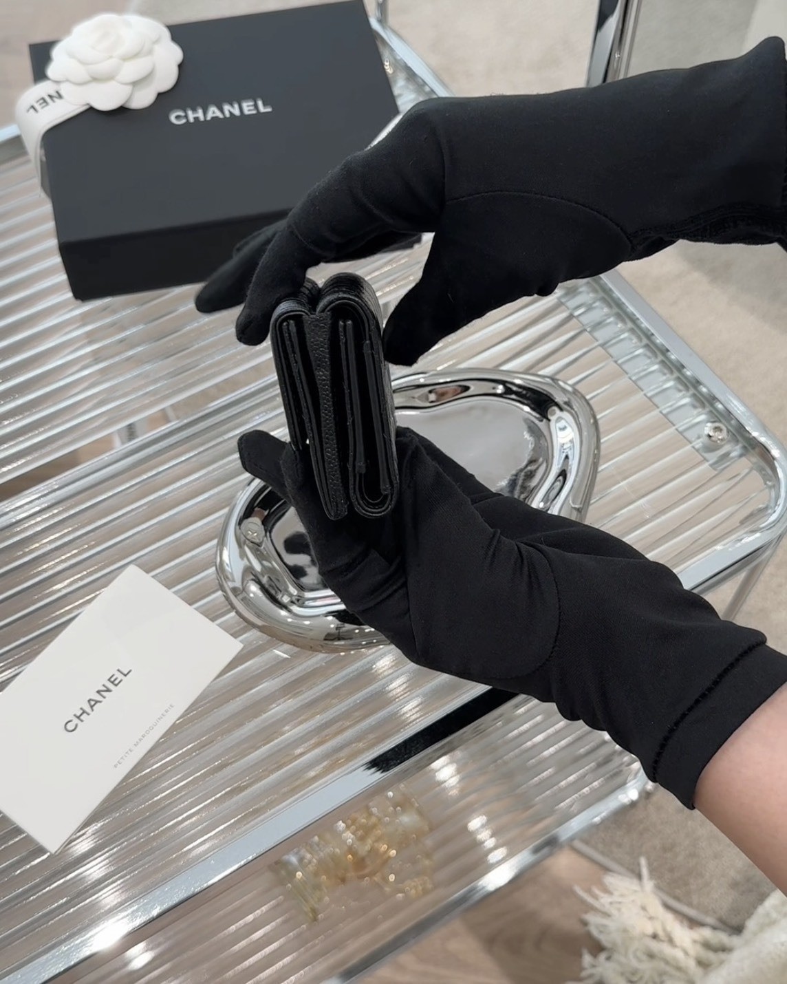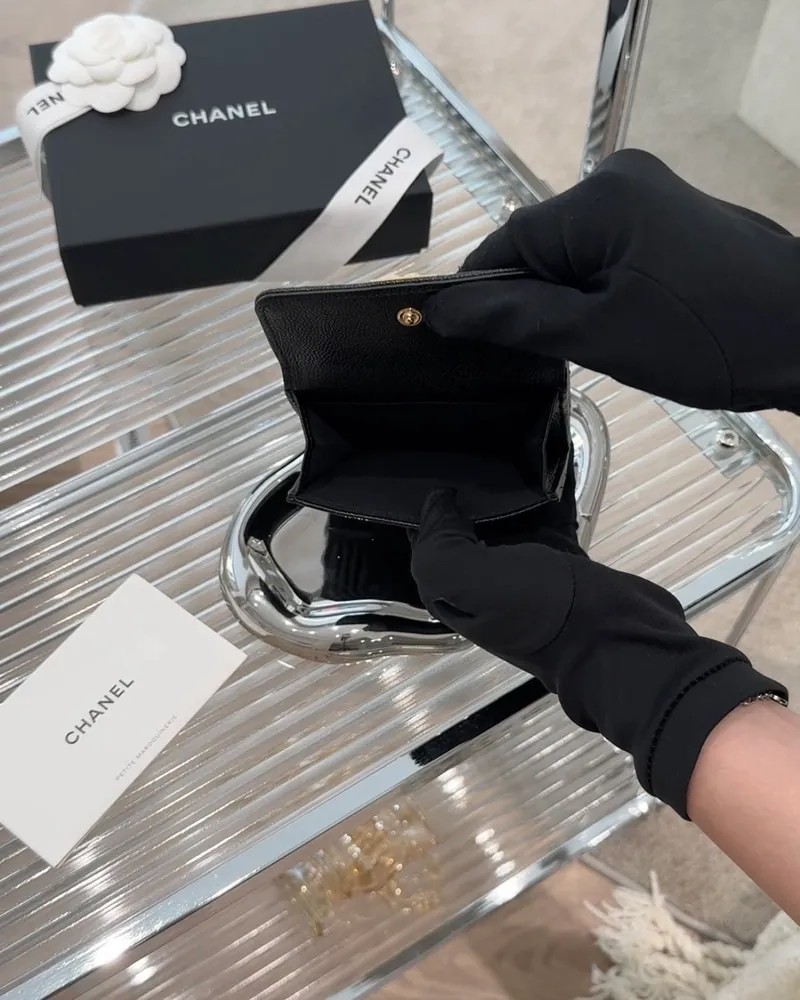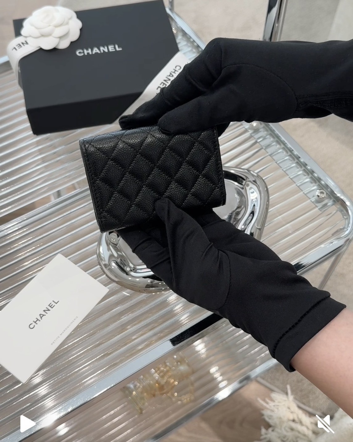 【CHANEL】BOY 荔枝迷你三折短夾 黑金