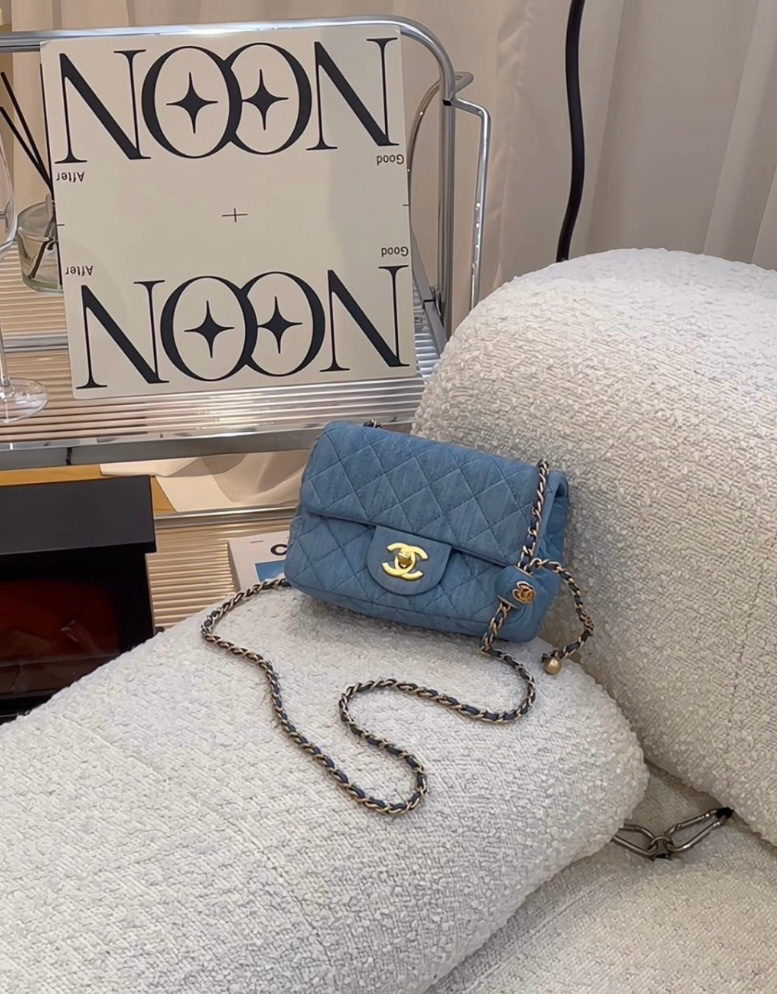【CHANEL】CF17牛仔單寧金球方胖 藍色