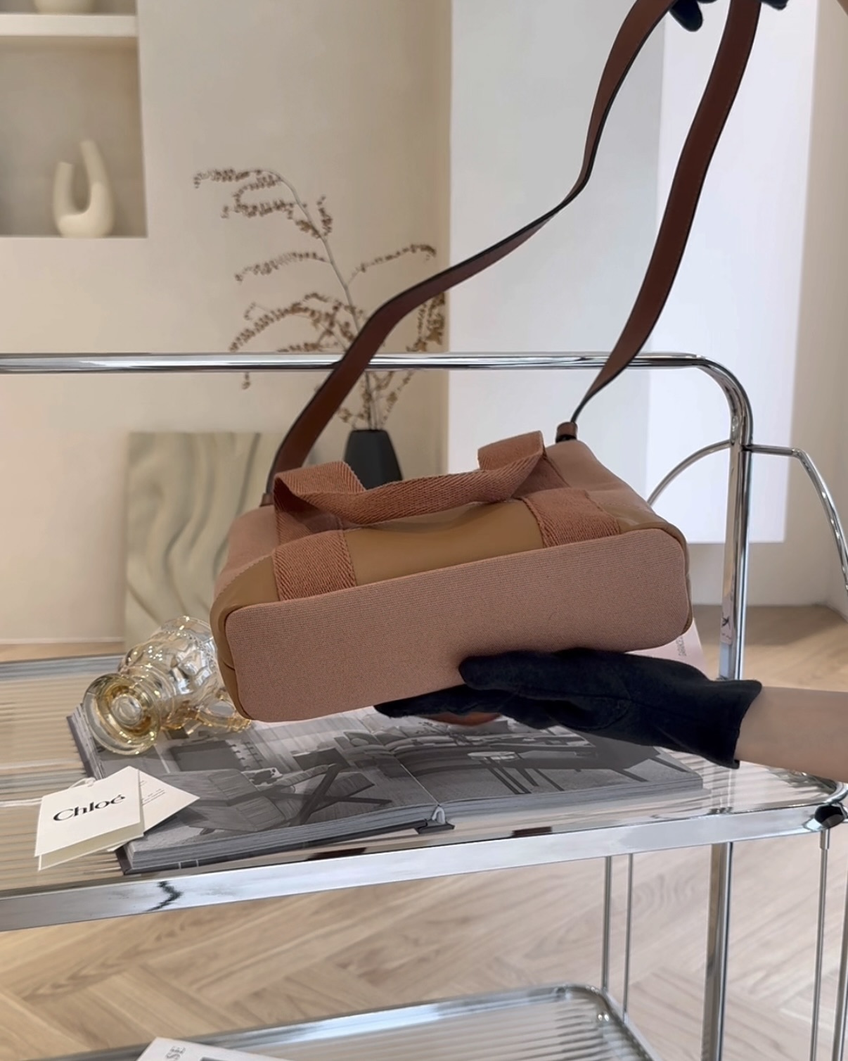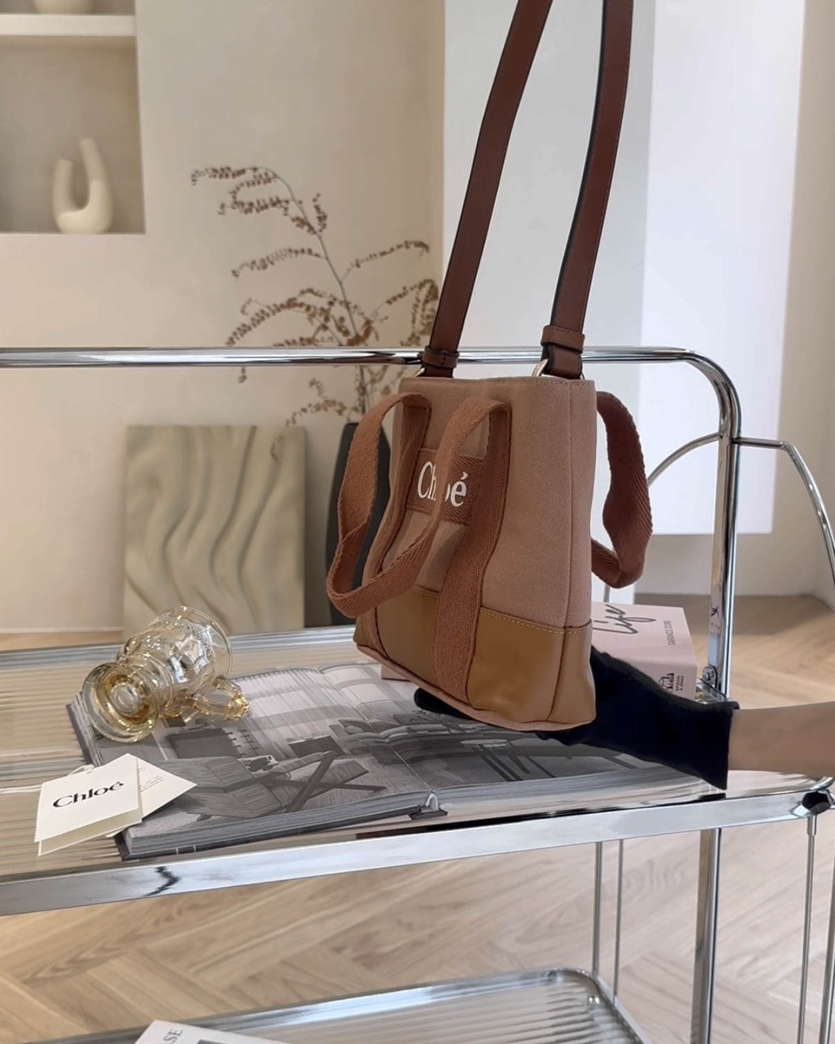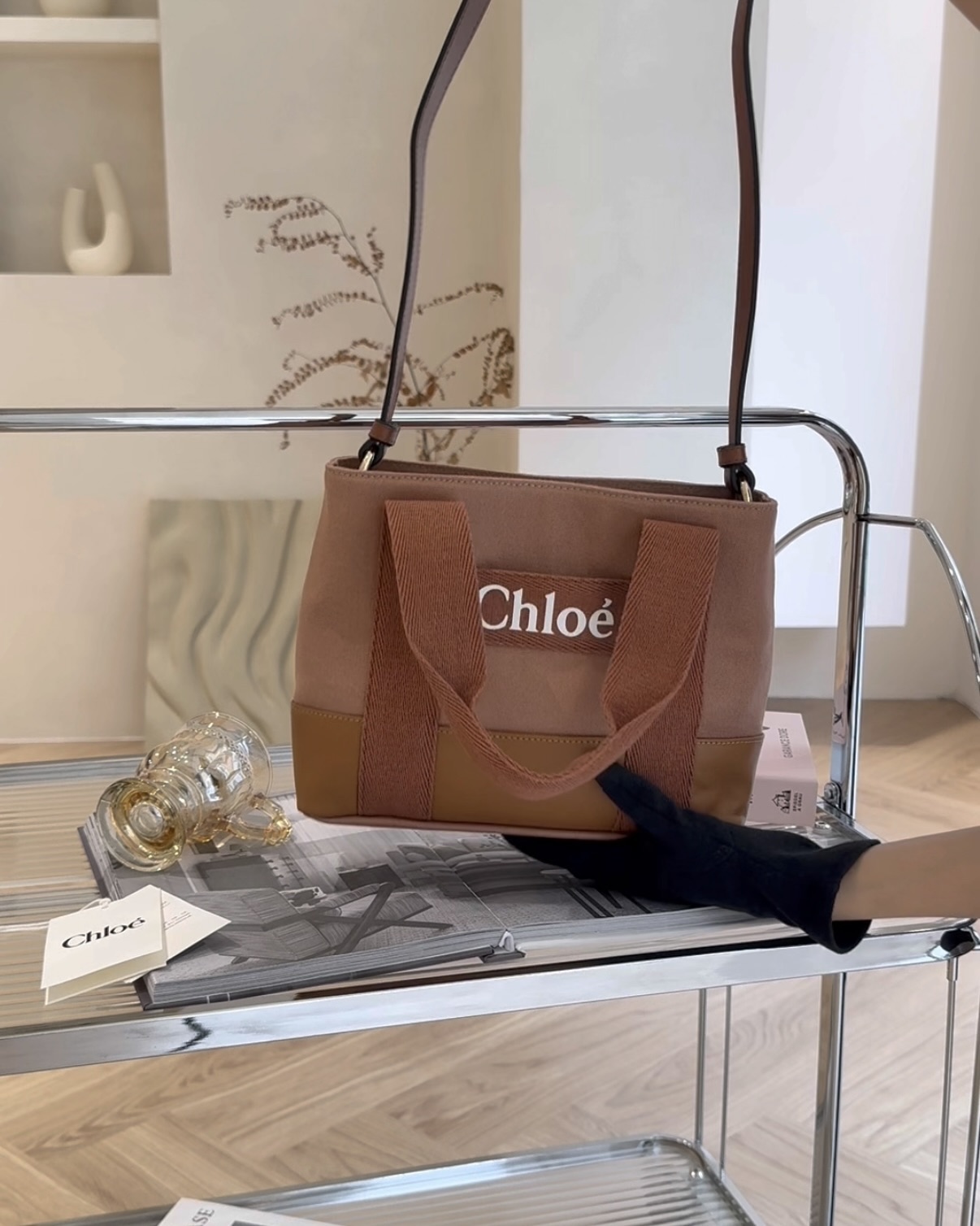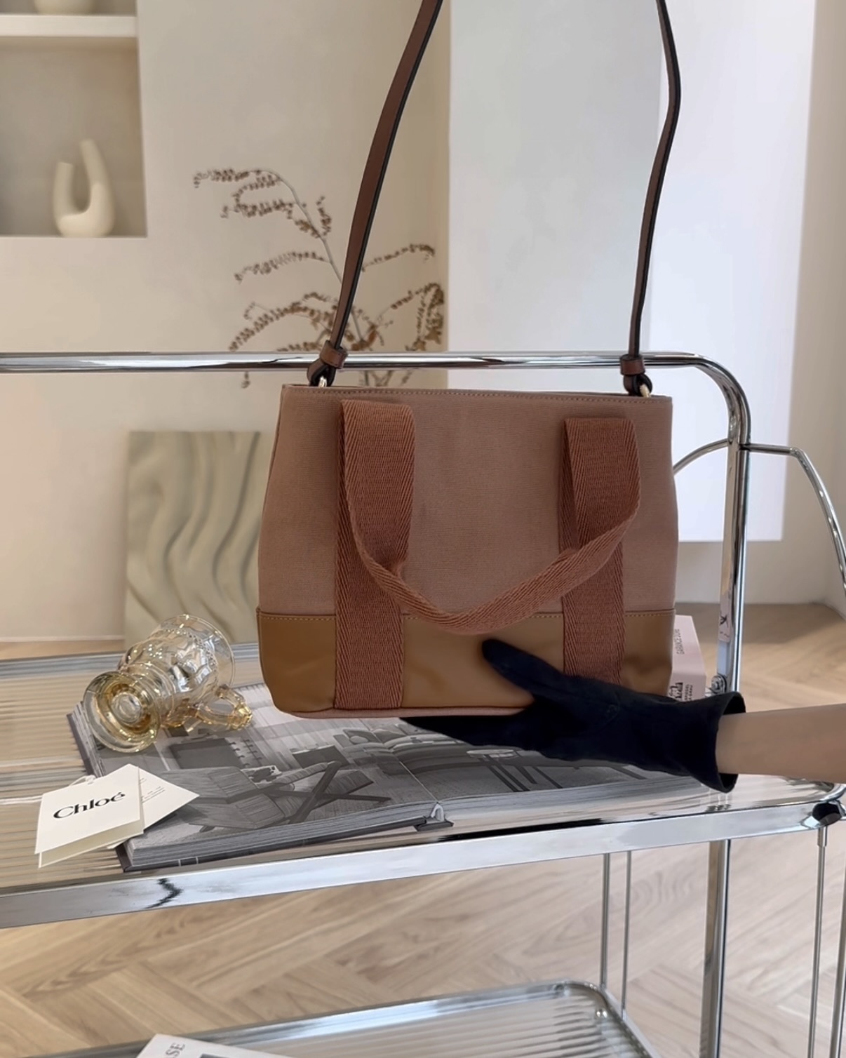 【CHLOE】印花拼接托特包 紅磚色