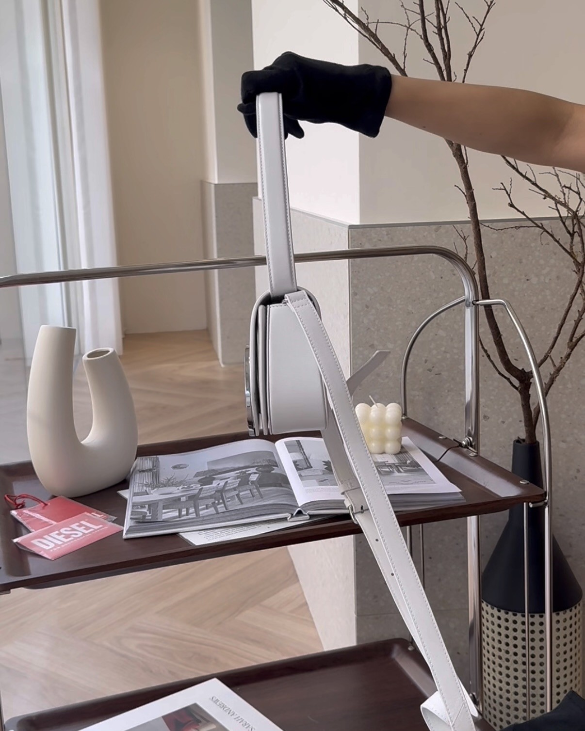【DIESEL】1DR 牛皮叮噹包 白色