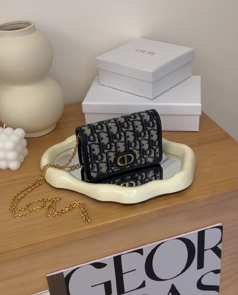 【DIOR】蒙田 NANO 鍊條包 藍色老花