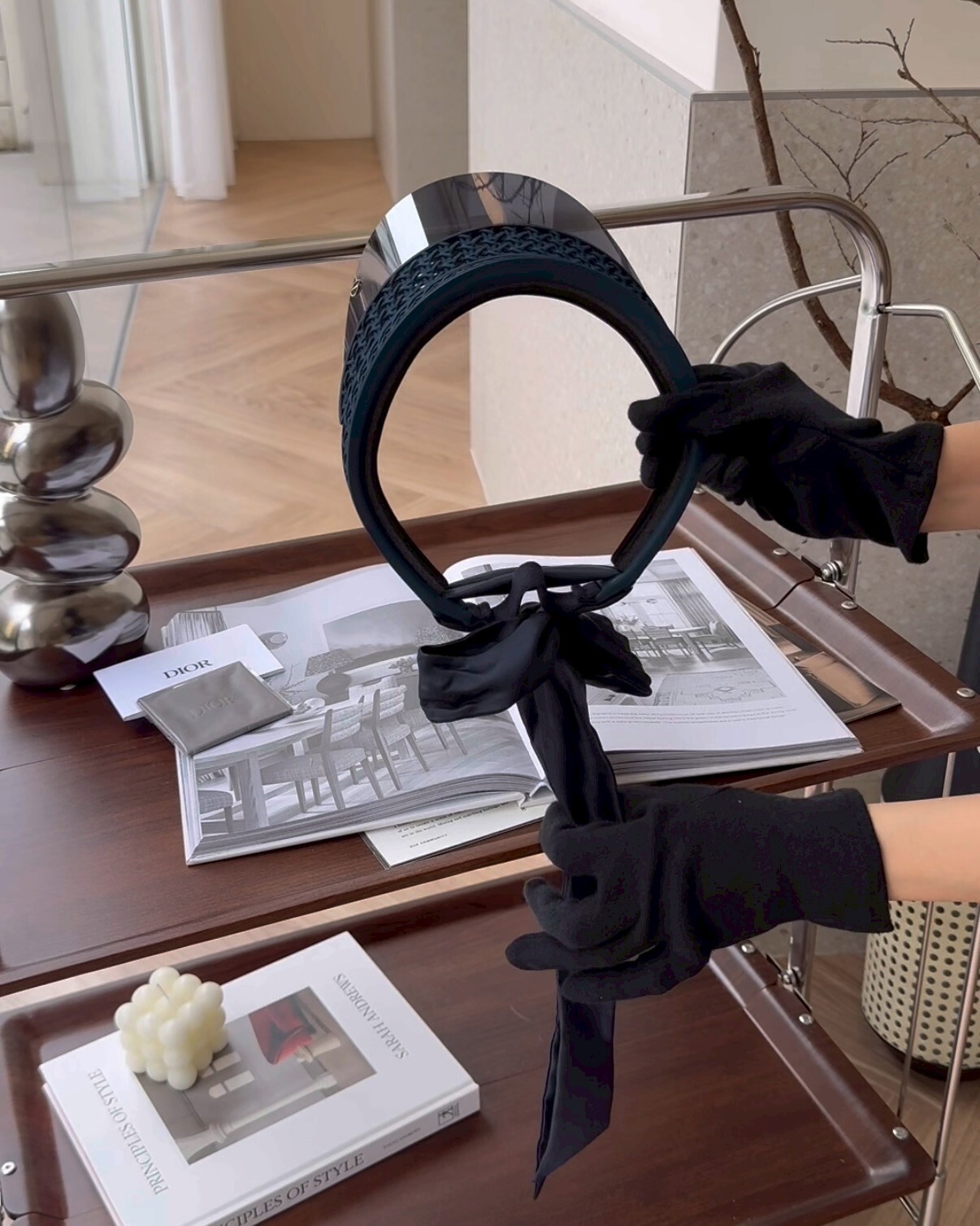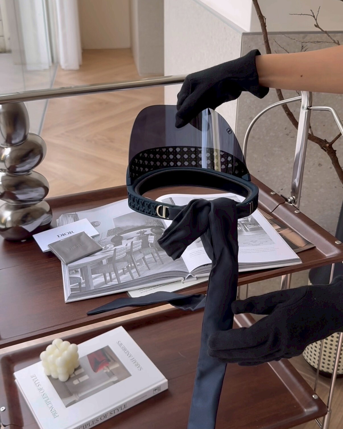 【DIOR】 草編遮陽帽 海軍藍