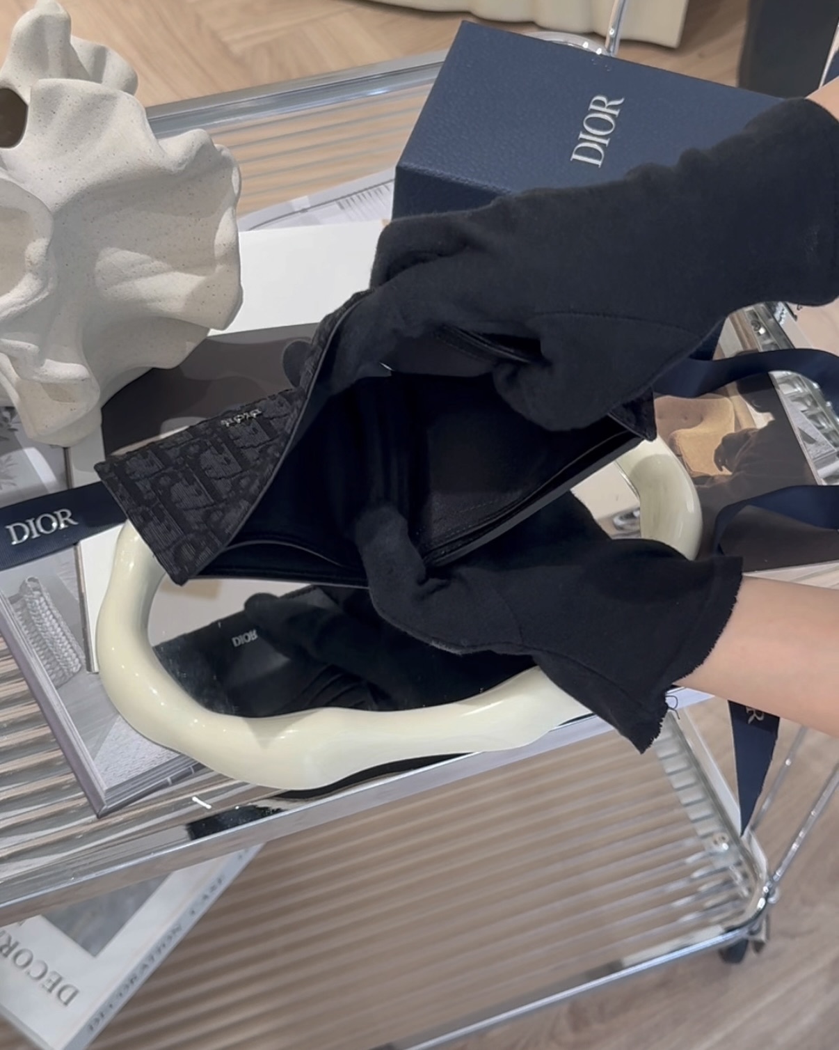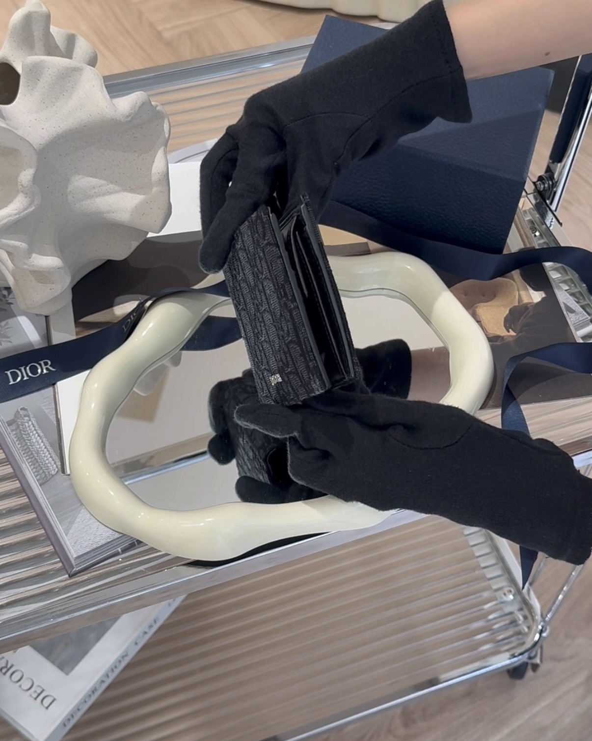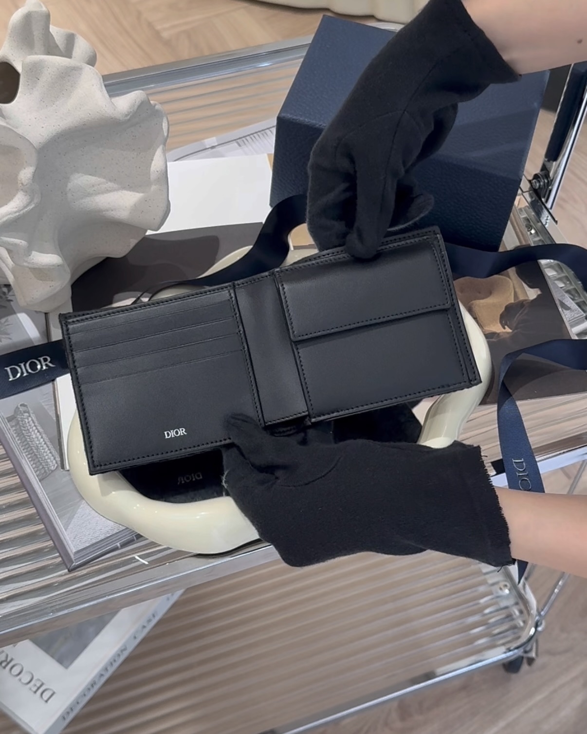 【DIOR】OBLIQUE 內零錢袋短夾 黑色老花