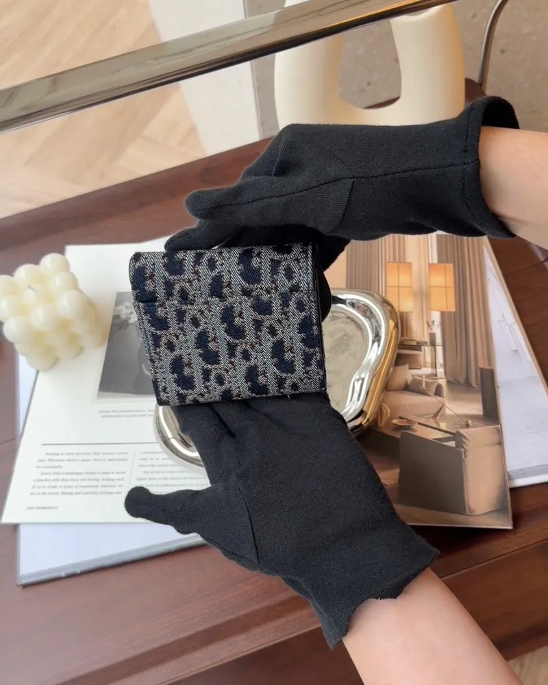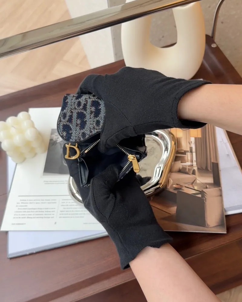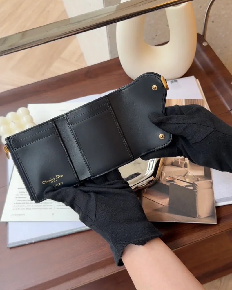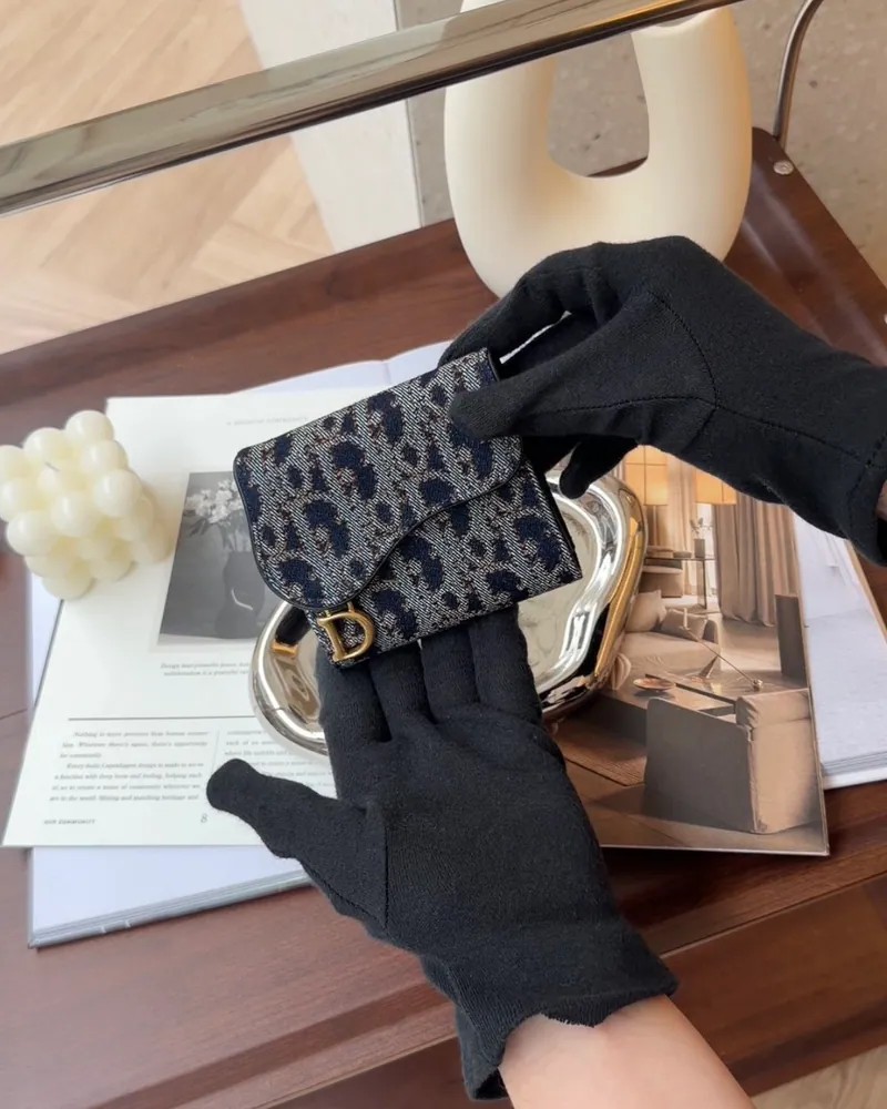 【DIOR】Saddle Lotus 三折短夾 藍色/菸草棕