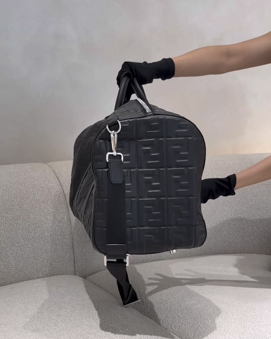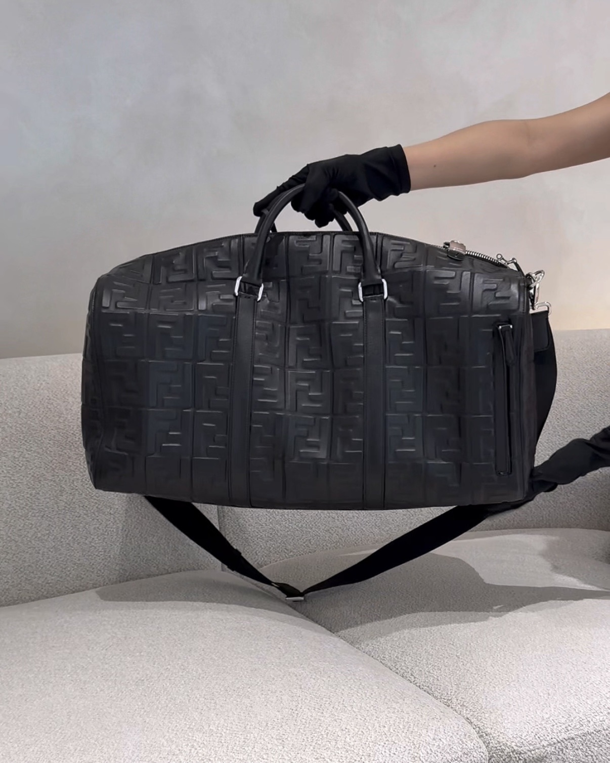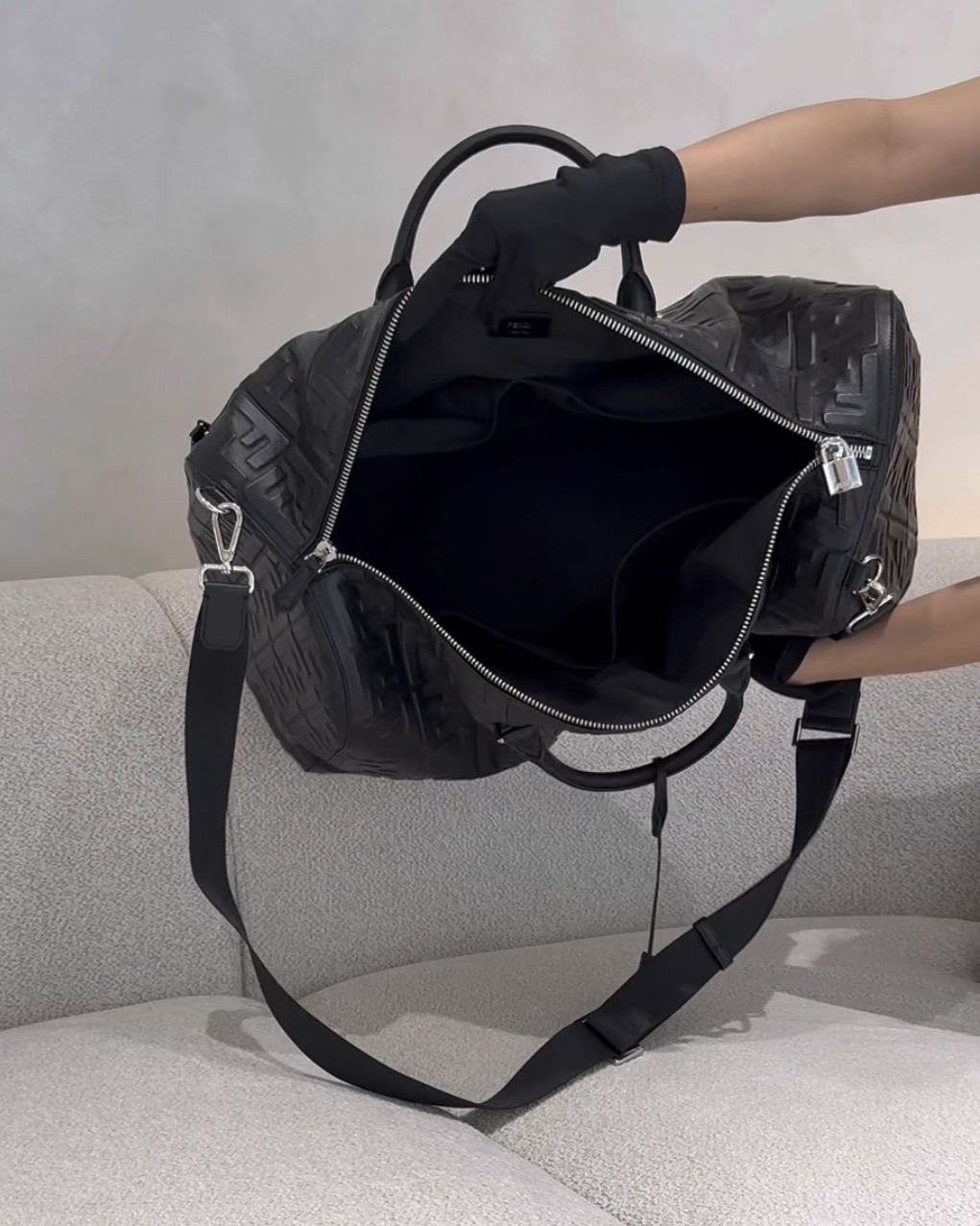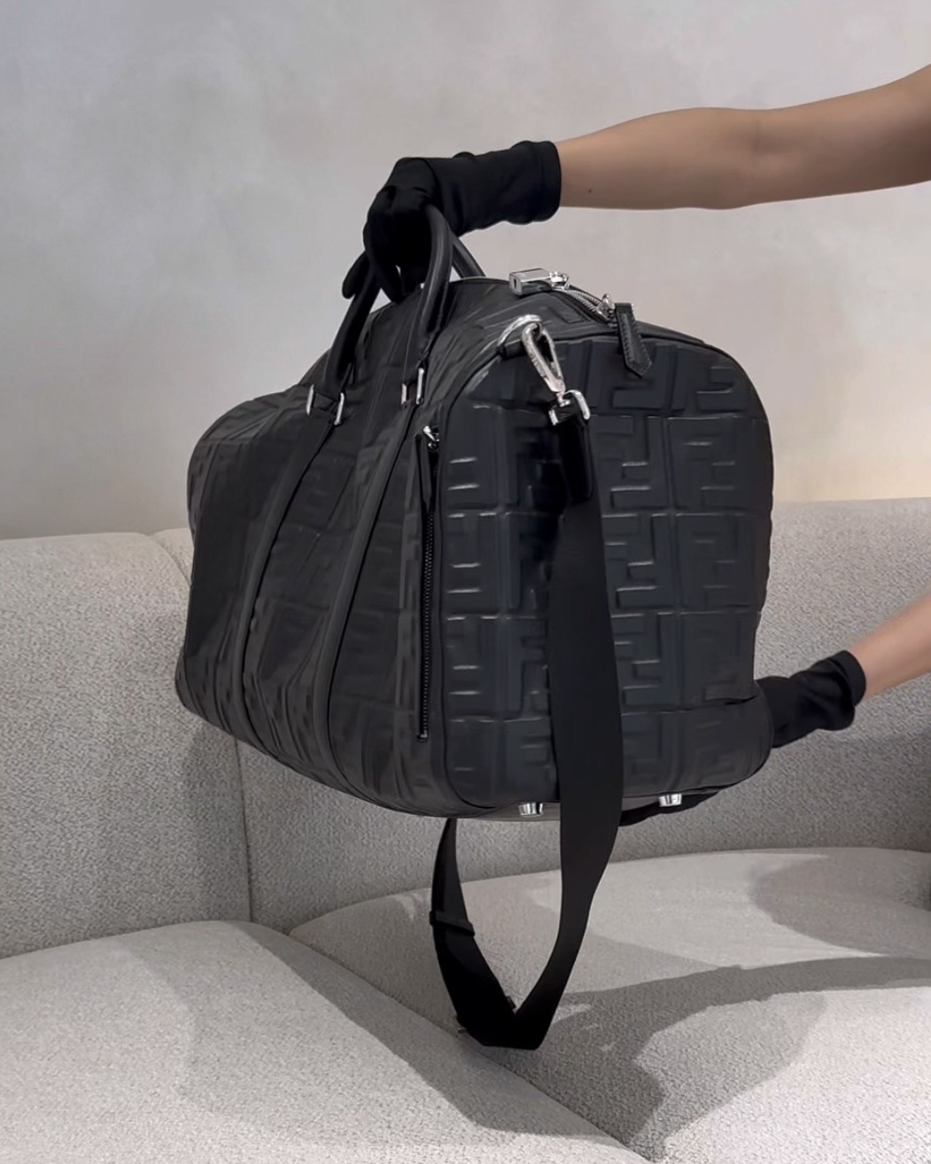 【FENDI】FF 浮雕旅行袋 黑色