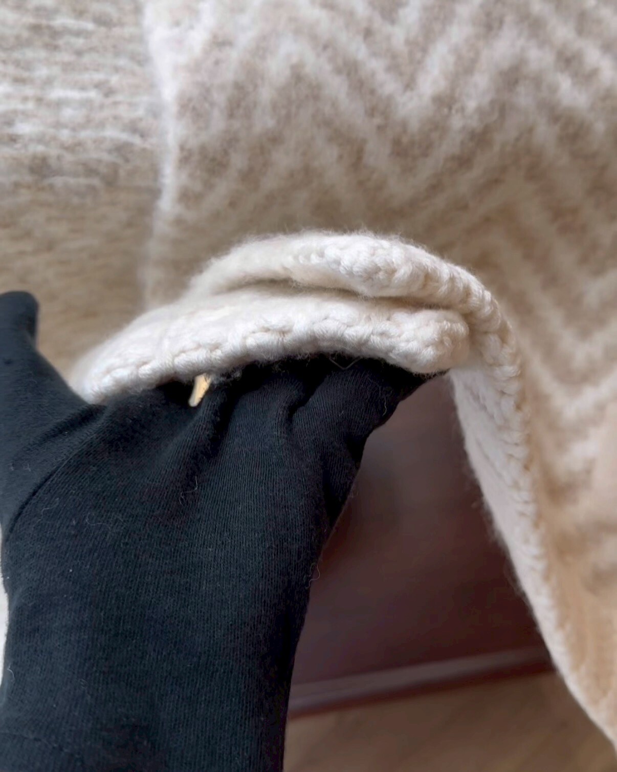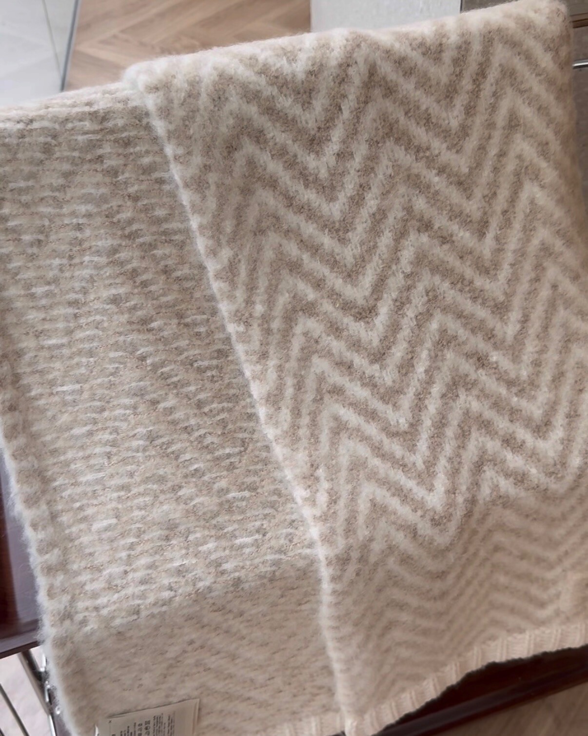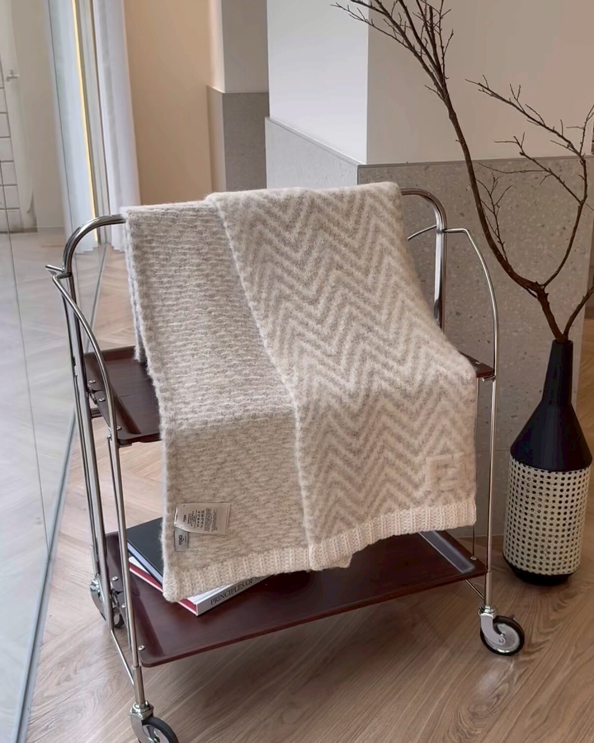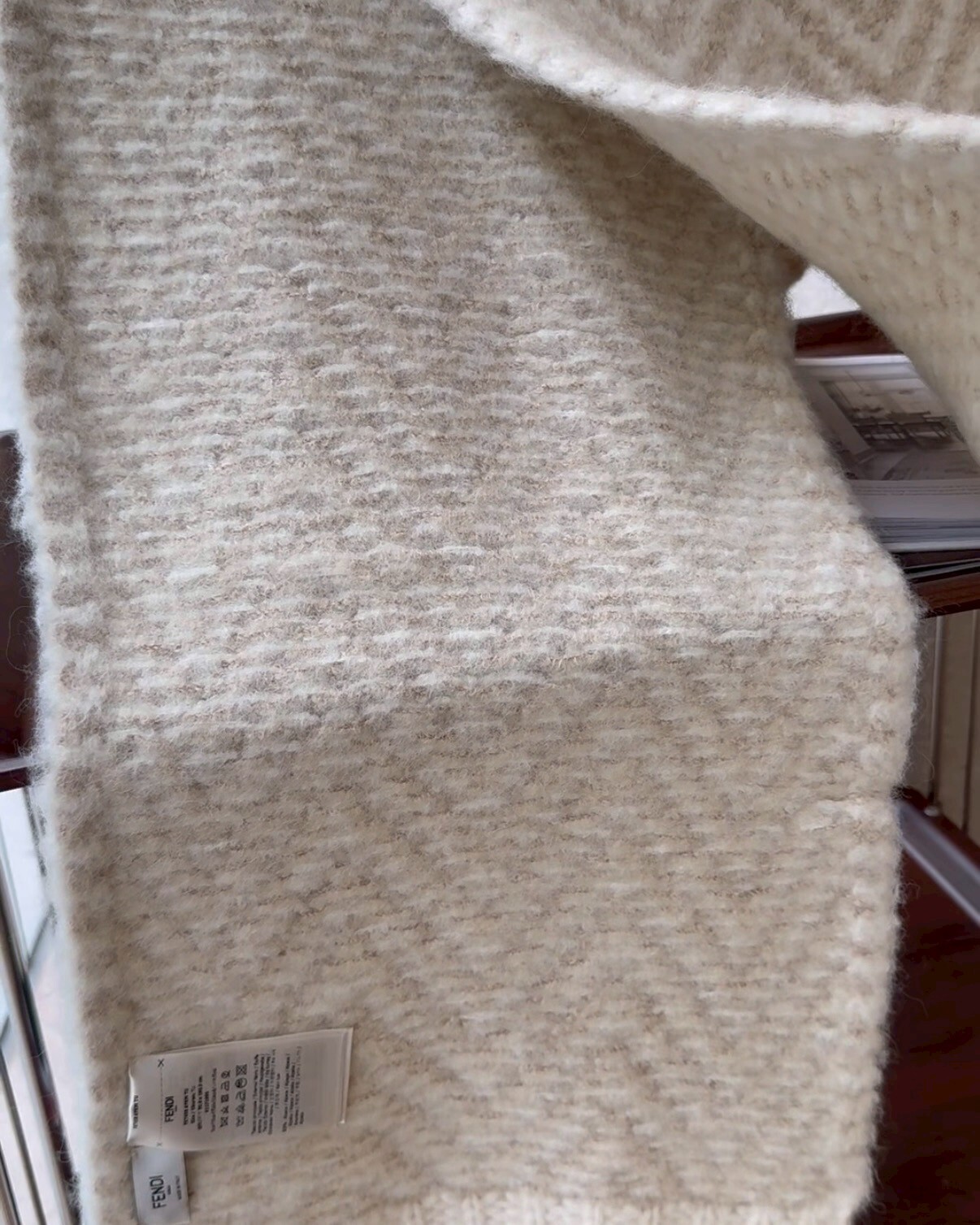 【FENDI】FF 羊駝毛條紋圍巾 米色